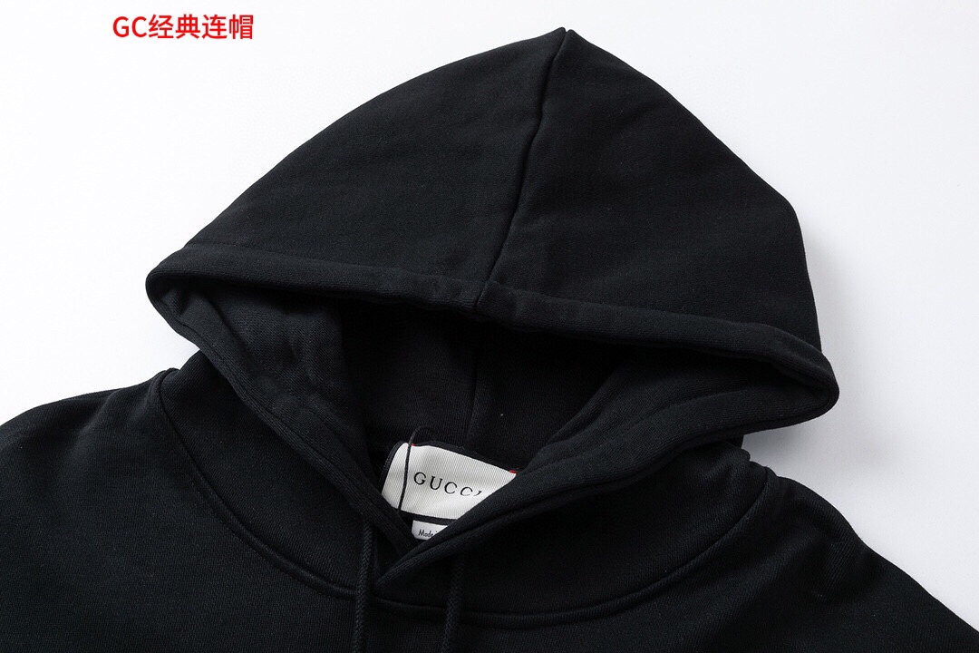 Gucci 男女同款 宽松欧版 350克高品质纯棉连帽大卫衣连帽经典款专柜专属高级订制引入进口机器红绿做旧字母数码直喷工艺 颜色黑 白 码数M 3xl