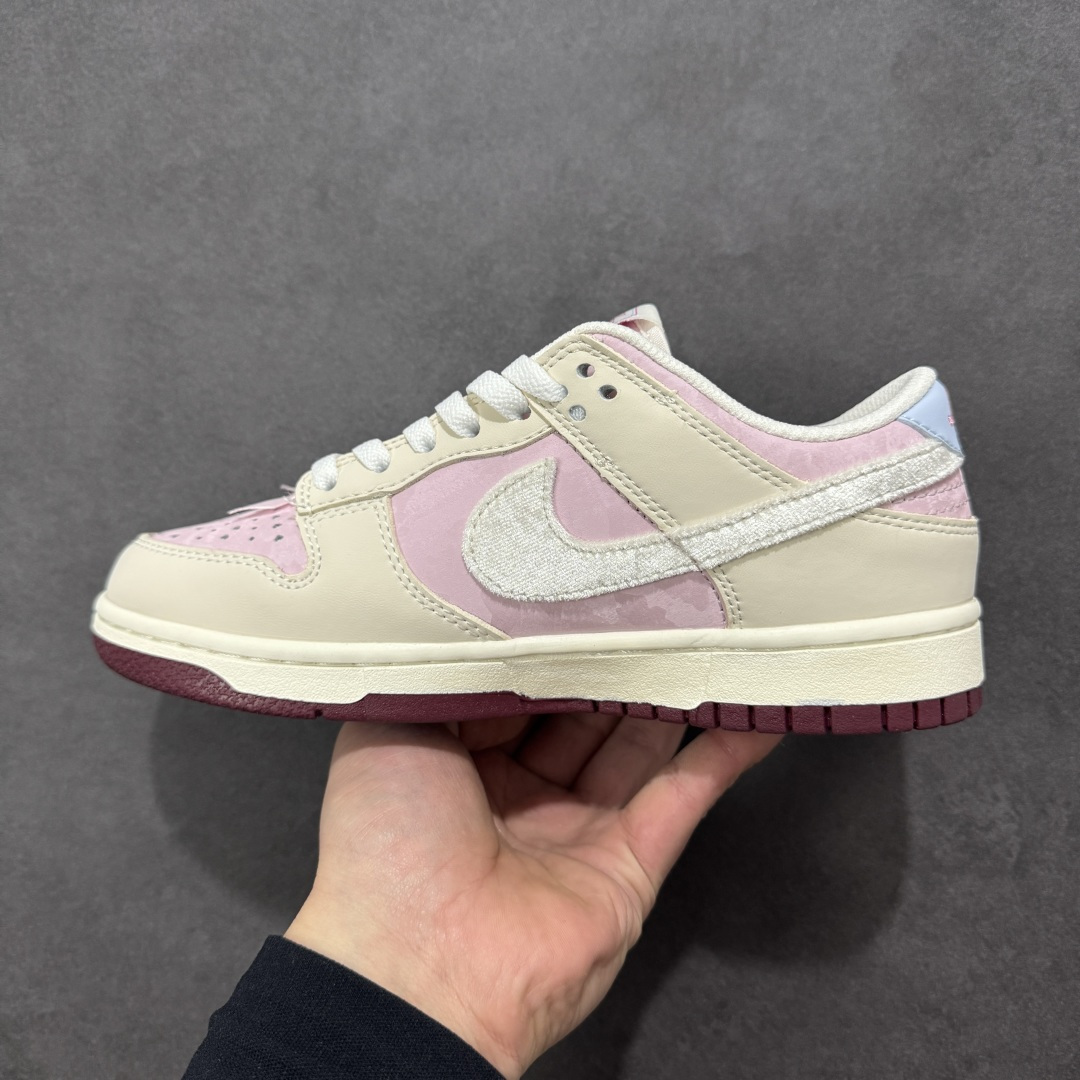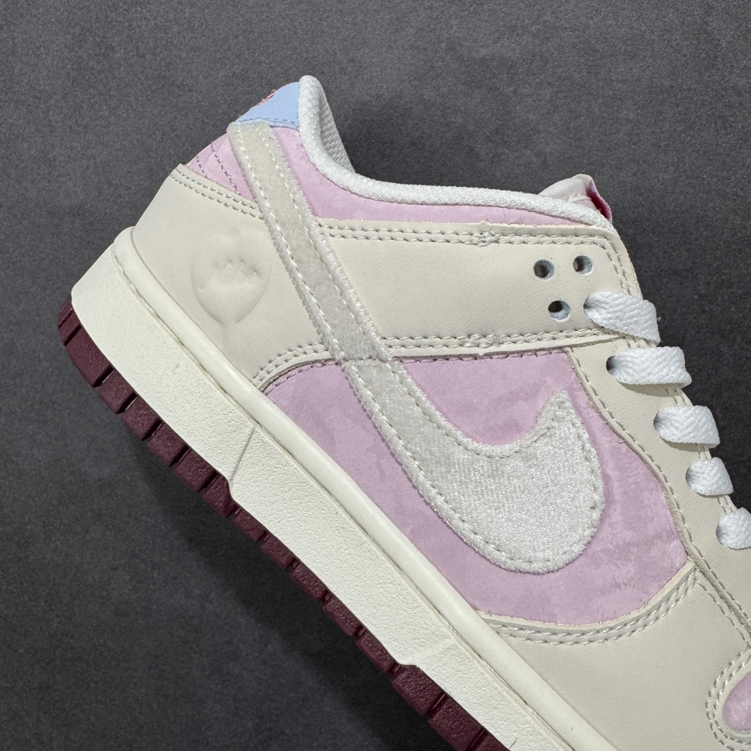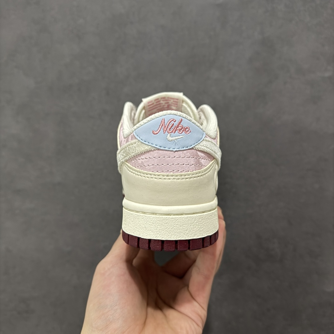 定制版 NK SB Dunk Low 情人节限定发售 奶白 柔雾粉的渐变配色像裹了层春日薄纱 鞋身拼接细腻皮革 丝绒勾边 鞋面是软滑的哑光皮革 Swoosh 用银粉丝绒材质 摸上去自带柔焦质感 后跟暗藏浅蓝小细节市场唯一独家头层皮打造 原鞋原档案开发 原厂皮料 原档冲孔鞋头 正确满胶鞋垫 四线拉帮 原厂织唛标 鞋舌高弹海绵填充