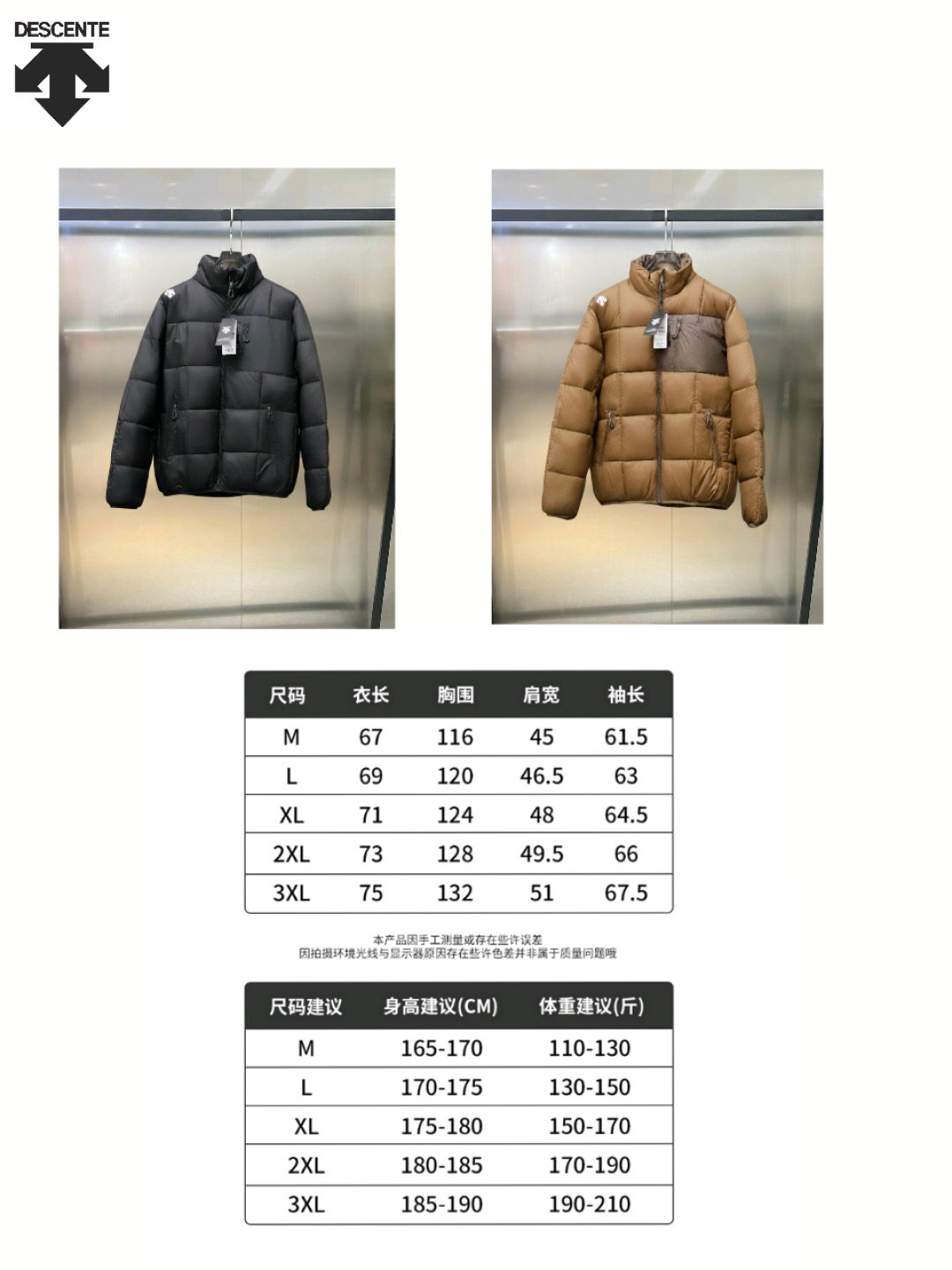 代发 高品质 迪桑特DESCENTE 2025户外运动立领短款羽绒棉服外套 冬季情侣款 同步专柜尺码 采用顶级羽绒棉 零下几十度无压力 严寒保护 面料采用高密度聚酯纤维材料 防寒防风防水防雪 做工细节完美 品质保证 颜色 黑色 咖啡色 尺码 M 3XL