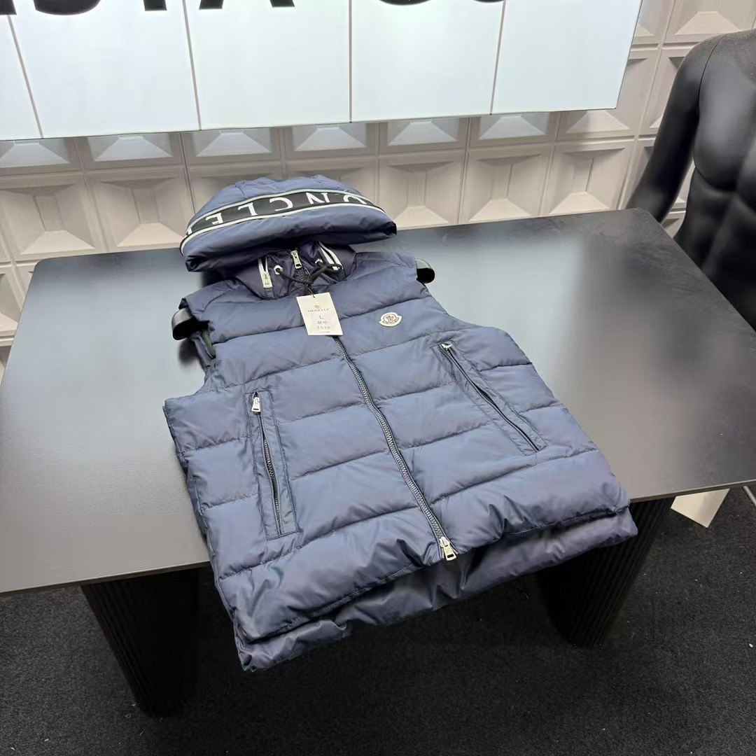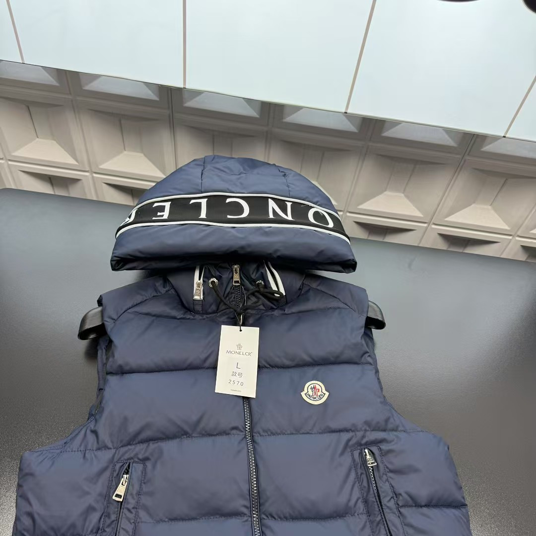 秋冬爆款热销款推荐蒙口羽绒连帽马甲 胸前贴布刺绣Logo 帽子字母图案 三标齐全官网一致 放大看细节原相机实物拍摄 颜色 藏青色 尺码 L 4xl L 80 105斤 XL 105 120斤 2XL 120 140斤 3XL 140 160斤 4XL 160 180斤