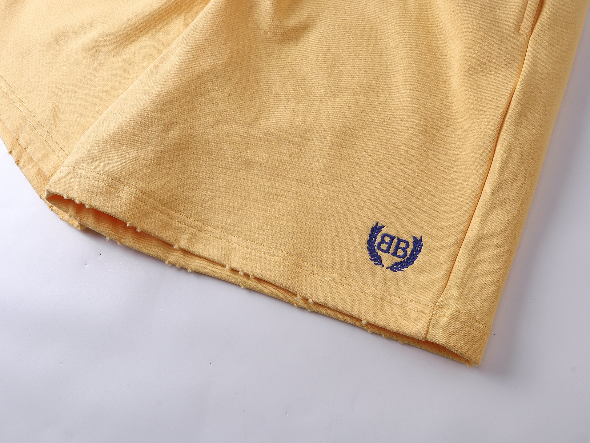 实拍图 顶级版本 官网品质 BALENCI GA 巴黎 2025新款 前面麦穗LOGO刺绣洗水做旧磨烂短裤 砖柜同步 第一时间正品研制 欢印对比 面料采用巴黎ZP定织定染全棉毛圈大卫衣 克重460克 布面干净 布纹清晰 手感柔软舒适 绣花釆用进口田岛绣花机刺绣 字母清晰 效果立体 版型釆用宽松版型 男女同款