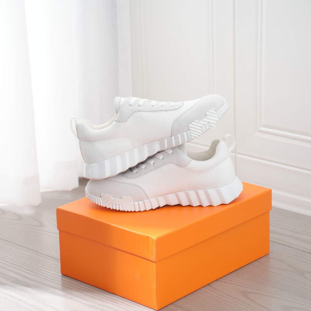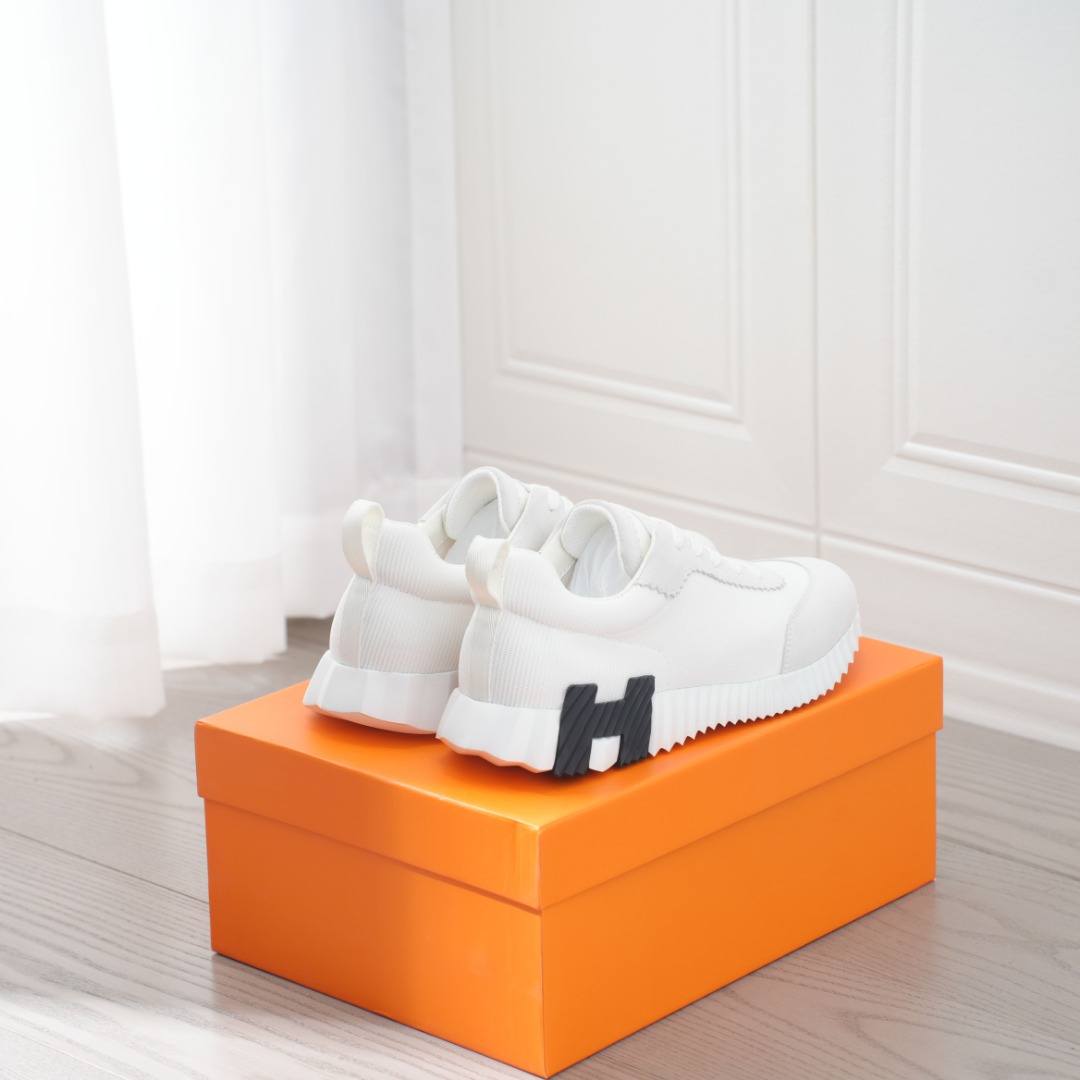 HERMES爱马仕 Bouncing 皮革 时尚圆头系带 低帮 生活休闲鞋 情侣款