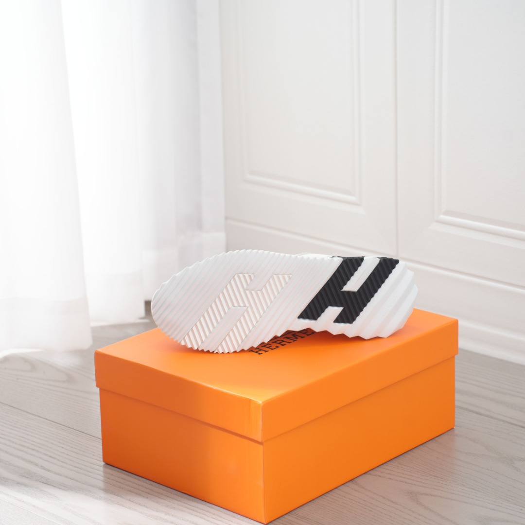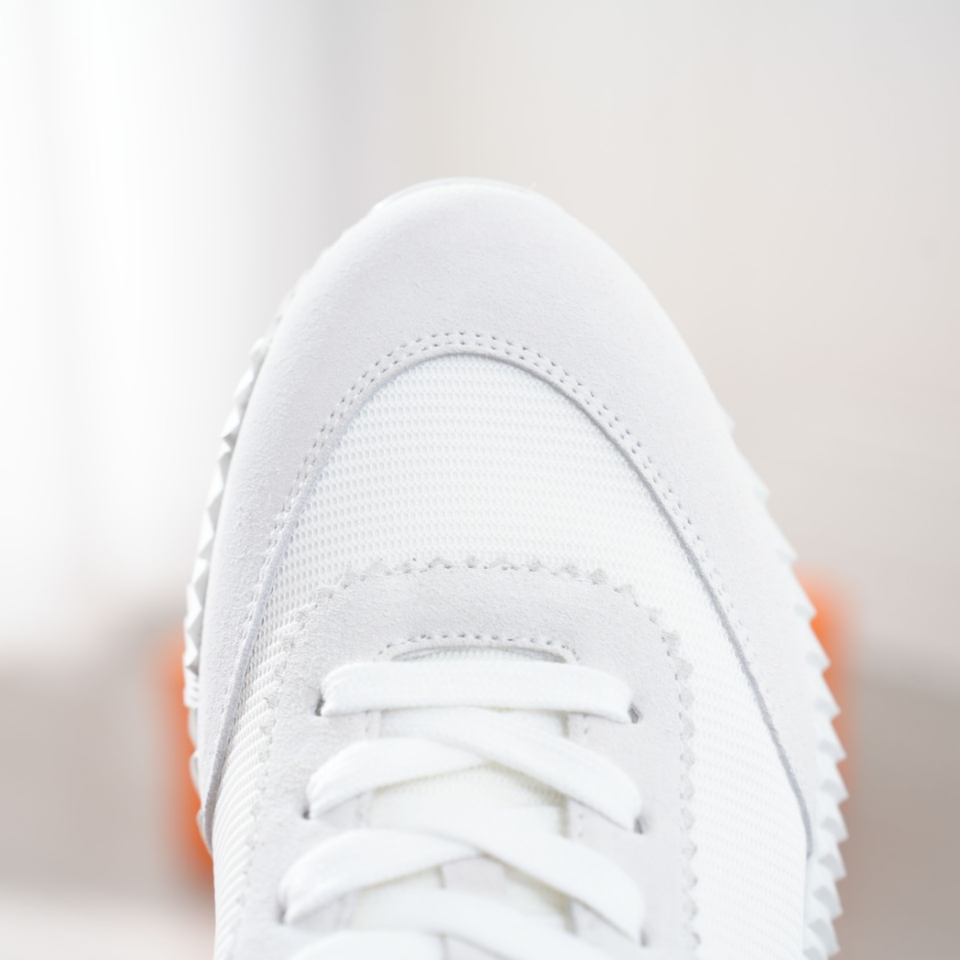 结合高科技帆布与麂皮山羊皮 在橡胶鞋底上饰以夸张 H 字母 斜体设计和鲜艳色彩展现活力 延续品牌设计灵感 轻盈漫步都市 感受无拘舒适