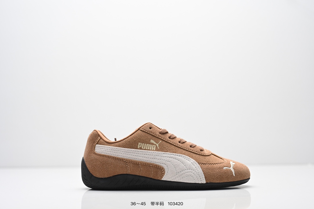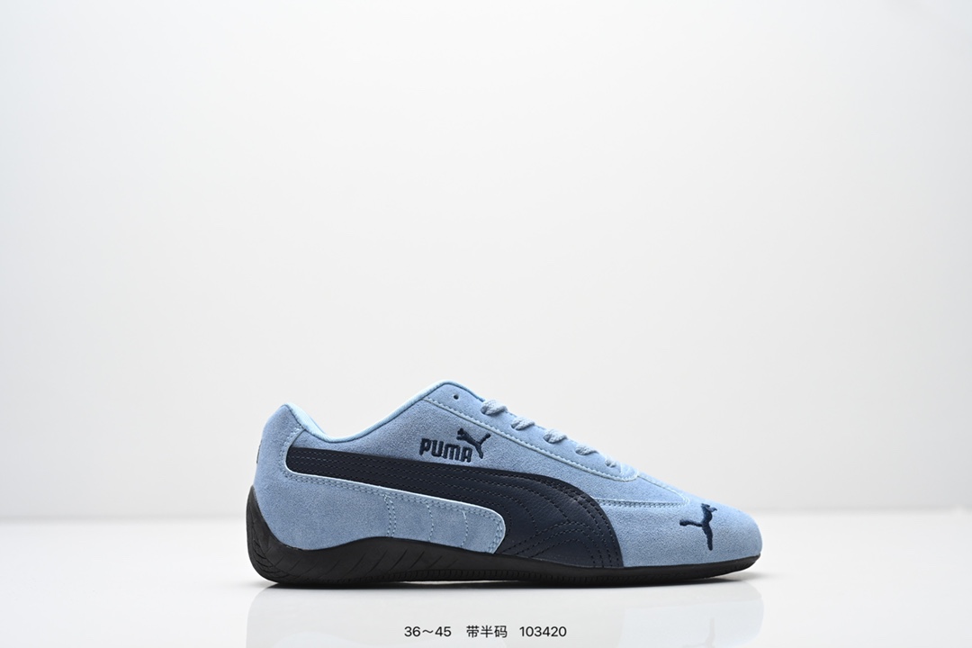 PUMA Speedcat OG 彪马 低帮 粉白色 女款防滑耐磨低邦训练鞋生活休闲鞋赛车鞋 鞋型是Puma联合赛车运动品牌Sparcoh专为专业赛车手而打造 流线型的粉色翻毛皮鞋面低调却不失质感台 侧面米白色Logo加上白色的烫印Puma字样以及鞋舌白色Puma字样及Logo 让蓝色的鞋子显得不那么单调 鞋头彪马Logo以蓝色刺绣呈现 鞋底平坦 采用轮胎纹路设计 防滑耐磨