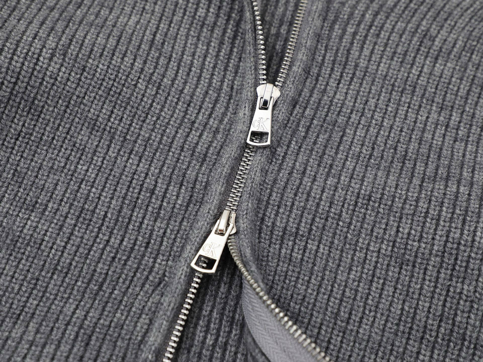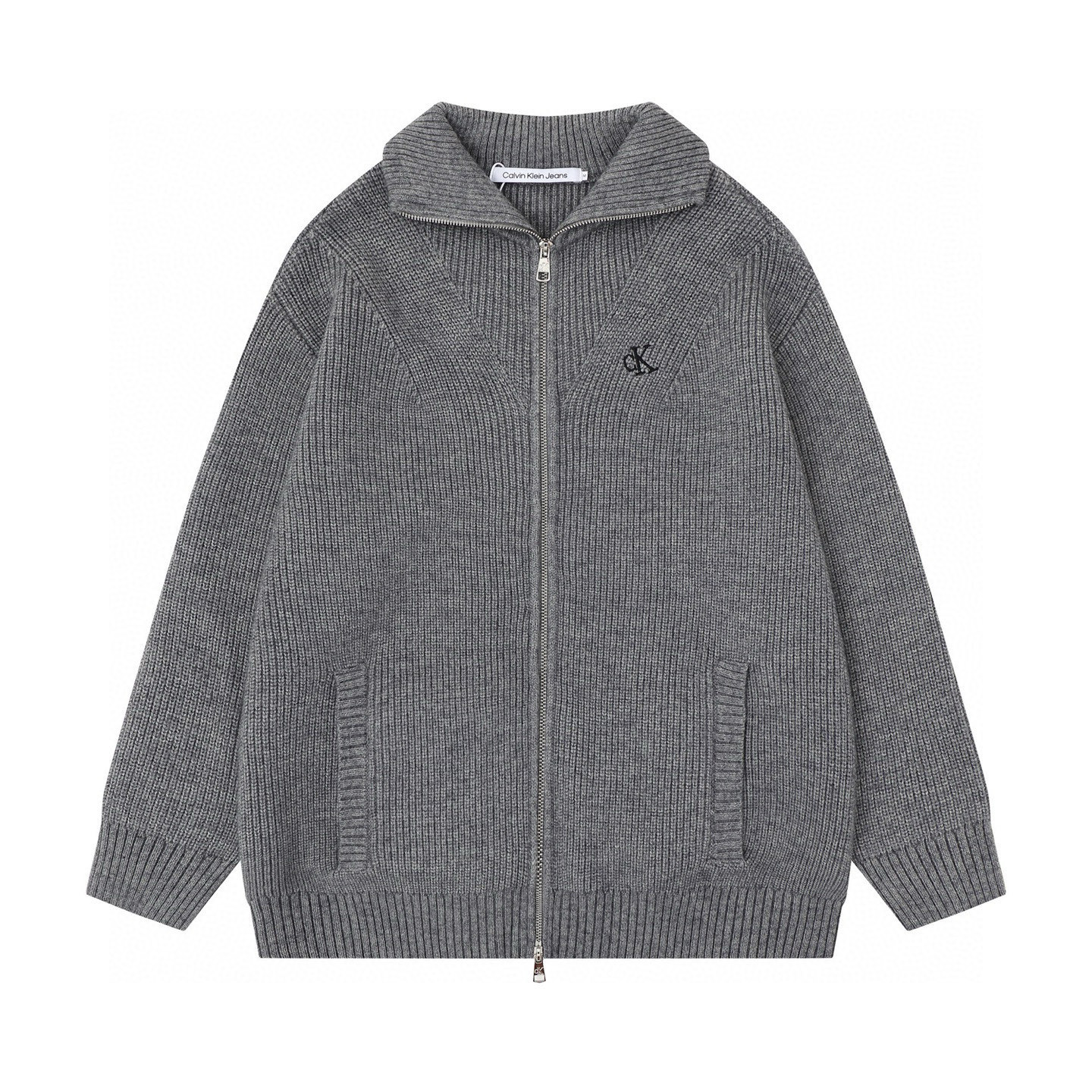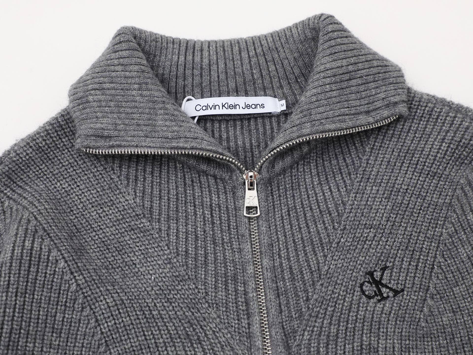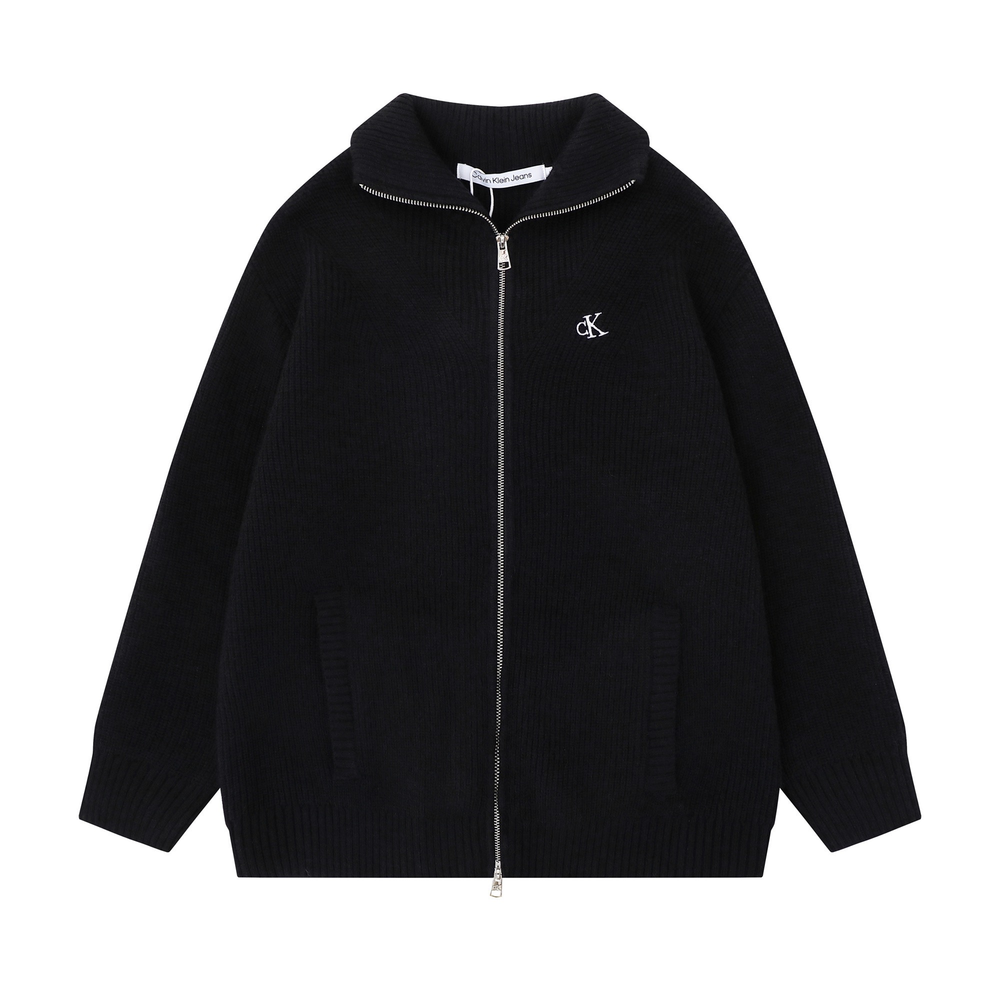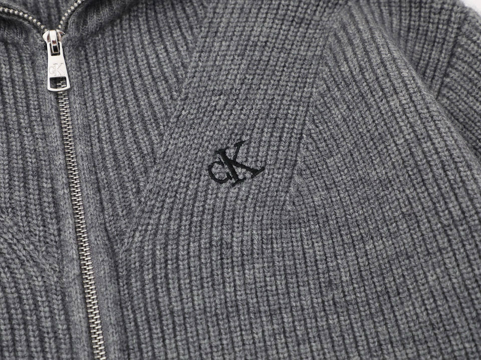 Calvin Klein CK 经典小字母刺绣情侣高领双向拉链针织毛衣外套 原版代购品质