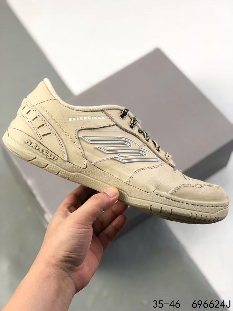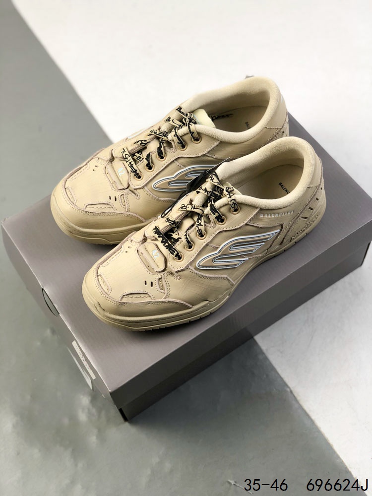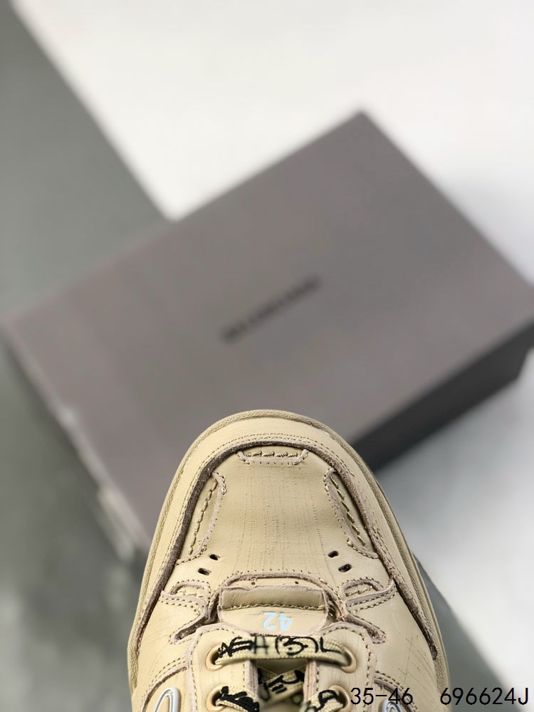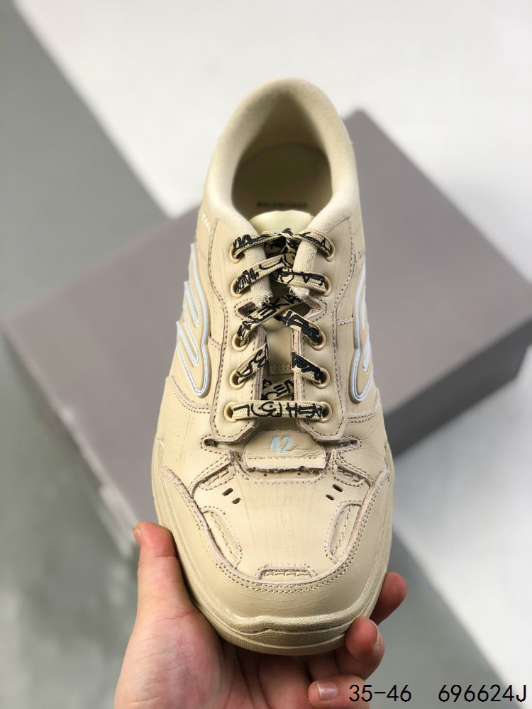 公司级 Balenciaga巴黎世家 Hamptons Worn Out 牛皮革 标识压纹 做旧效果 圆头系带 低帮 生活休闲鞋