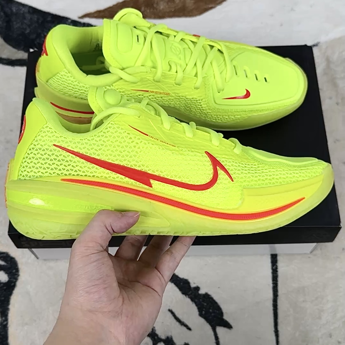 Nike Air Zoom G T Cut 1篮球鞋外观设计时尚且富有运动感 鞋面采用Hyperfuse混合材质 轻量且透气 同时通过TPU丝线编织增强鞋面刚性 既保证了鞋子的美观性 又提升了鞋子的耐用性和支撑性 GT Cut 1采用全掌React鞋垫 全掌切槽Zoom气垫 后掌马蹄形Zoom的 三明治 中底配置 这种配置提供了卓越的缓震性能和回弹效果 React鞋垫提供稳定缓震 Zoom气垫则通过物理切割降低重心 提升贴地感 后掌的马蹄形Zoom进一步强化冲击吸收 鞋面材质柔软舒适 包裹感超强 前掌外侧的双层TPU弯折引导槽既贴合脚部发力点 又避免过度形变导致的支撑不足 同时 鞋楦设计偏向欧洲脚型 前掌略宽 但通过太空棉内衬和动态飞线实现 瘦脚不空 宽脚不挤 的舒适穿着体验 GT Cut 1的缓震配置堪称前无古人后无来者 穿上它 能在任何场地上都能感受到充足的回弹 而且不衰减 无论是突破还是起跳落地 都能得到充分的缓震保护 鞋子整体把控能力非常强 包裹性到位 且随着穿着时间的推移 鞋子逐渐适应脚型 低帮设计搭配动态飞线 使得鞋子在保持包裹性的同时 也具备了出色的灵活性 鞋底的抓地力超强 无论是室内木地板还是室外橡胶场地 都能提供稳定的表现 防侧翻稳定结构有效减少崴脚风险 让球员在激烈对抗中也能保持稳健