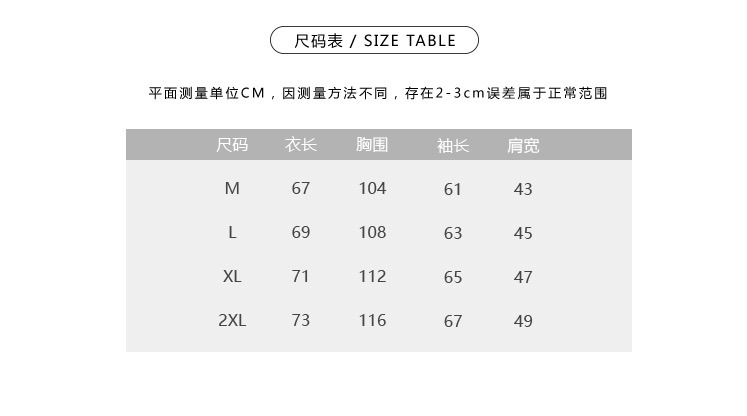 尺码 M L XL XXL