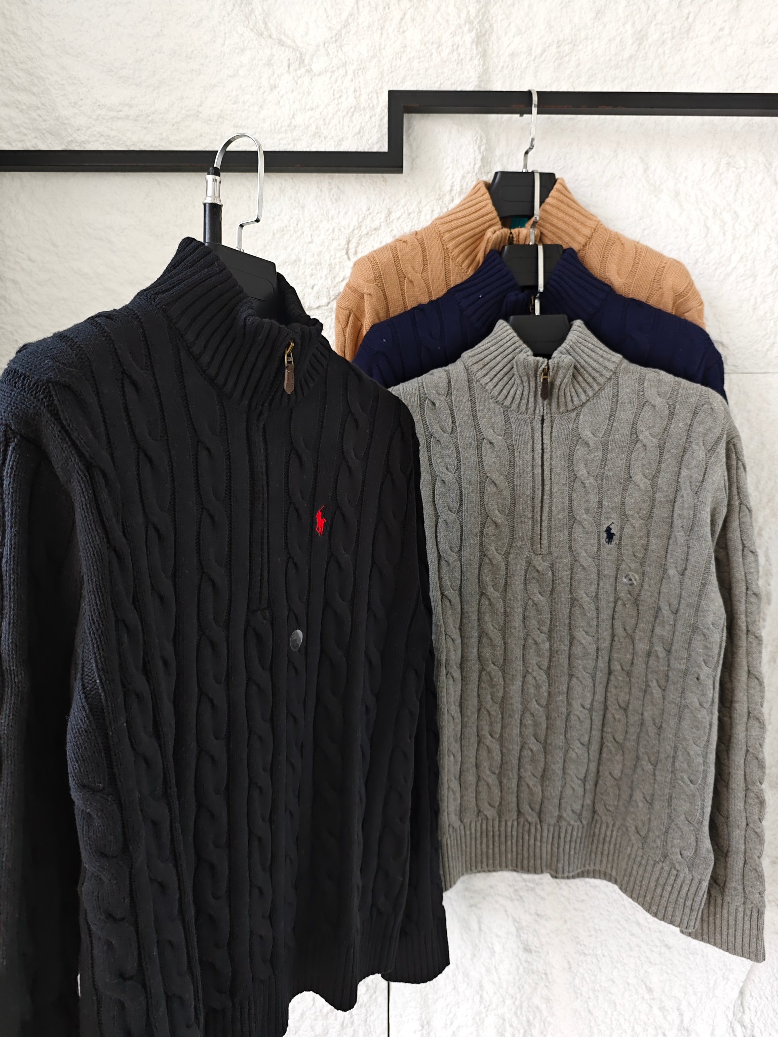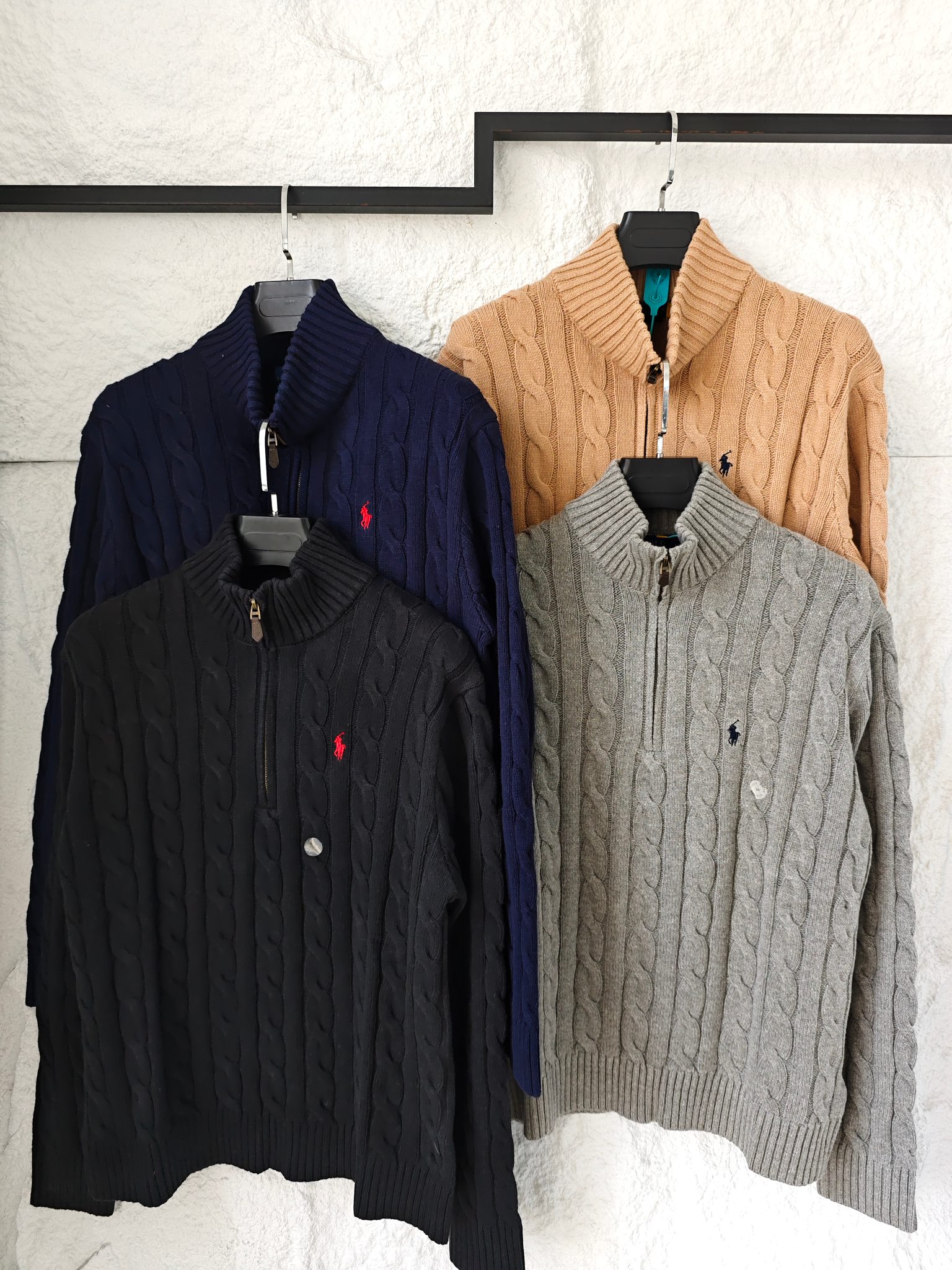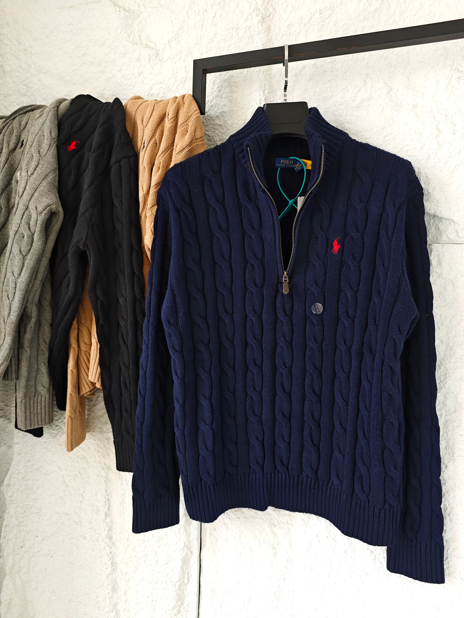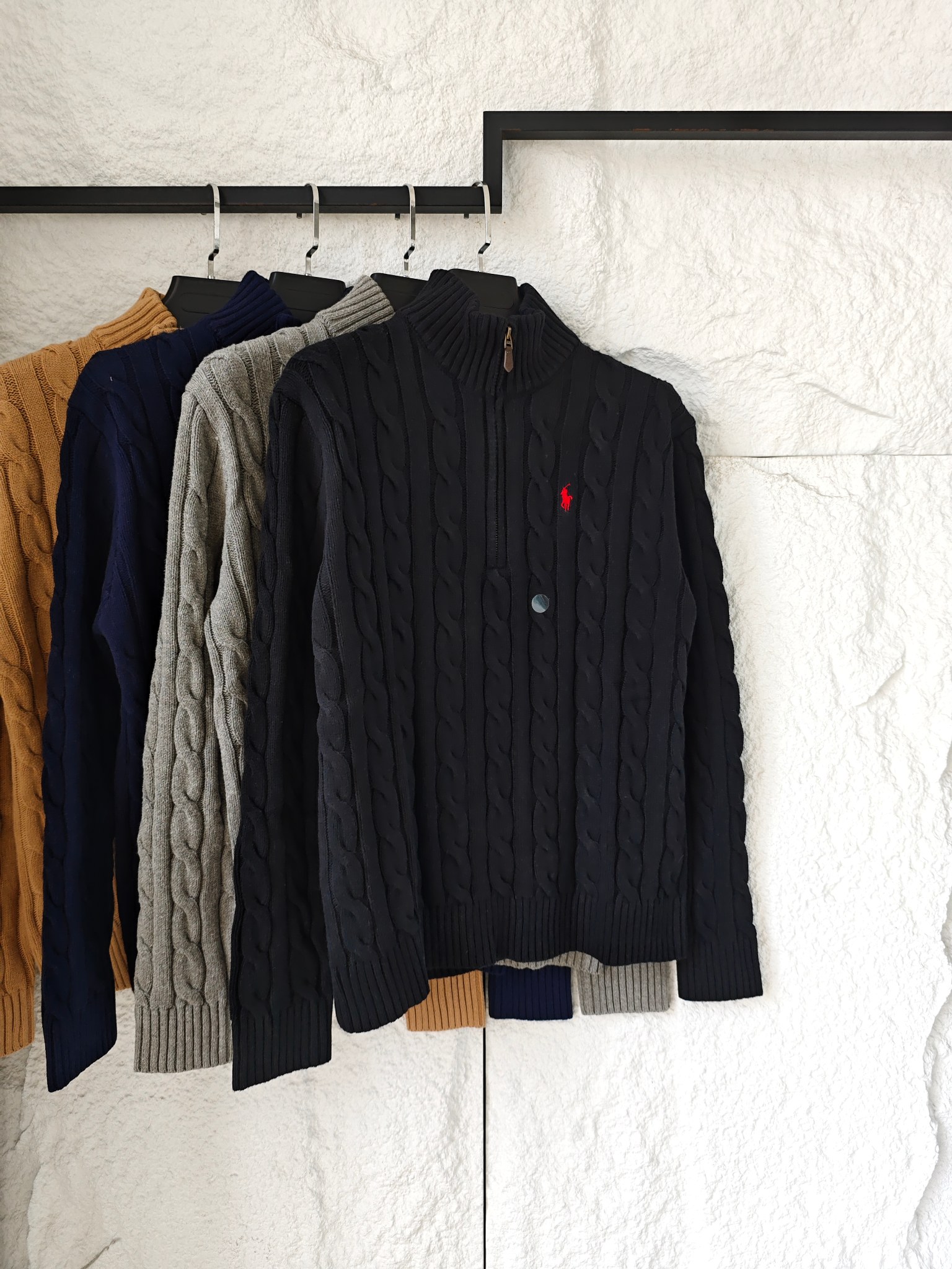 Ralph Lauren 拉夫劳伦小马舒适休闲纯色立领微标刺绣半拉链长袖麻花针织毛衣