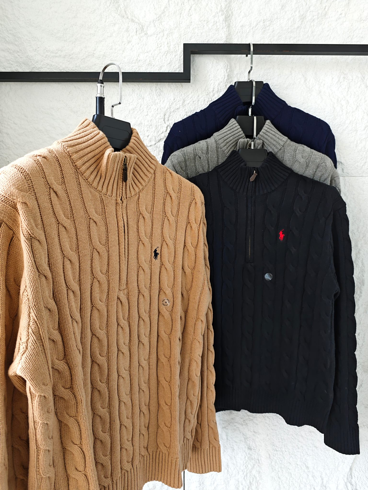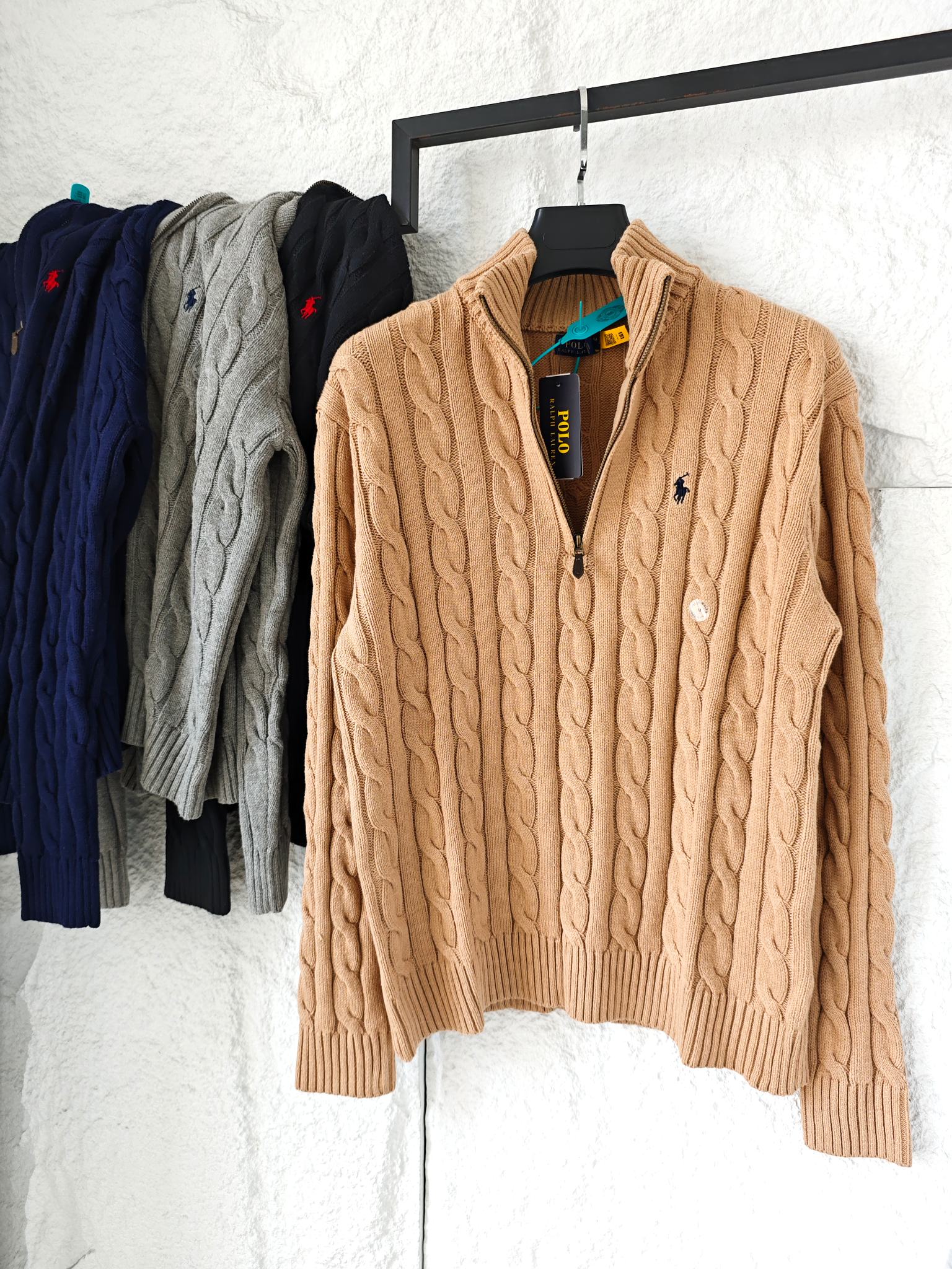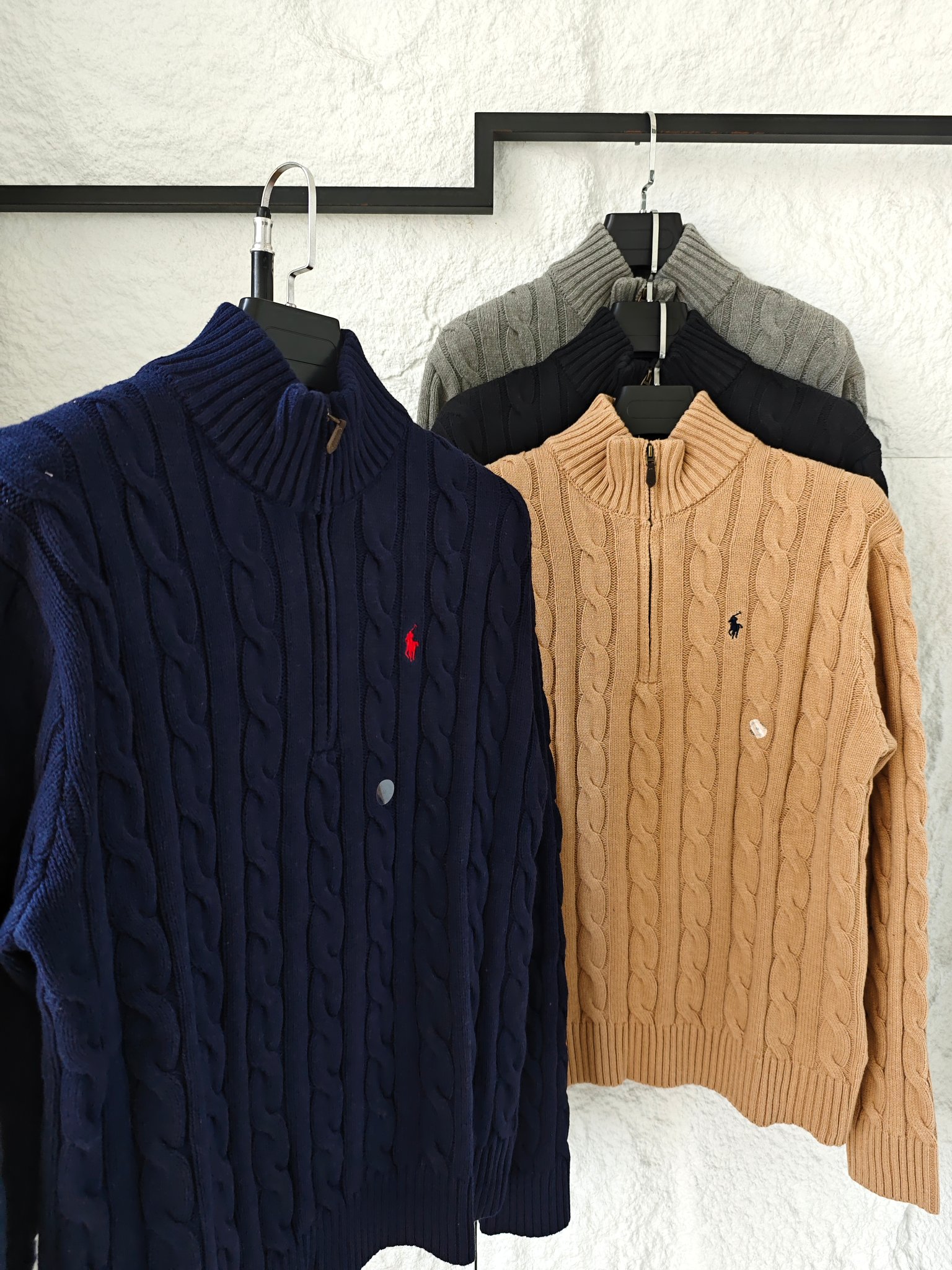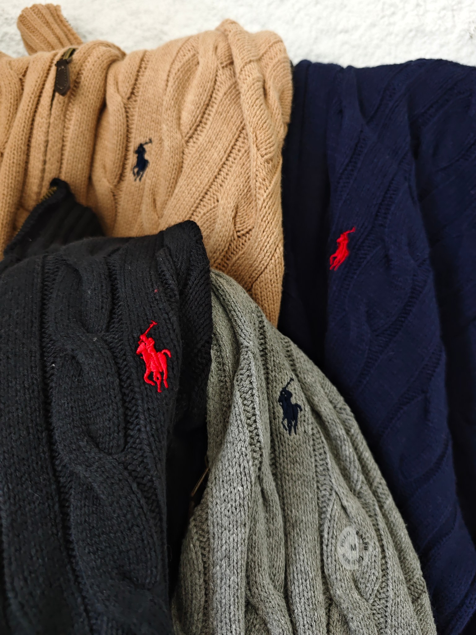 Ralph Lauren 拉夫劳伦小马舒适休闲纯色立领微标刺绣半拉链长袖麻花针织毛衣