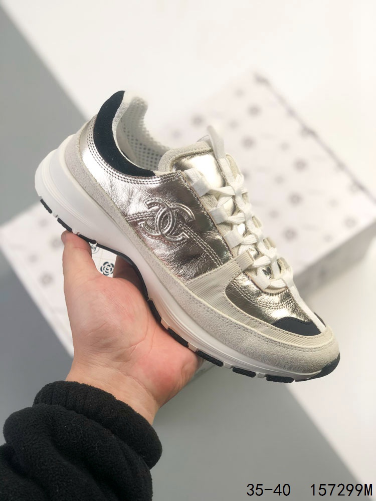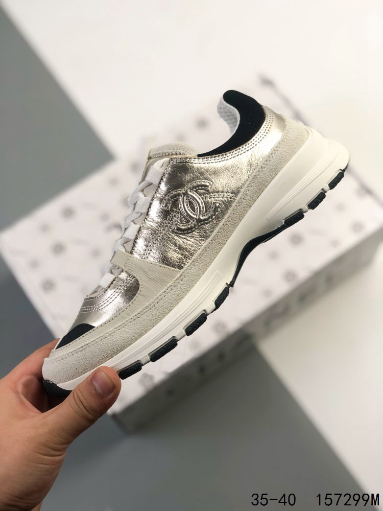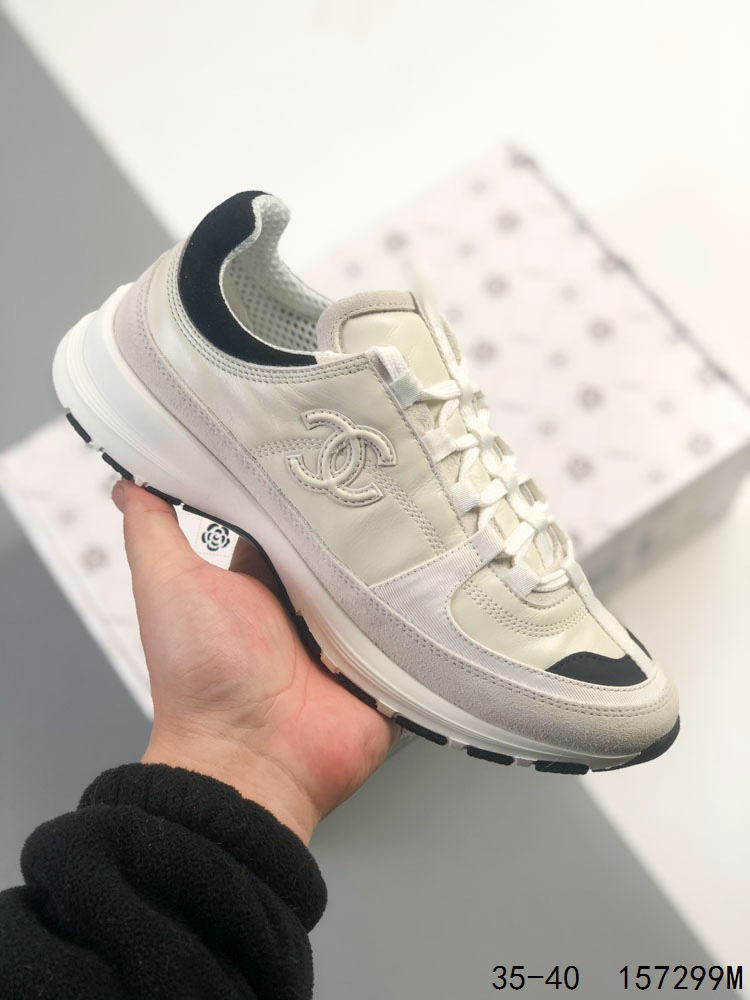 Chanel 香奈儿 25A 低帮休闲鞋 小红书各大平台爆款 官网同步上架 这款经典设计 鞋面多种工艺电绣的风格 大底却时尚运动 混搭非常好看百搭 休闲 时尚 运动 户外都能兼顾 鞋面采用 原版进口高丝光牛反绒 进口混种羊皮 内里采用 原版进口透气网 原版T组合大底 精品全套包装 尺码 35 36 37 38 39 40 ID 157299M