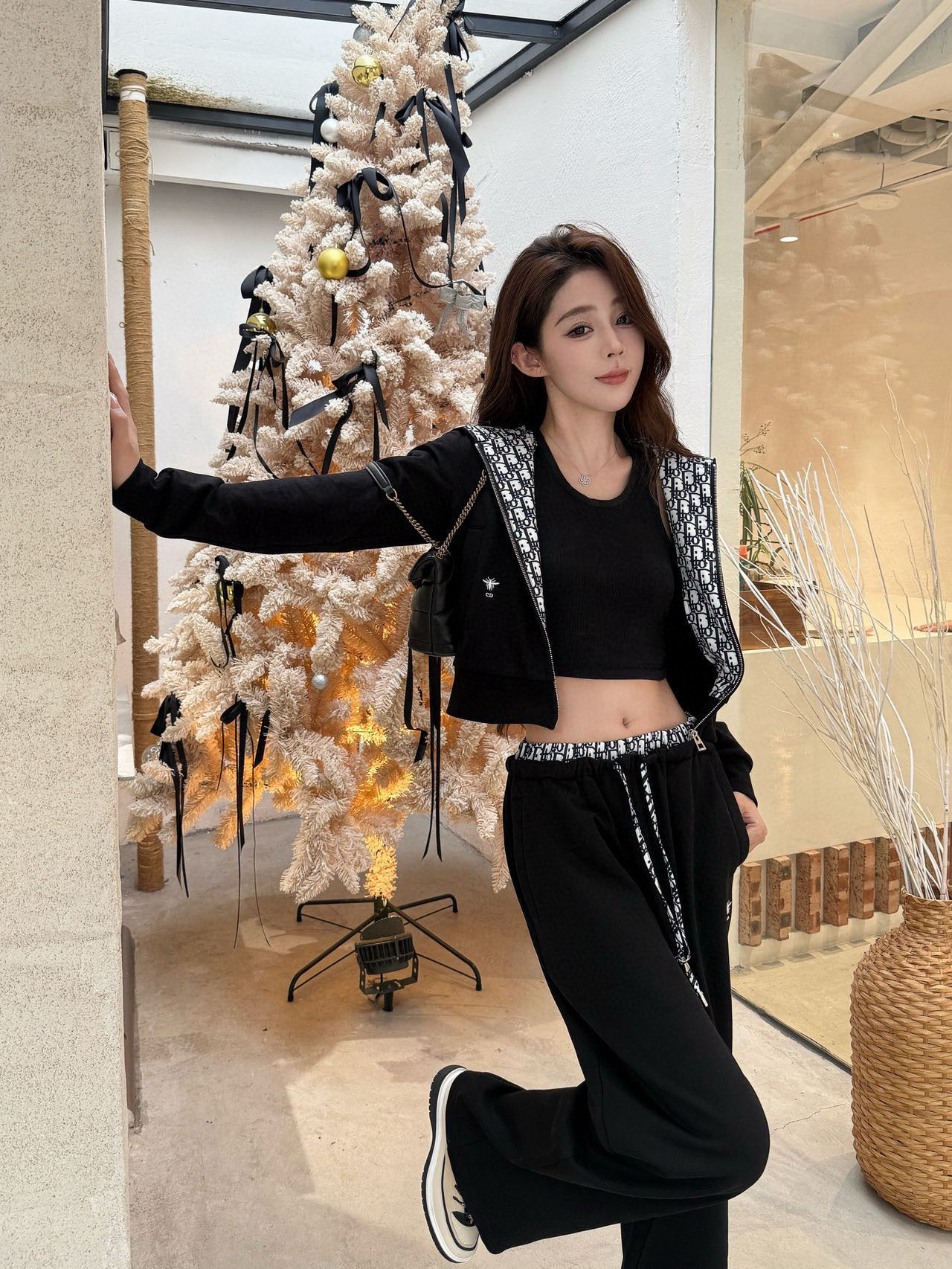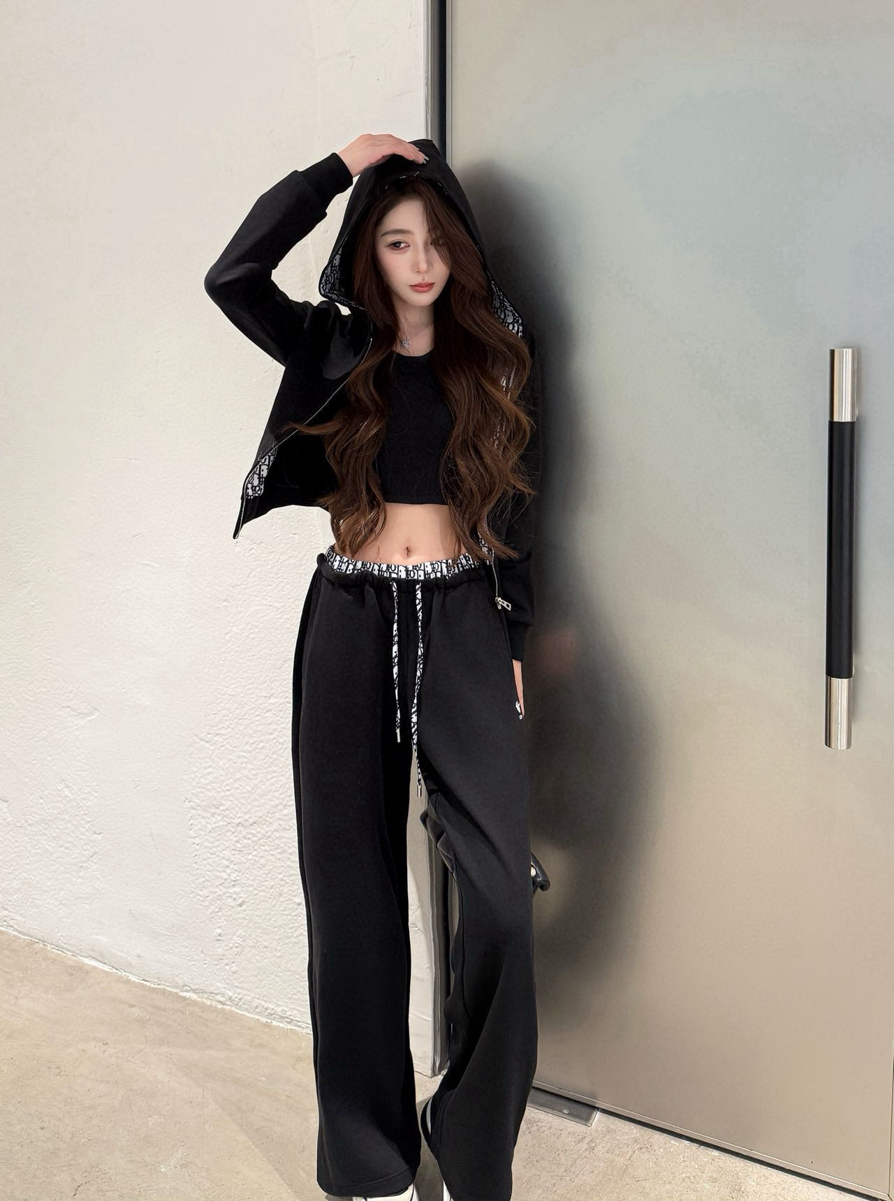 Dior迪奥CD小蜜蜂刺绣老花字母印花拼接拉链连帽外套抽绳松紧腰长裤休闲套装