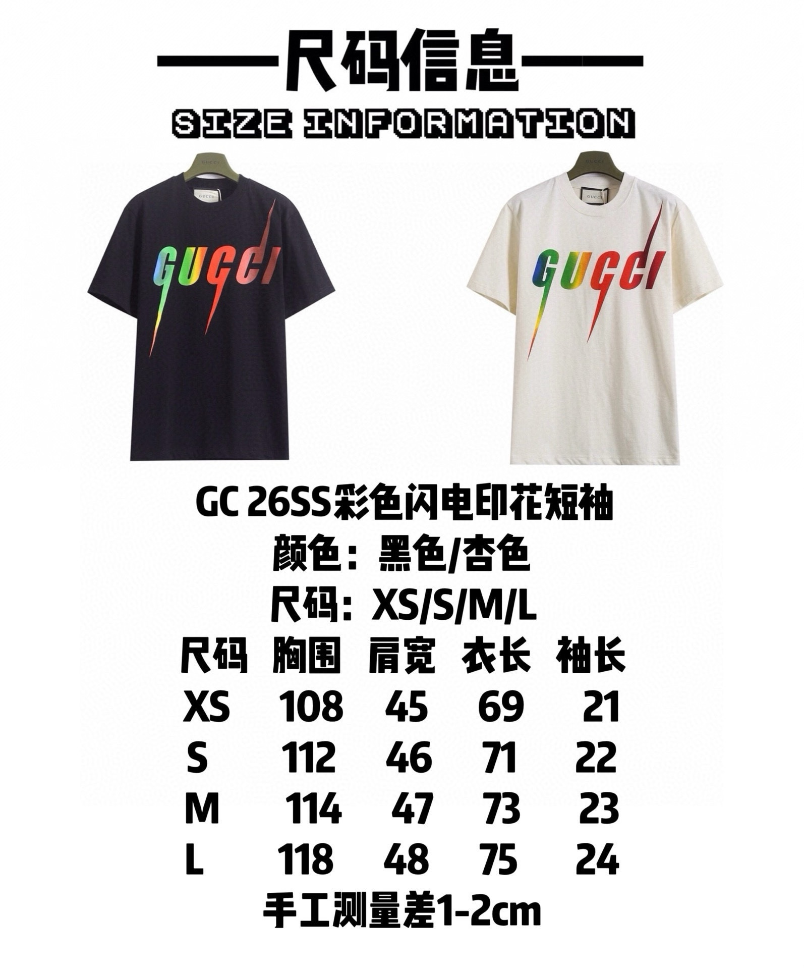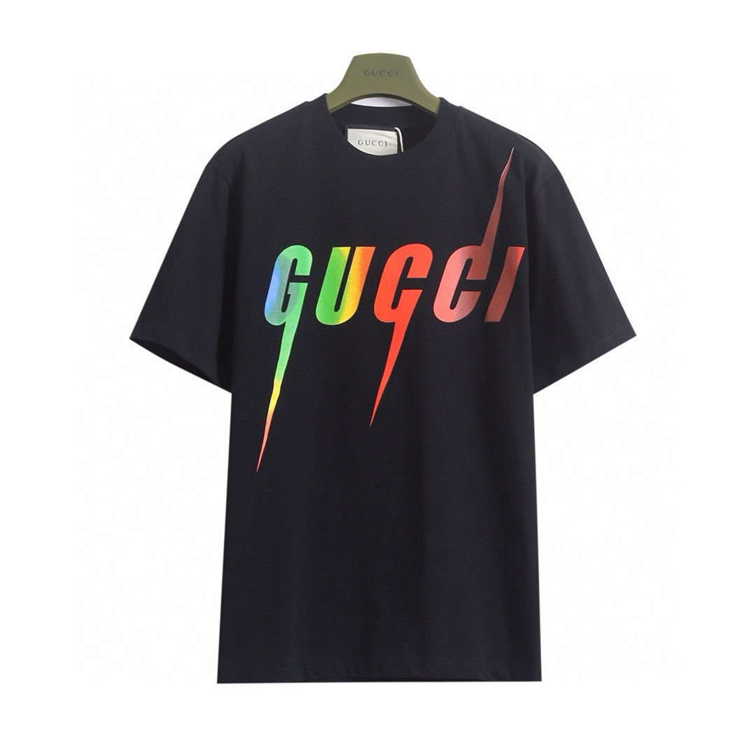 特价 库存 黑XS 6 S 1 古驰 𝙂𝙐𝘾𝘾𝙄 GC 26SS 彩色闪电印花短袖T恤 轻奢主义 男女日常通勤穿搭必备单品 正确版本 欢迎对比 详细特征 230克100 纯棉双纱汗布面料 同缸定染特种加粗32支双股1 1罗纹 手工丝网环保水浆印花 双针车线跨缝工艺 纯手工红线缝制主唛 原版主唛水洗吊牌防潮纸包装 颜色 黑色 尺码 XS S M L