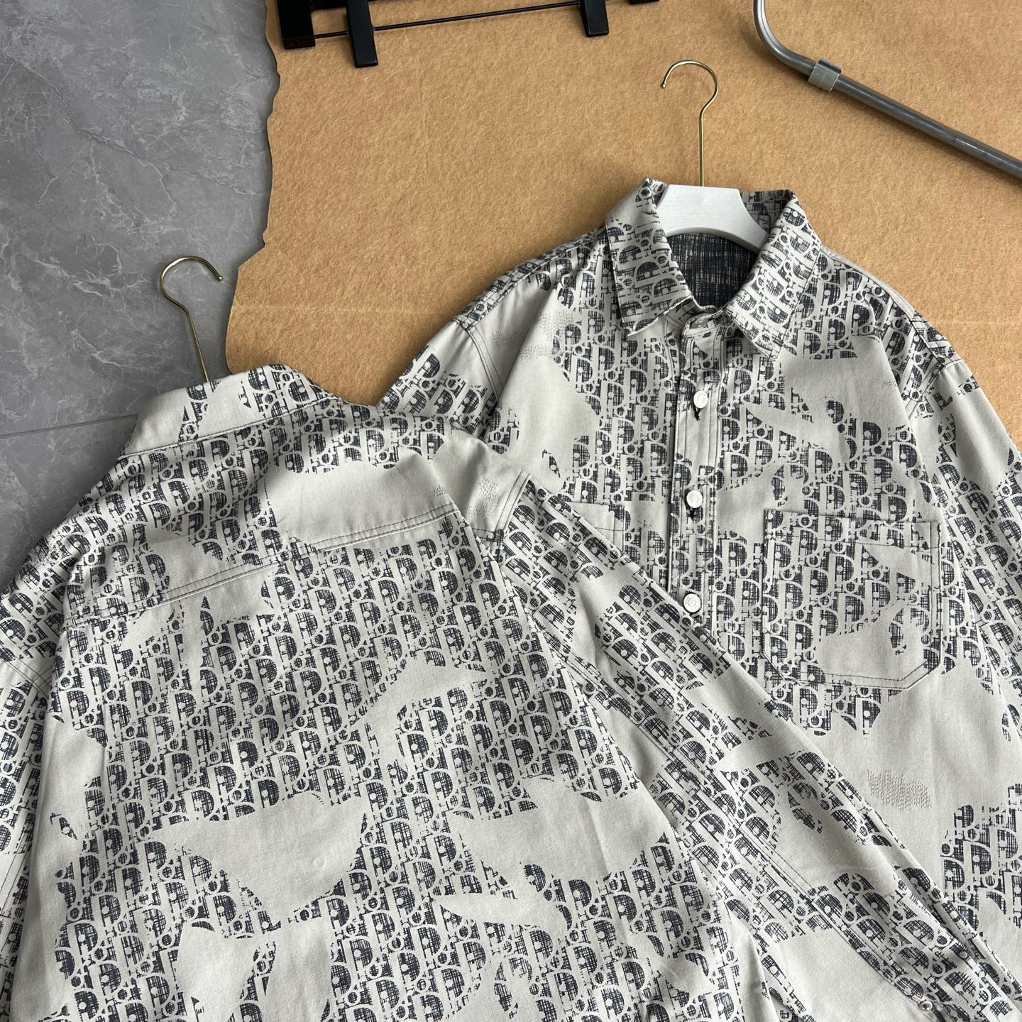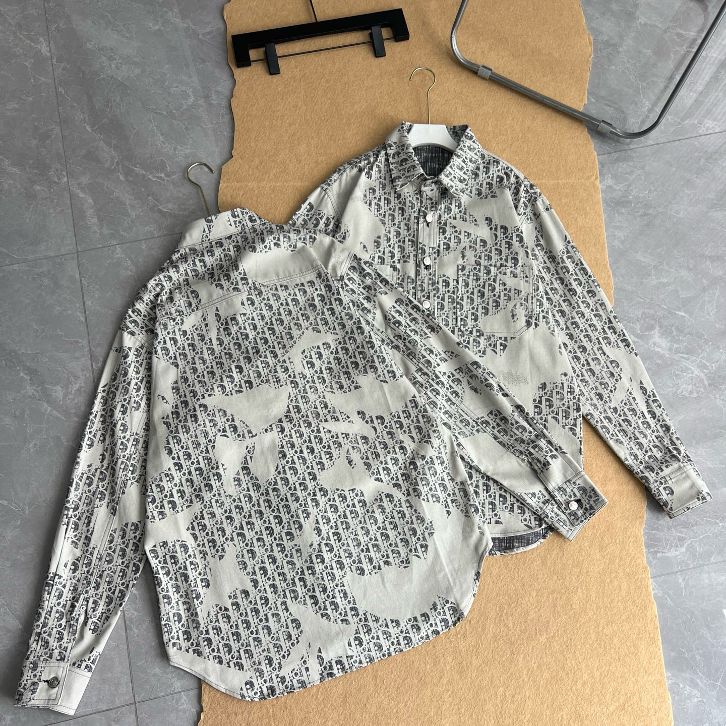 D家本季最火的时尚单品 满印logo的设计超级爱 老花衬衫真的太上头了 灰白灰白的浅色系给人清爽的感觉 爆新款的老花衬衫是以做旧水洗漂白褪色为设计超级重工 外边表面不规则拉丝刺绣工艺精湛 比老款会更复古休闲 宽松版型 男女同款 年度最好穿百搭款 单穿叠穿做内搭或者外套都很高级 随意来条卫裤牛仔裤都是时髦范儿 大大的一件搭靴子宽松慵懒舒适 穿衬衫拍照更是绝绝子 赶紧种草