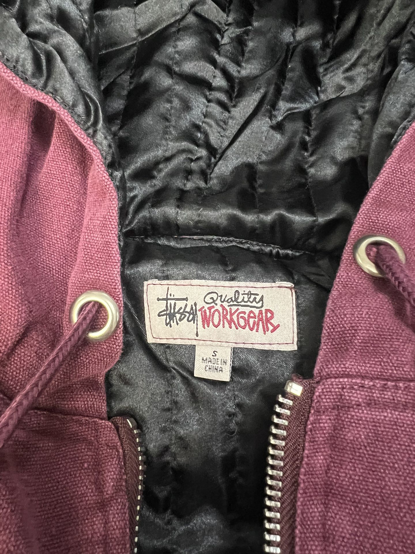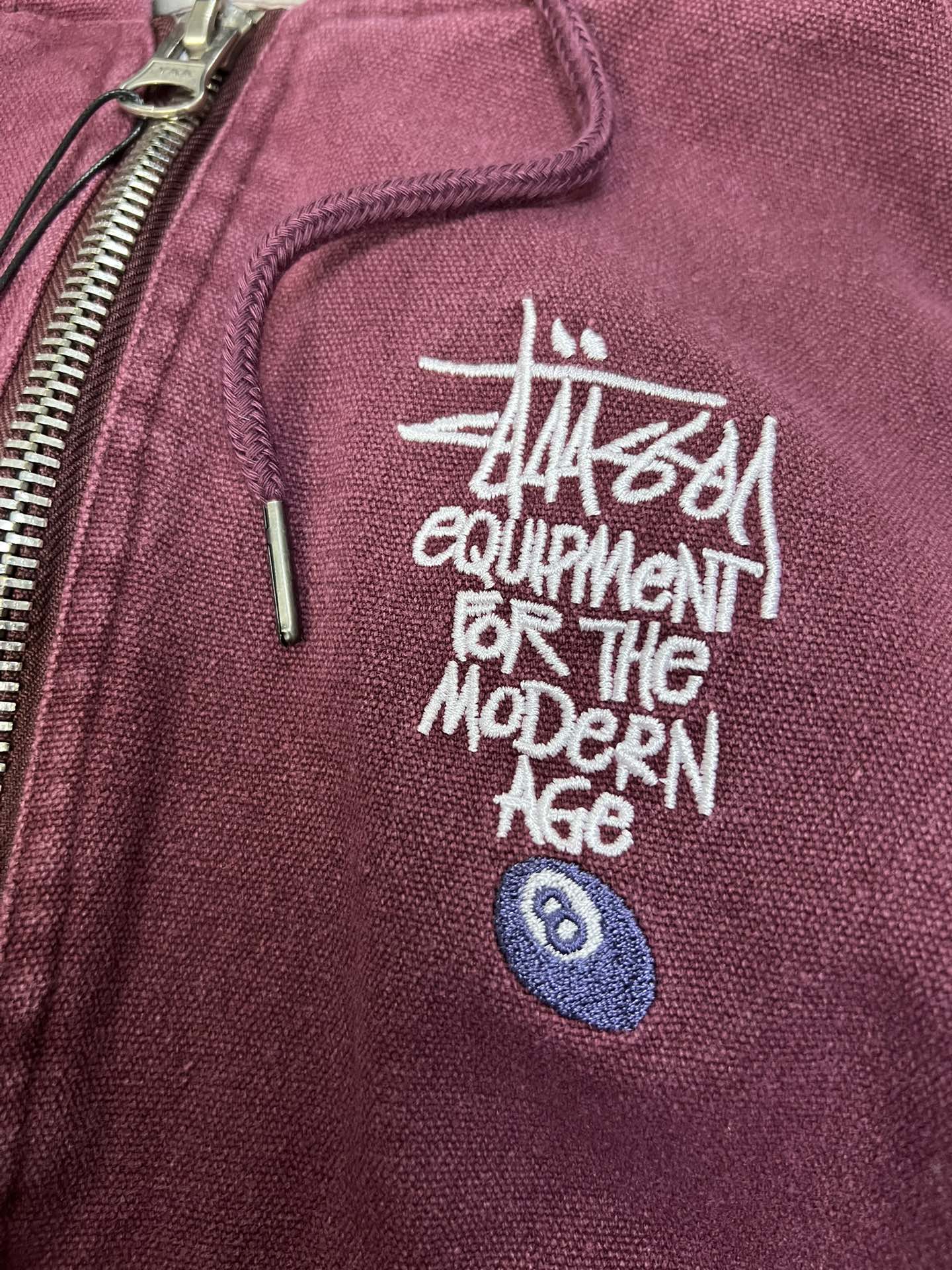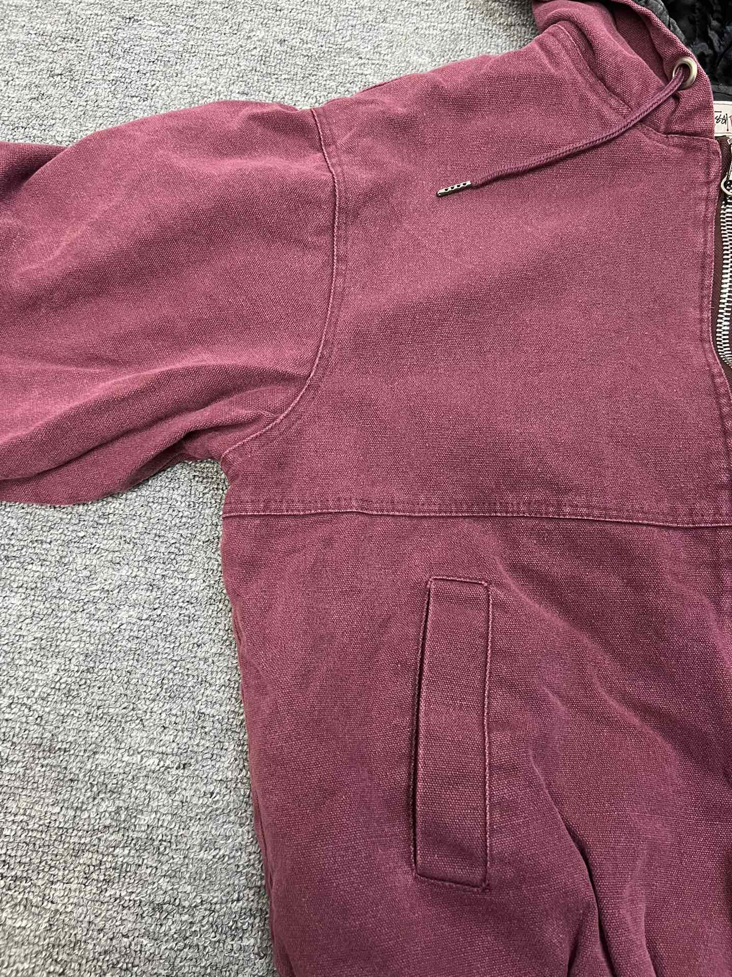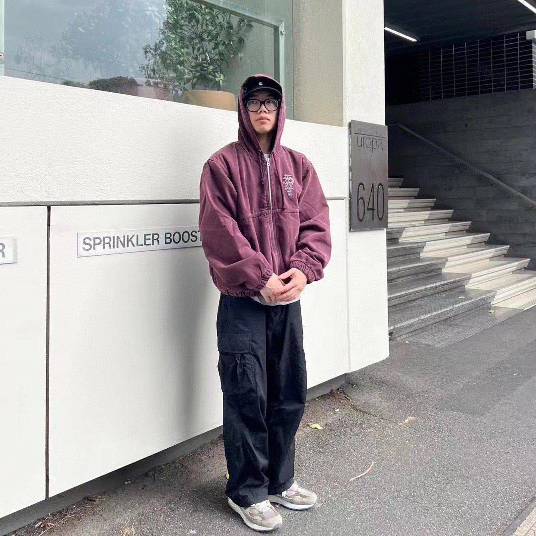 斯图西 Logo刺绣美式复古短宽 棉服外套 款号 057 批发价 170 颜色 深紫色 码数 S M L XL 衣长 63 65 67 69 胸围 120 124 128 132 肩宽 53 54 55 56 袖长 60 61 62 63