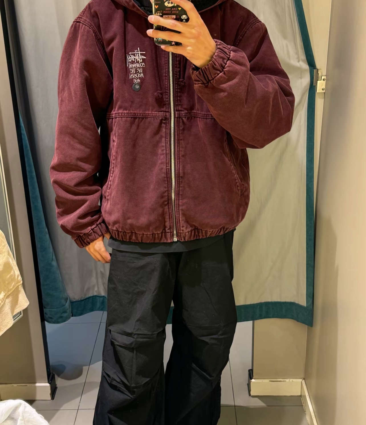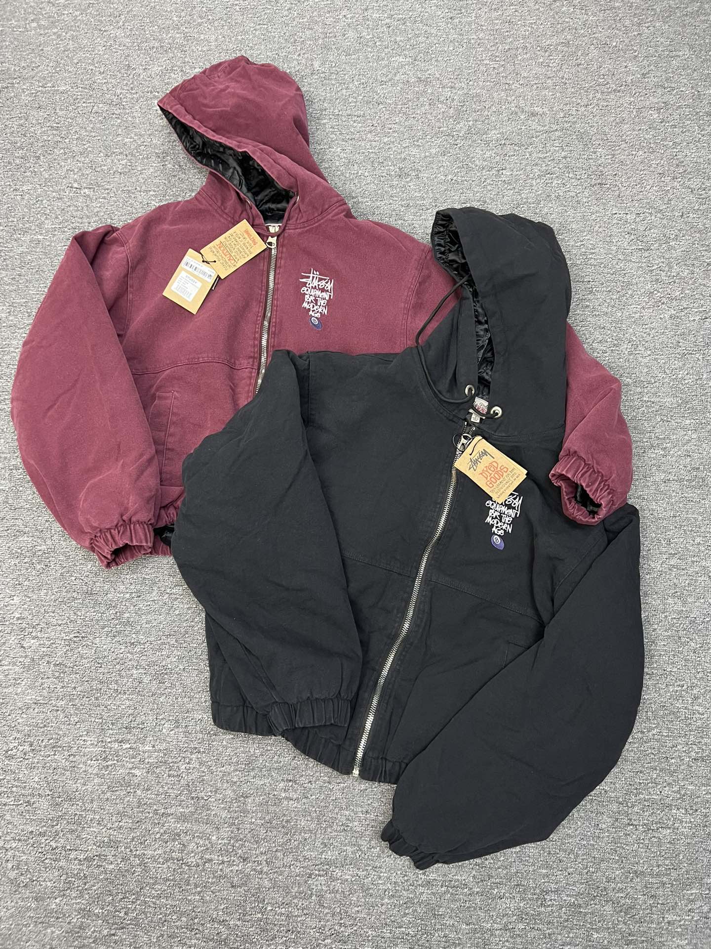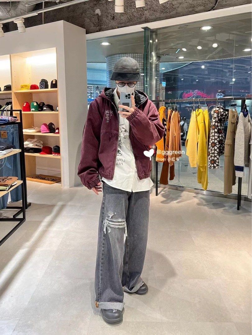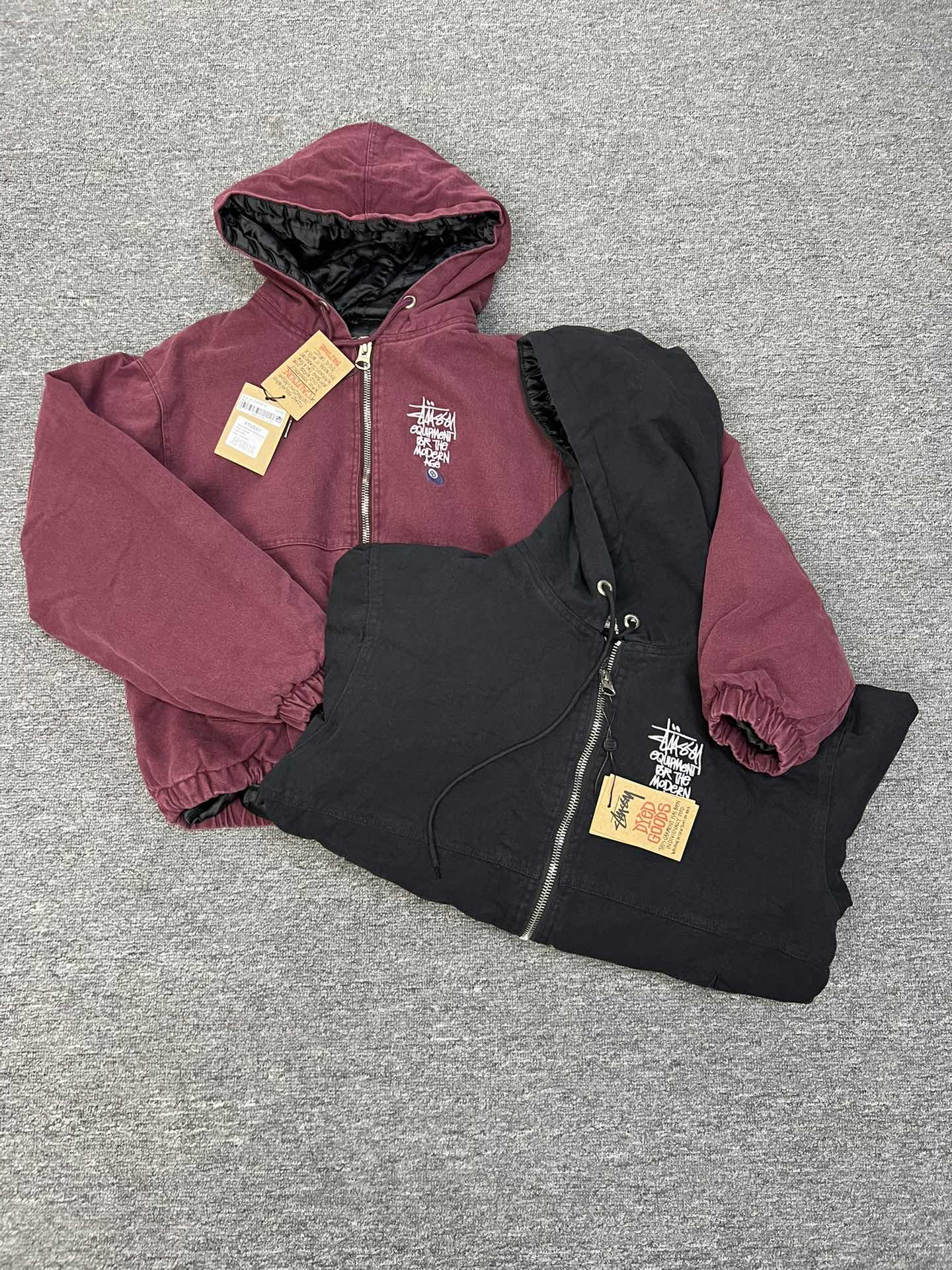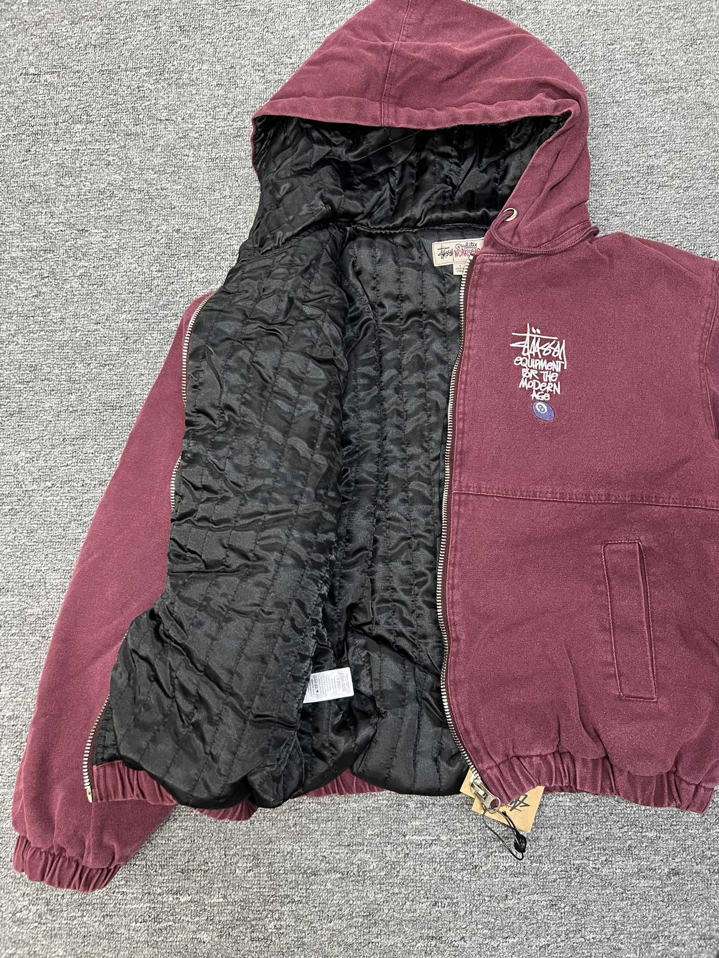 斯图西 Logo刺绣美式复古短宽 棉服外套 款号 057 批发价 170 颜色 深紫色 码数 S M L XL 衣长 63 65 67 69 胸围 120 124 128 132 肩宽 53 54 55 56 袖长 60 61 62 63