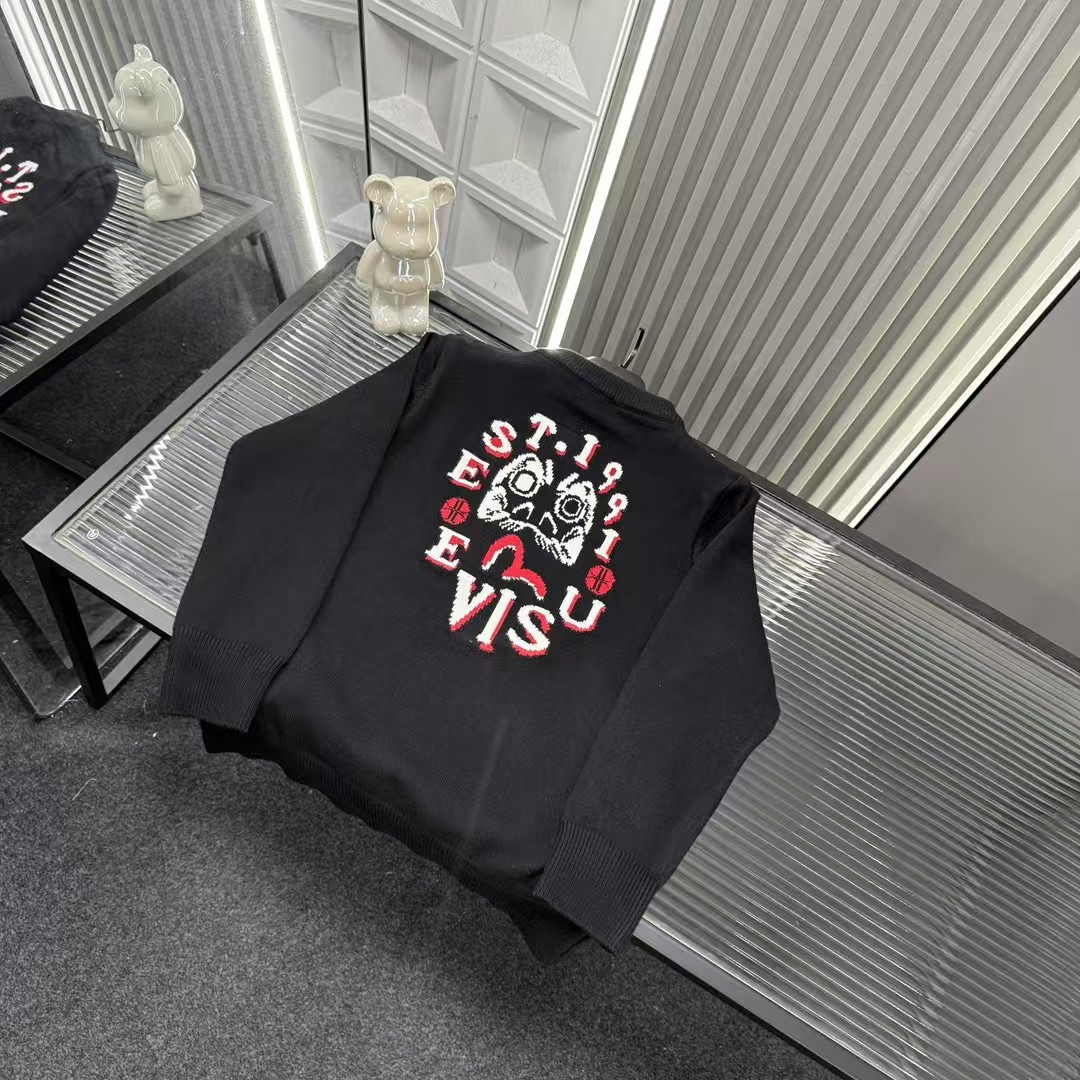 秋冬爆款热销款推荐Evisu福神针织毛衣 胸前海鸥图案 后背字母南瓜老头Logo 三标齐全官网一致 放大看细节原相机实物拍摄 颜色 黑色 尺码 L 4xl L 80 105斤 XL 105 120斤 2XL 120 140斤 3XL 140 160斤 4XL 160 180斤