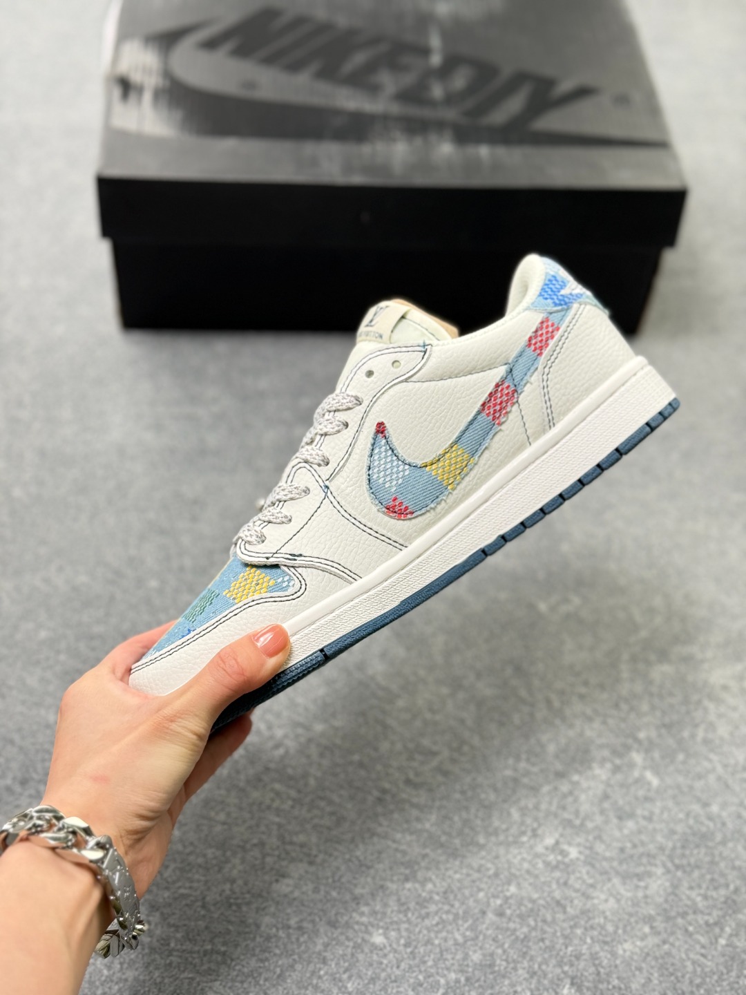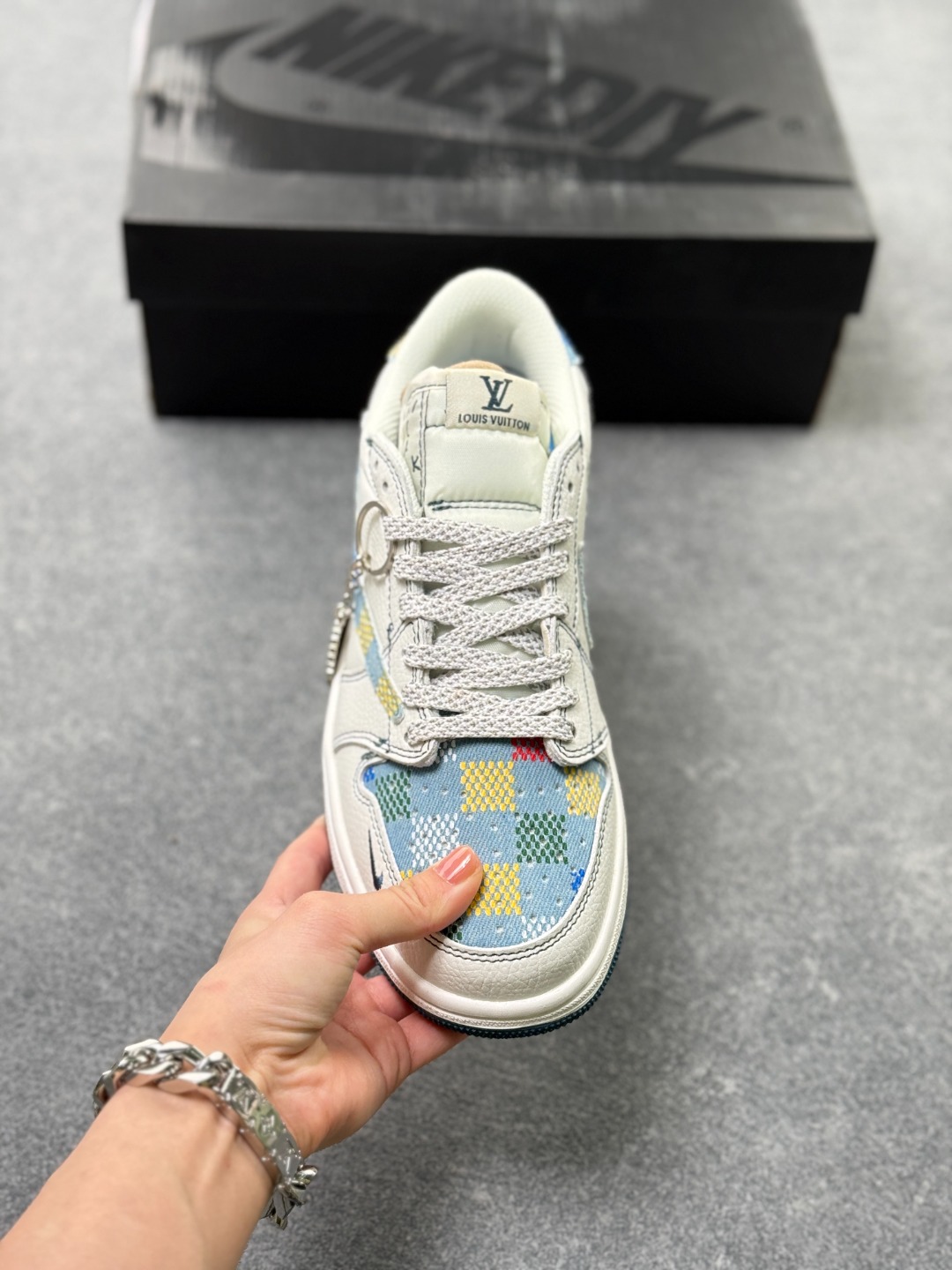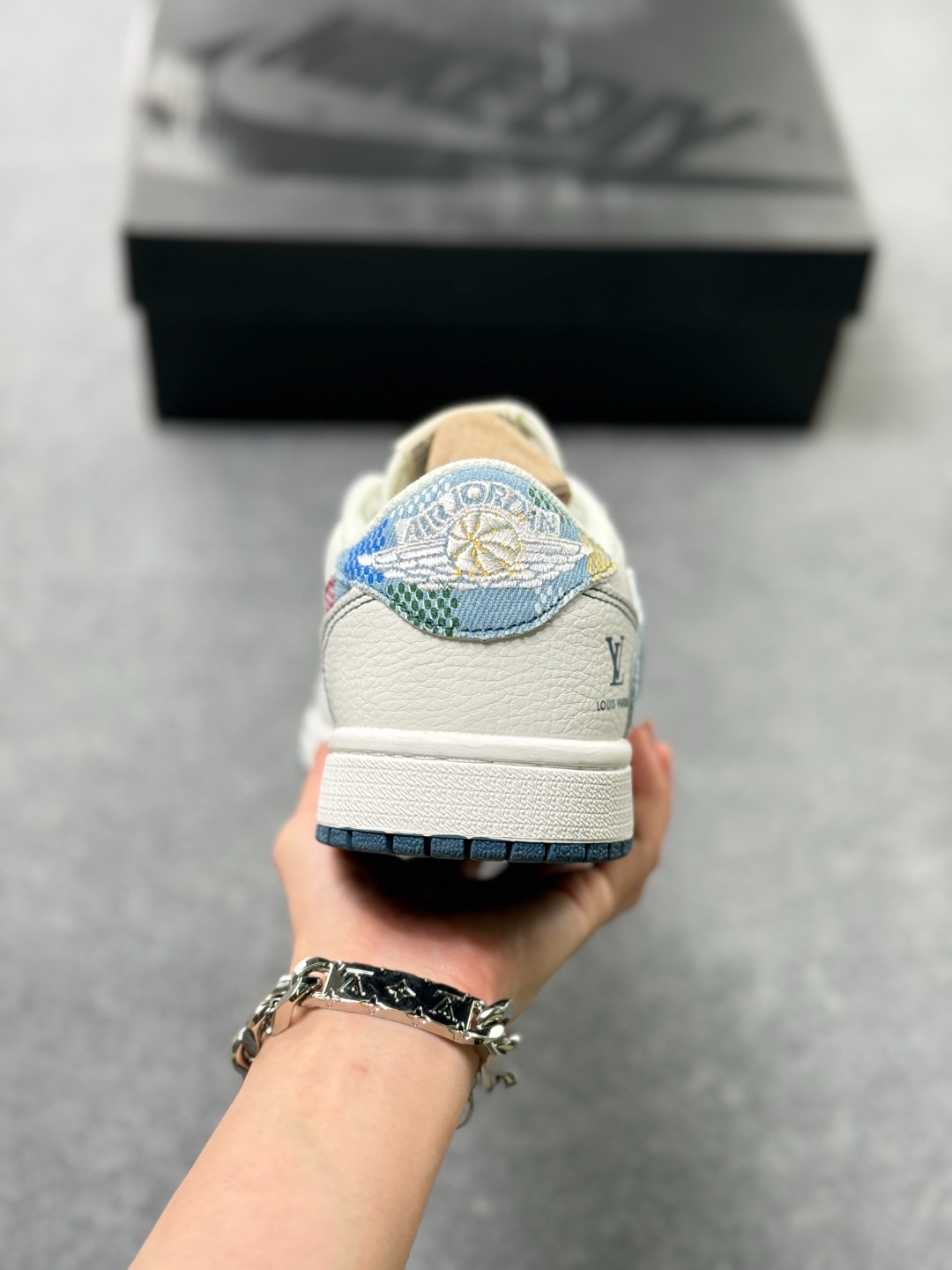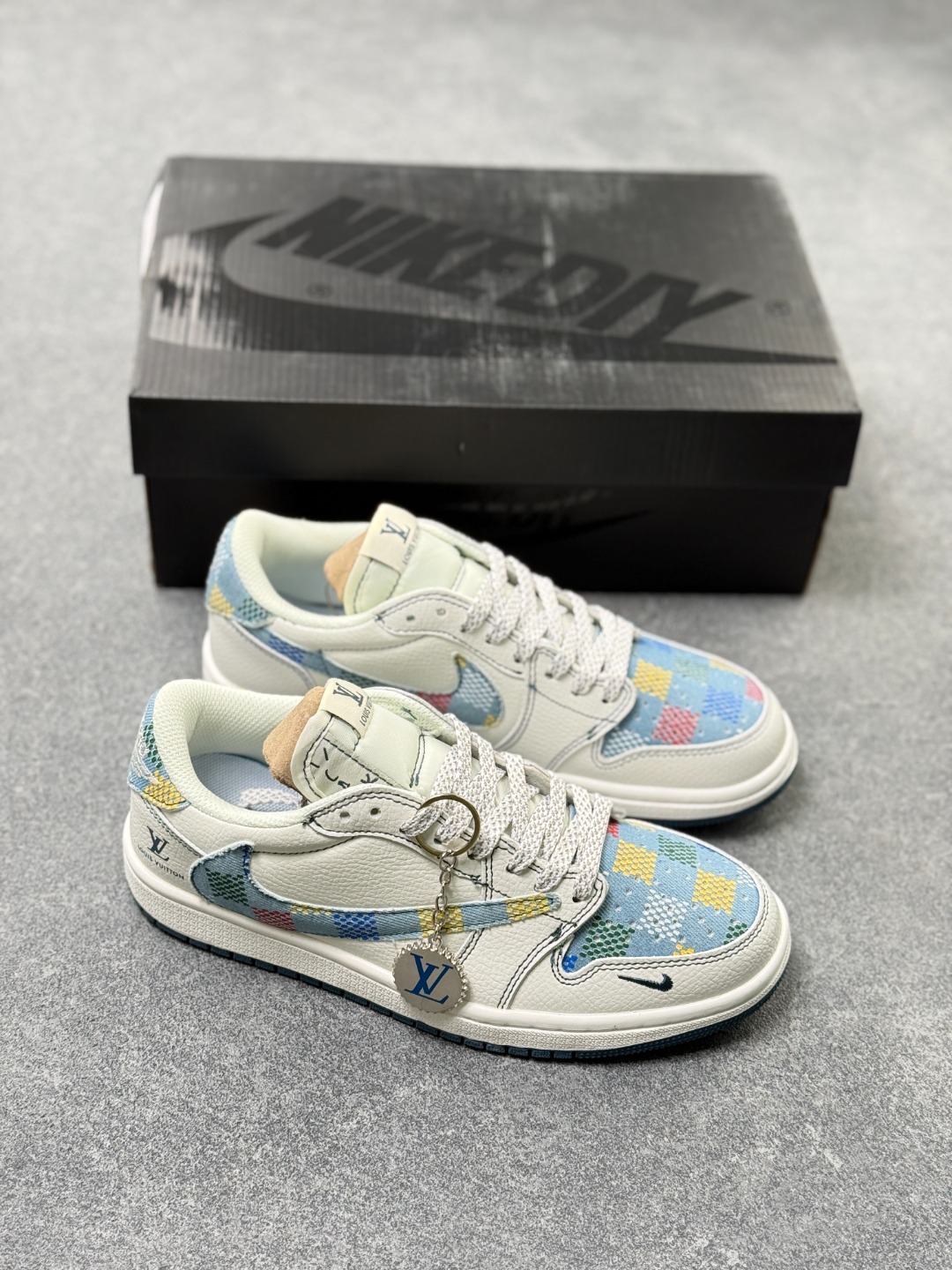 乔1 Air Jordan AJ1 Low X Louis Vuitton 低帮联名LV 黑线彩勾 定制配色 原厂内置气垫魔块 A模大底 头层小牛皮 鞋舌AJ原厂专用牛津布 AJ专用反口珍珠布 原厂无杂质高弹内里海棉 特殊封边弹力鞋带