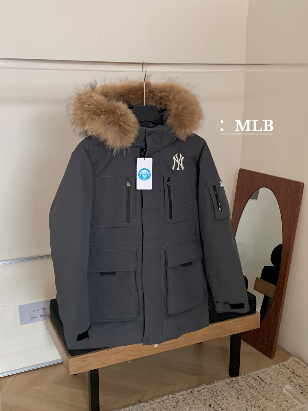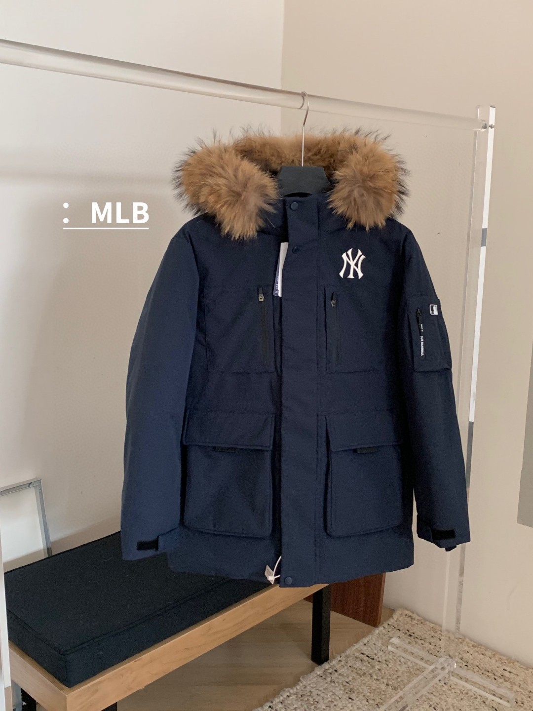 435158414 - 奢华真毛领 MLB官方男女 张凌赫同款 鹅绒毛领 工装风 320578