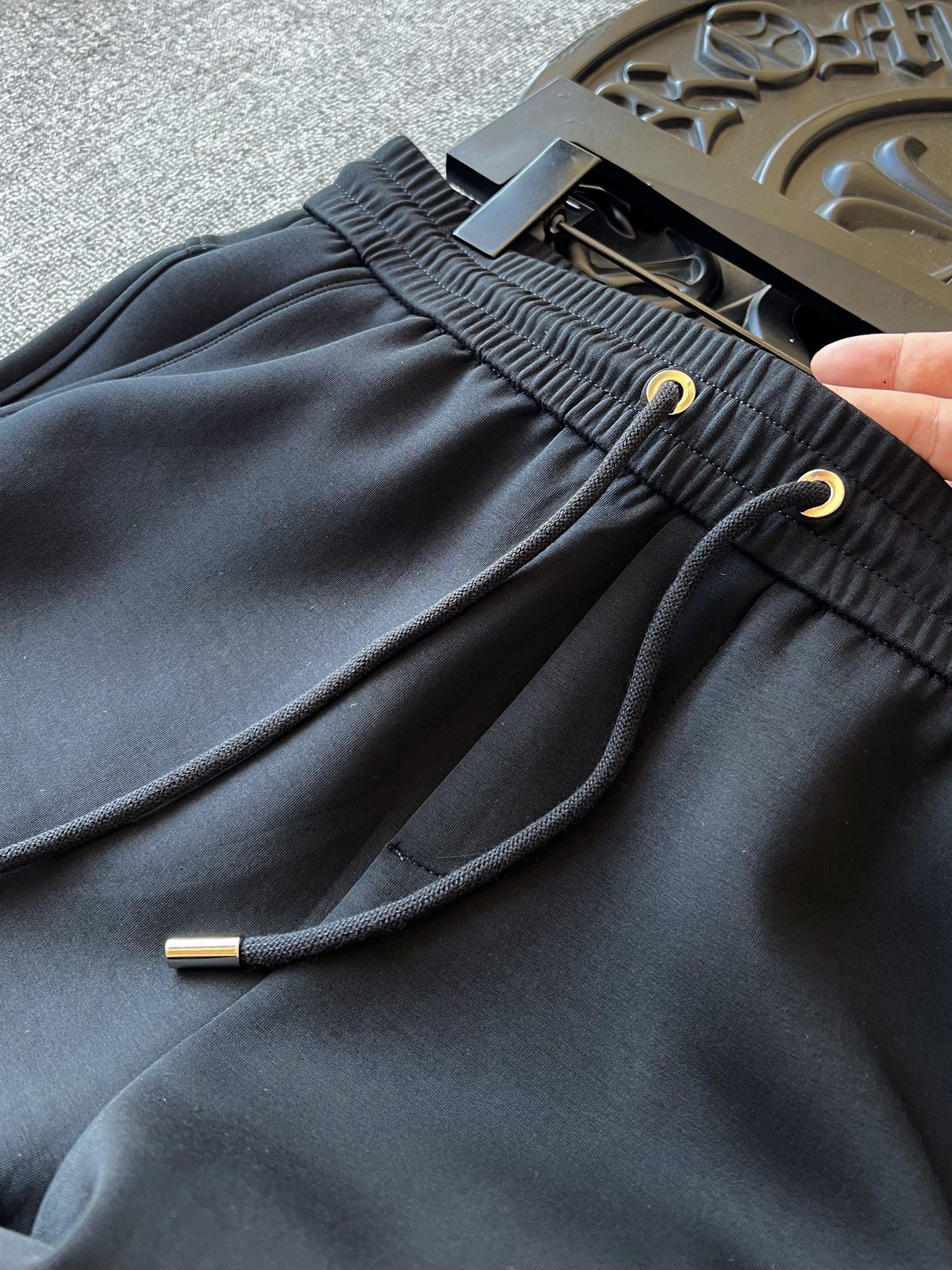 细节细节再细节 Loewe家商场新款液氨莫代尔加厚松紧裤 裤前激光浮雕罗意威软弹硅胶小标 细品表面肌理感分明 十分精致 YKK代工高光金属孔以及金属头 弧形口袋设计 增强立体感的同时增强实用性 后腰部采用十字拼接工艺 对缝对位 内里全包边双包条天花板级精湛做工