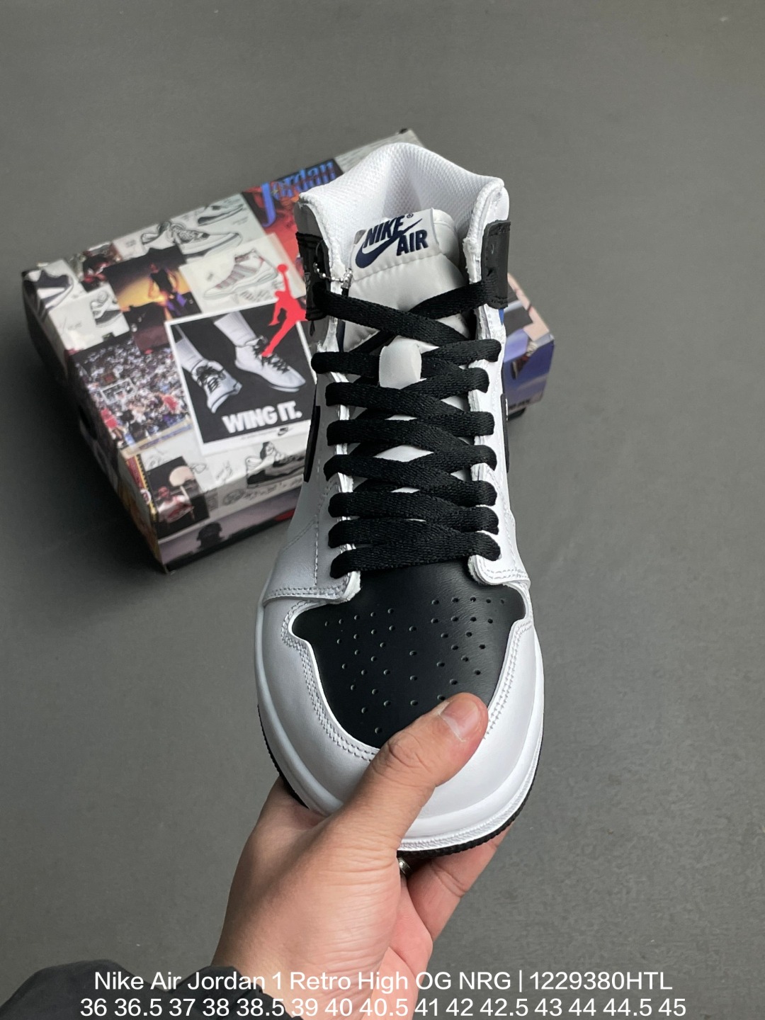 Jordan 乔丹 原楦原底数据开发版型 采用荔枝纹头层皮革鞋面 原数据开发模具大底耐克Nike Air Jordan 1 Retro High OG NRG乔丹一代AJ1经典高帮文化百搭休闲运动篮球鞋