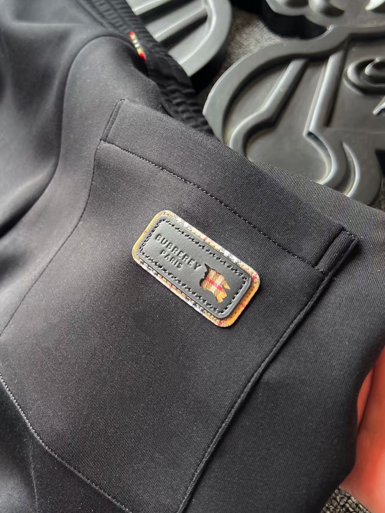 细节细节再细节 Burberry家商场新品直口松紧长裤 裤前软硅胶浮雕战马银标 细品纹理清晰可见 十分精致 裤后口袋镶嵌双层组合工艺战马皮标 腰围内里带宝格丽格布设计 抽绳金属孔带有激光雕刻Burberry战马标识 内里全包边双包条精湛做工 业界天花板