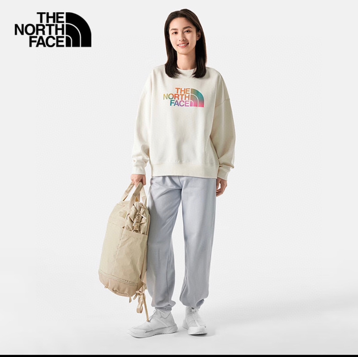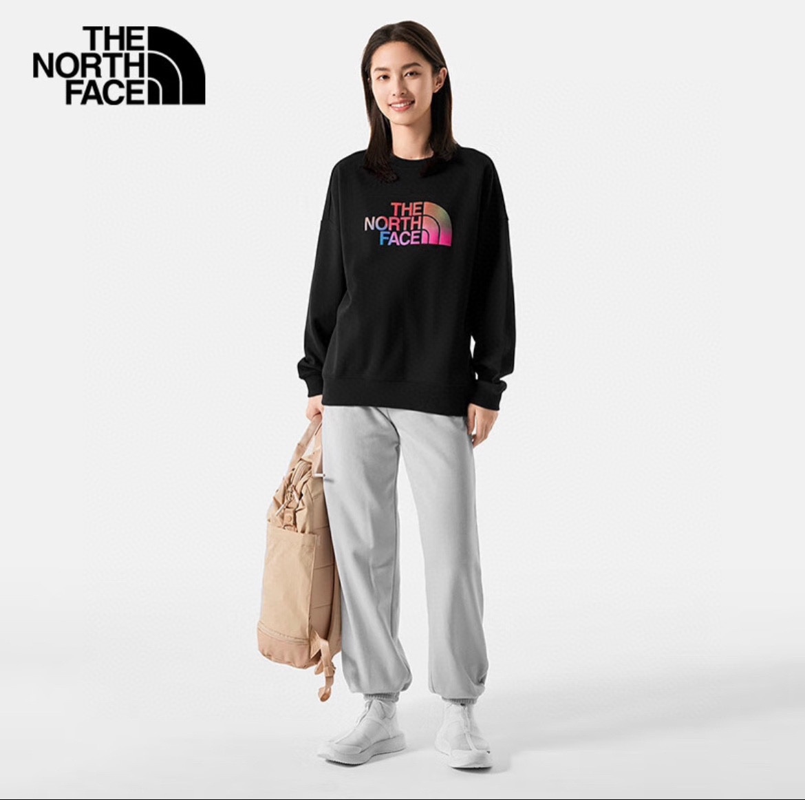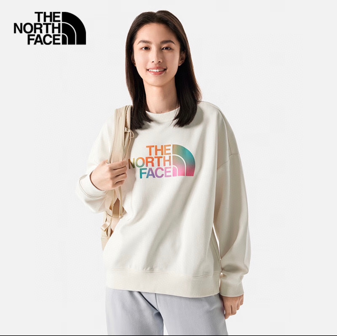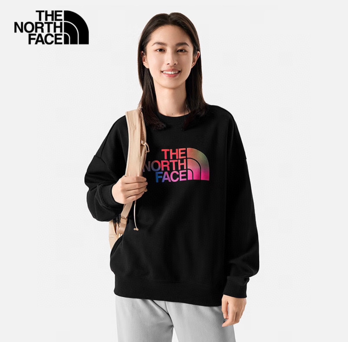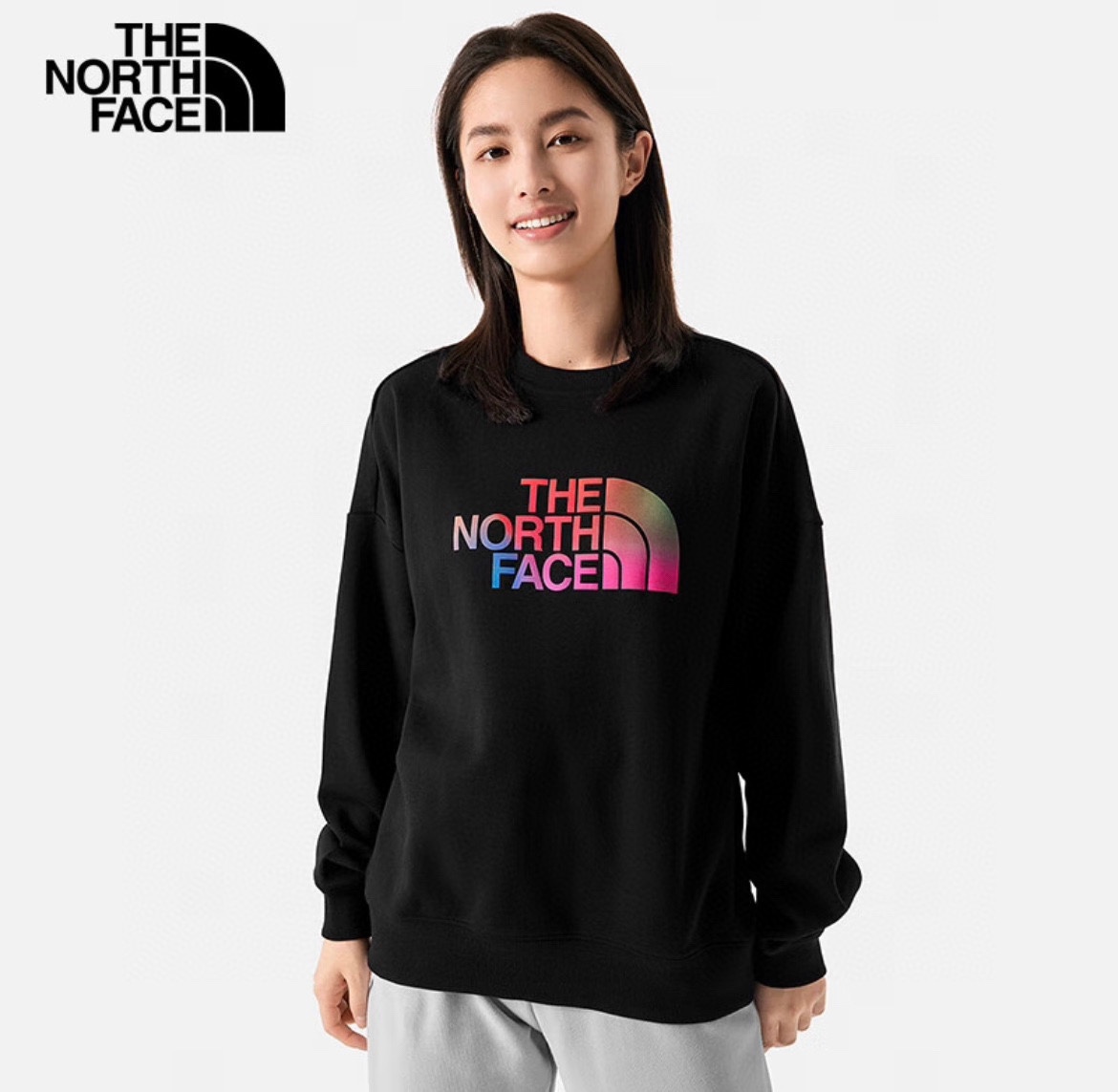 TNF北面渐变大logo最新款套头银狐绒圆领卫衣休闲情侣款 顶级版本