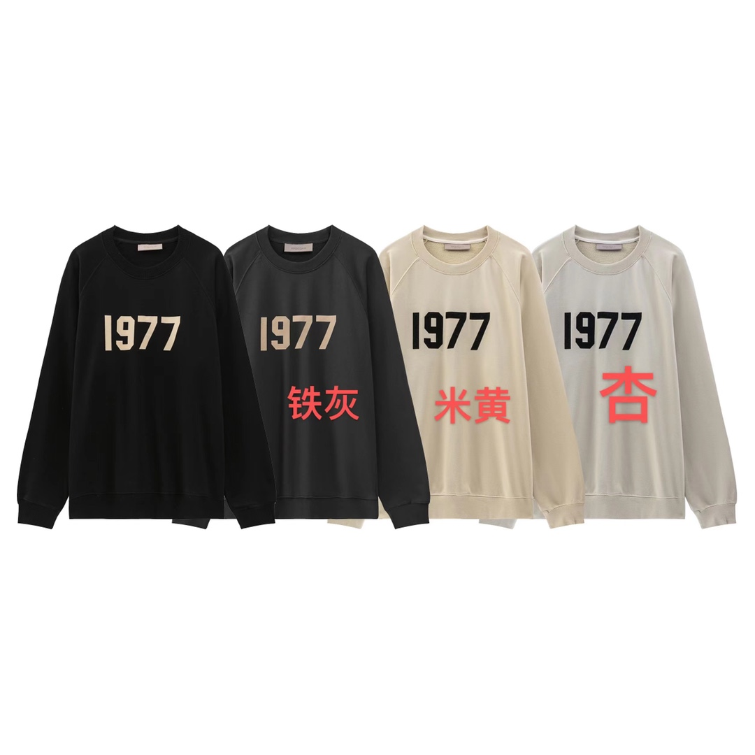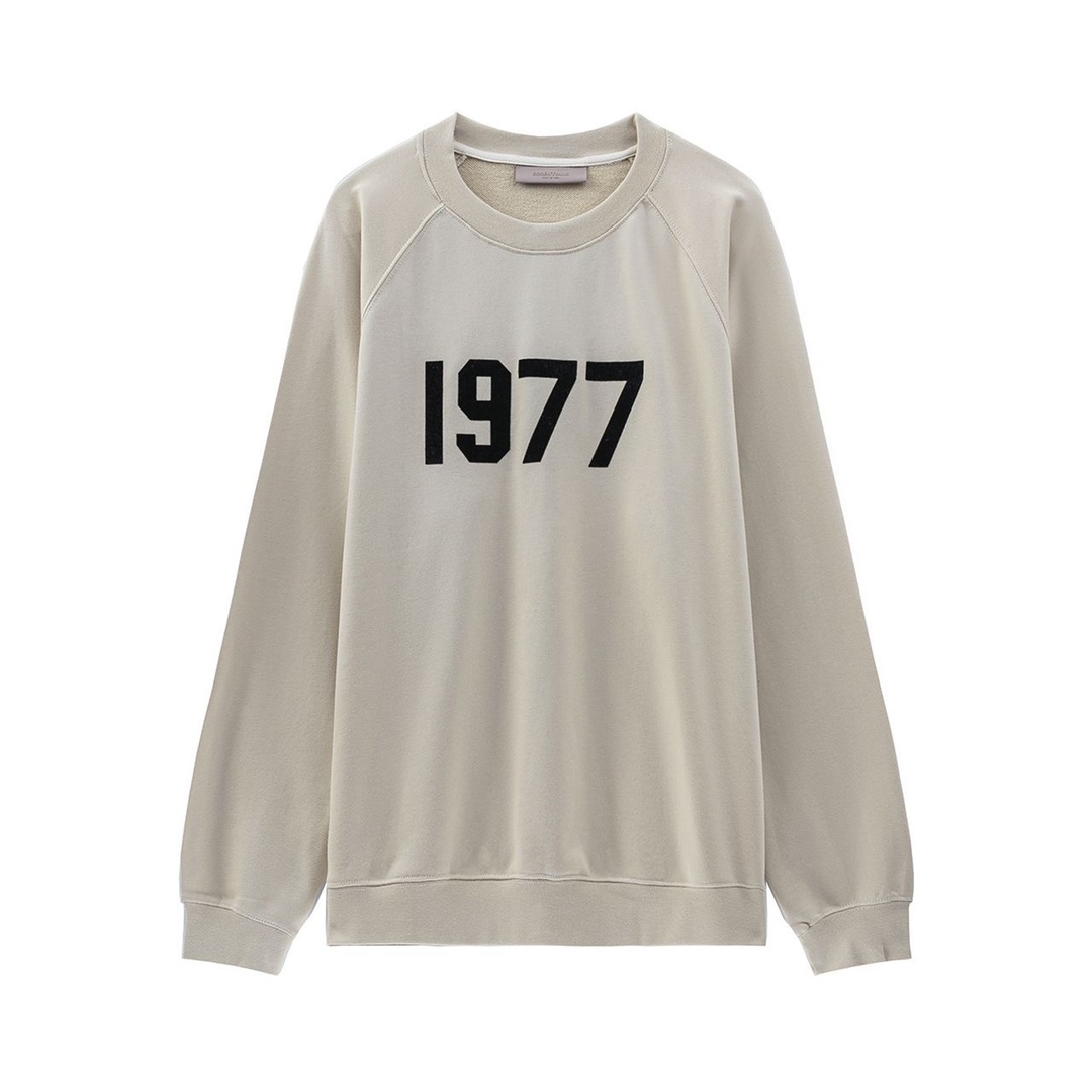 FOG 1977植绒印花数字高街欧美情侣装圆领卫衣 370克棉毛圈卫衣 黑 铁灰 米黄 杏 4个色 S一XL