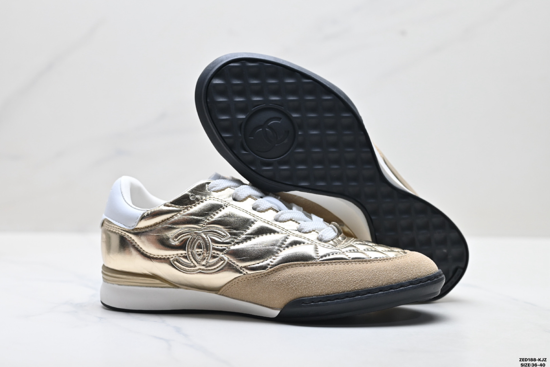 纯原CHANEL香奈儿 24A 菱形格 小牛皮 圆头系带 低帮休闲鞋 油蜡皮与麂皮的细腻 藏着香奈儿的匠心 不张扬的LOGO 百搭所有穿搭 日常暴走也软糯贴脚 把奢雅融入休闲日常 耐看百搭 永不过时的精致选择 轻松打造不费力的高阶穿搭 鞋面采用原版定制皮料 内里垫脚均为羊皮原版开模定制TPU大底 尺码 35 40 ID ZED188 KJZ