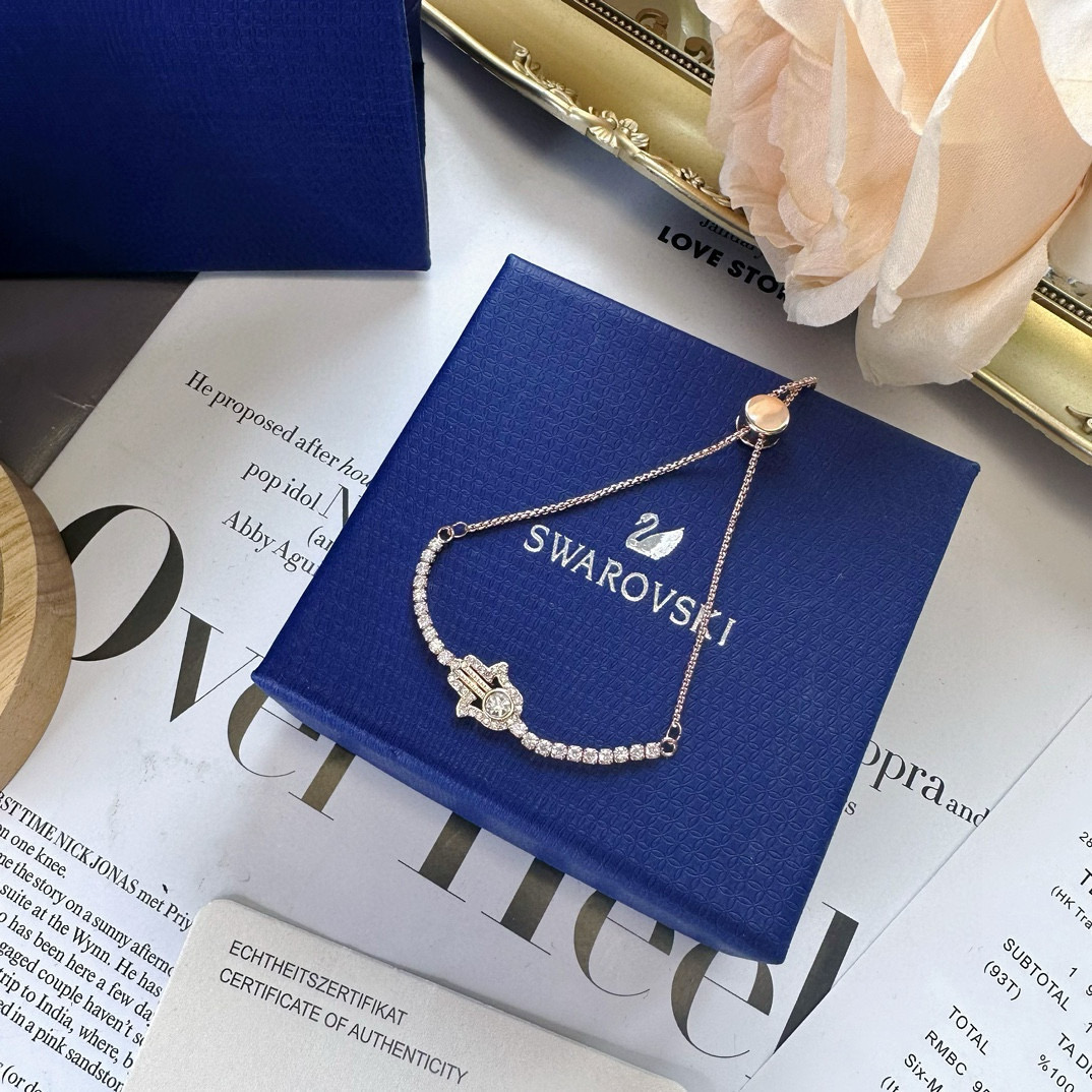 特价所见所得高品质礼盒全套 不退换 卖完下架最新款Swarovski 施华洛世奇哈萨姆只手女士玫瑰金色手链 百年品质 神秘魅力 浪漫璀璨 这由镀玫瑰金色打造的魔手造型 钻石闪闪发光 可为装扮增添神秘魅力长度可调节 胖瘦都可戴