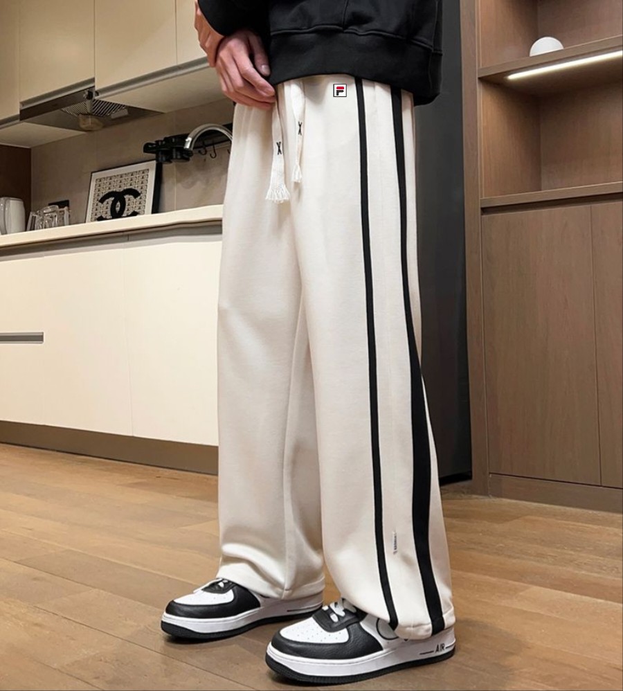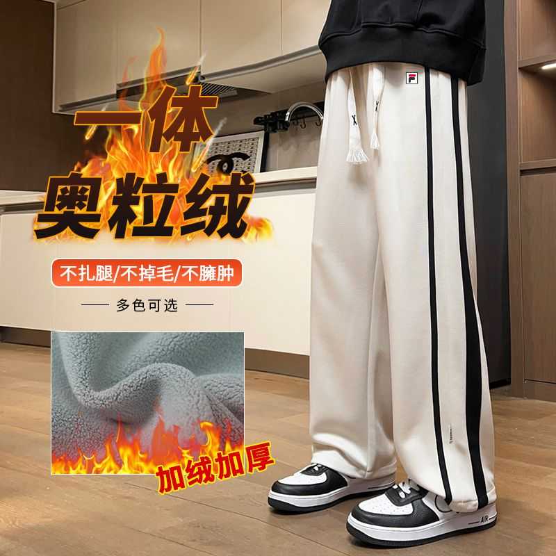 FILA 斐乐冬季加厚拼接双面奥粒绒敞口休闲裤卫裤 欧版潮流系列 双面奥粒绒面料 情侣款 抖音爆款 版型超帅 个性设计给人过目不忘印象 强烈推荐自留 休闲运动版型 侧边拼接线条设计 经典不过时 帅气逼人 耐穿 不易脏 比较时尚 工艺讲究细致 绝对的炸街爆款 颜色 黑色 杏 尺码 M 4XL
