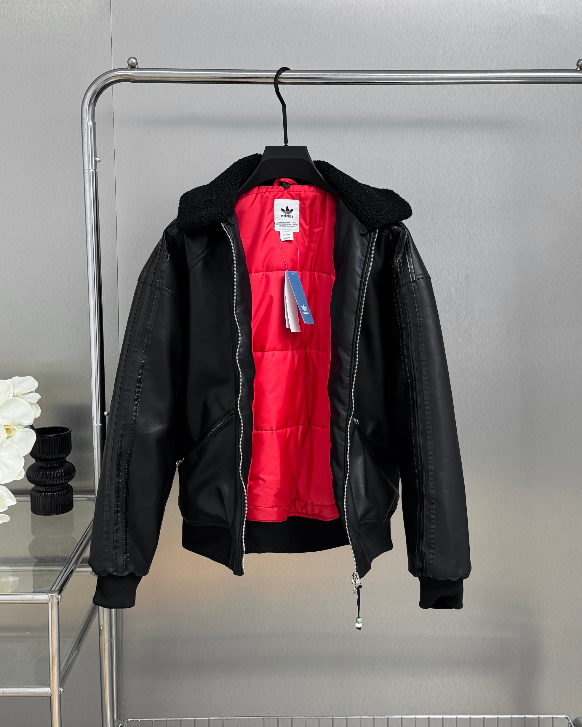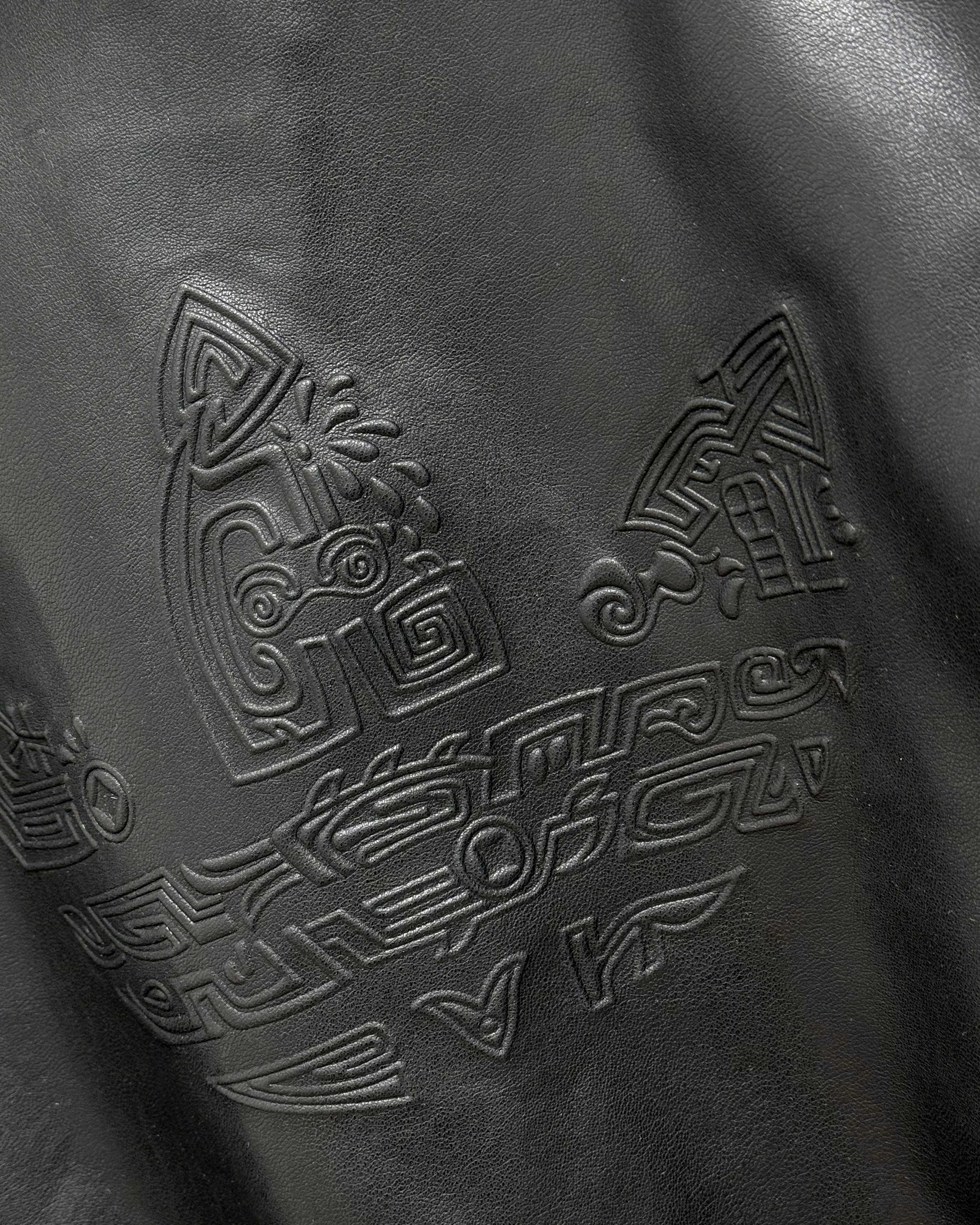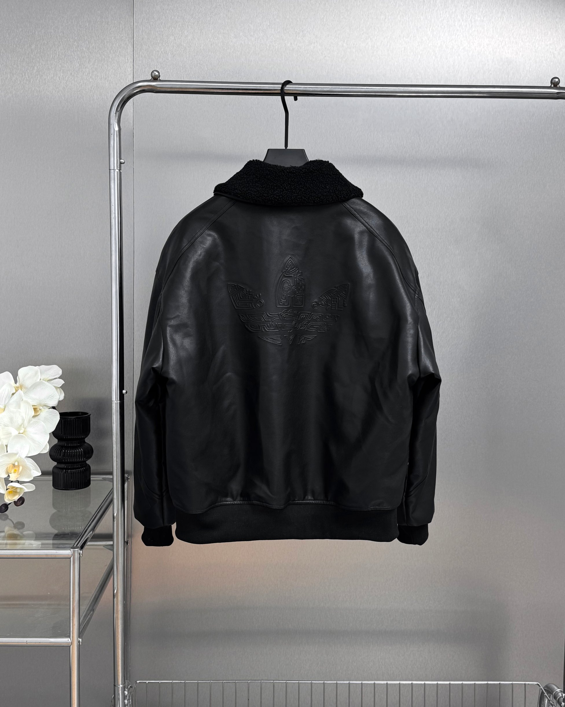 全套定制辅料 面料采用定制pu皮面料 原版钢印开模 皮质柔软 保暖又不会显臃肿 整件衣服原版剪裁设计非常个性 立领夹克的版型上身超酷 胸口经典刺绣logo搭配纯色整体 简约又不简单 下摆两侧都有口袋 定制拉链有三叶草logo 定制玉坠绝对的用心之作 百分百还原 插肩袖的版型尽显复古风 男女同款上身效果百搭