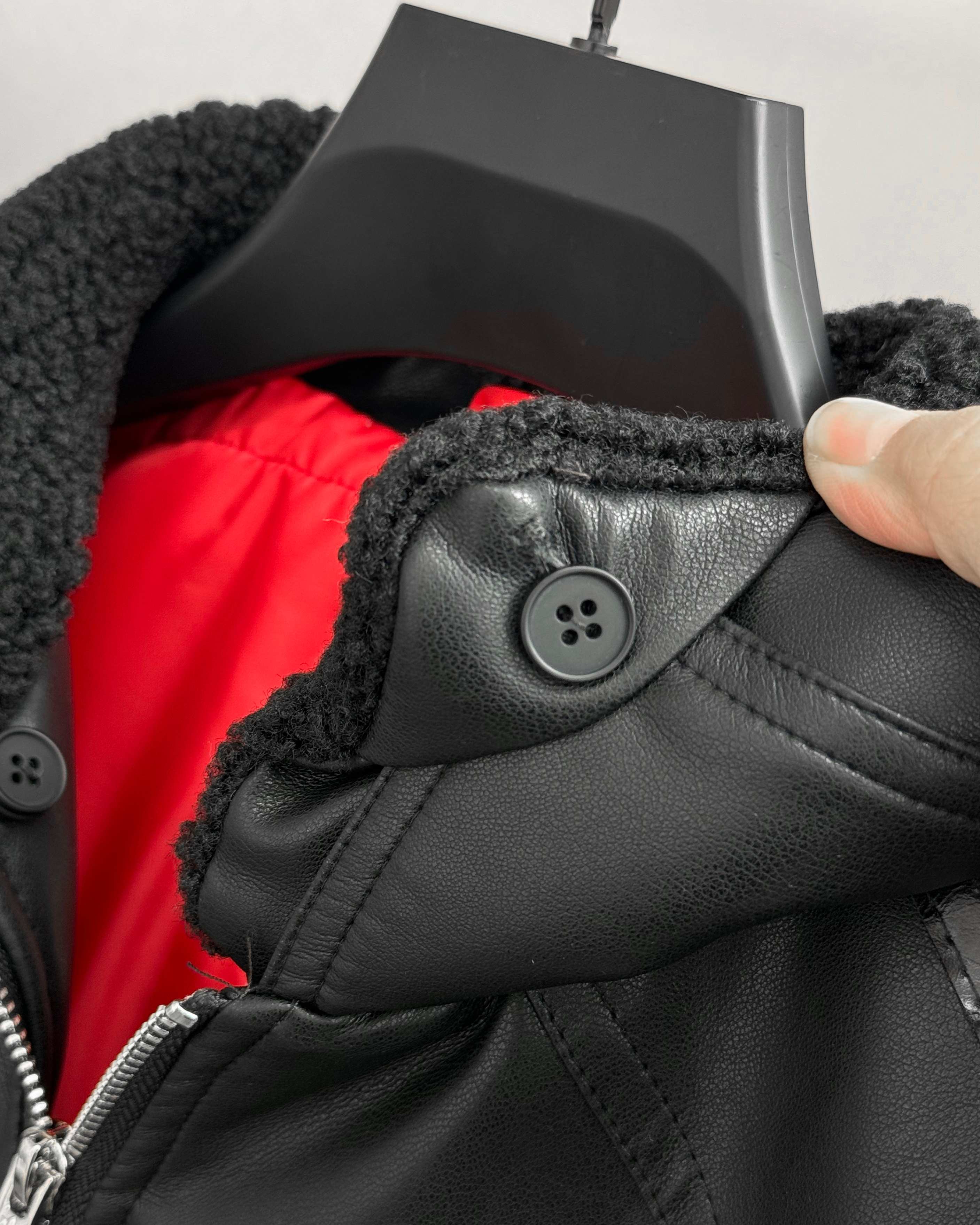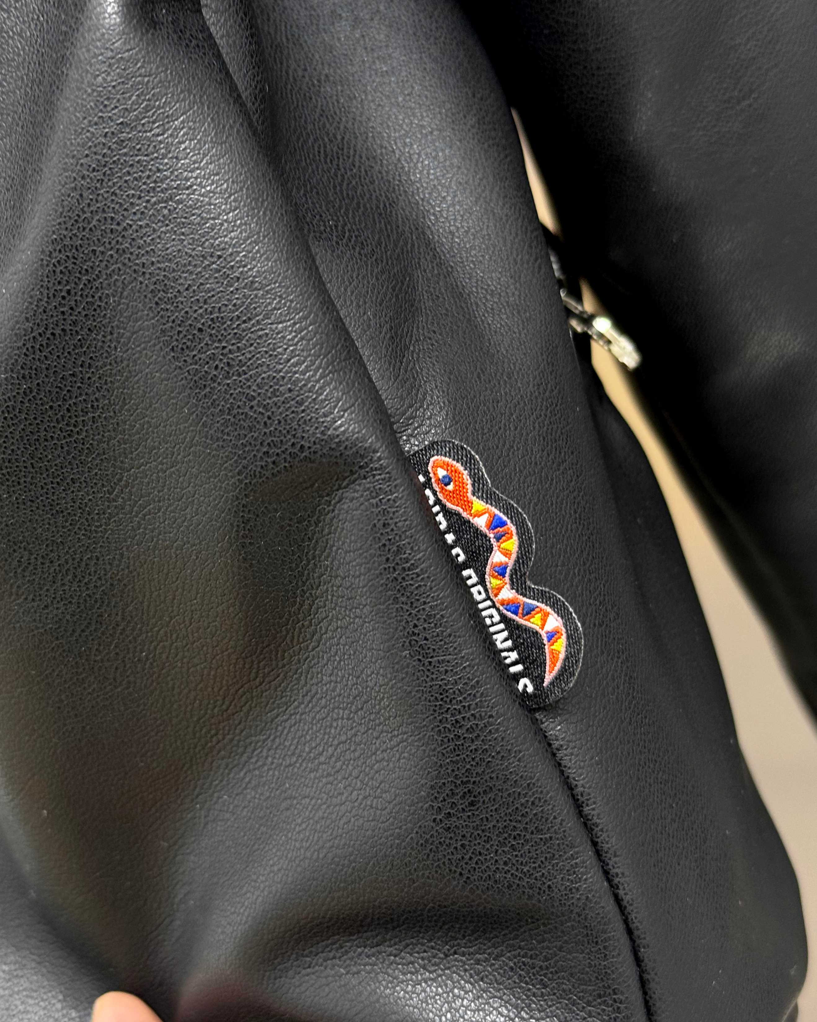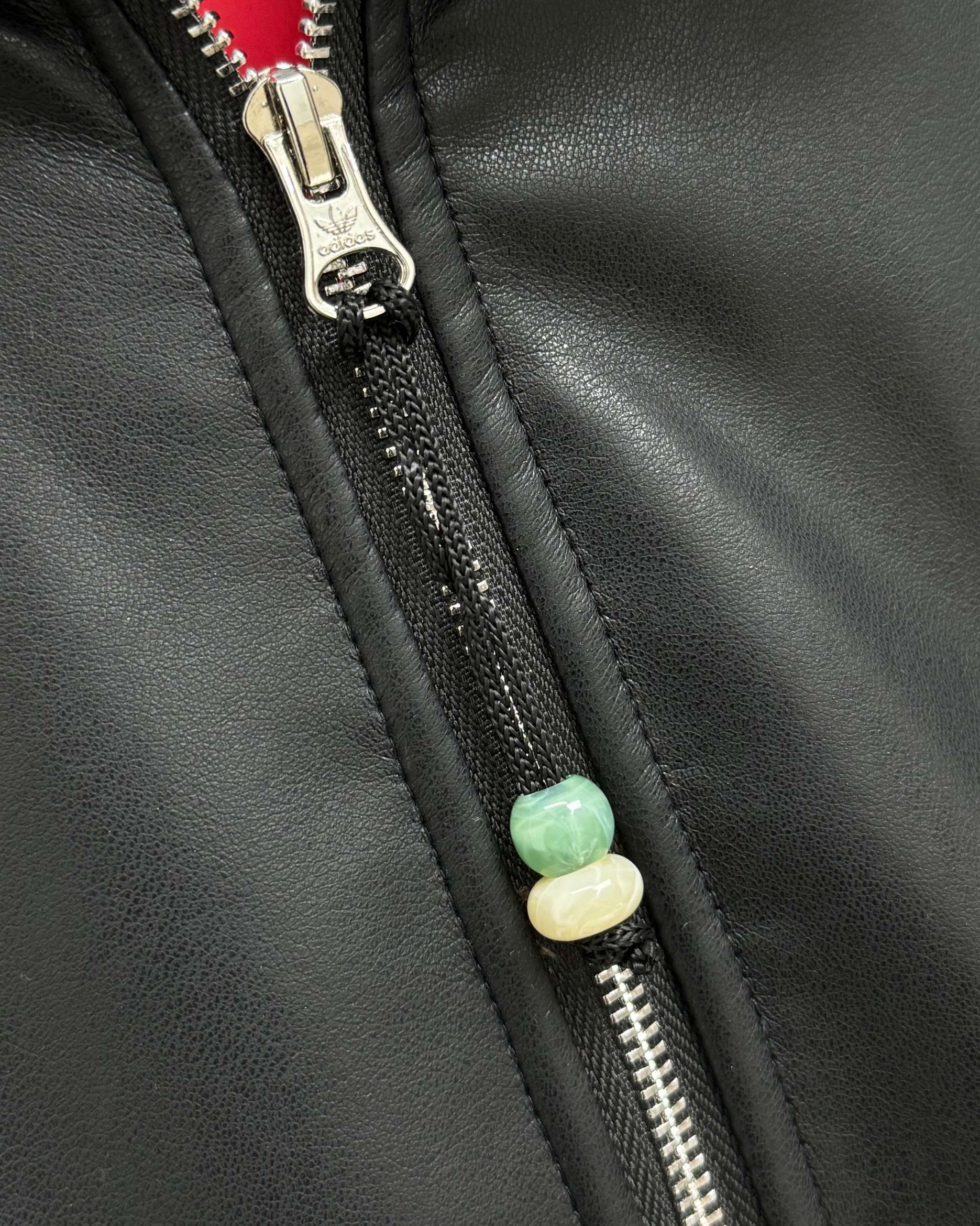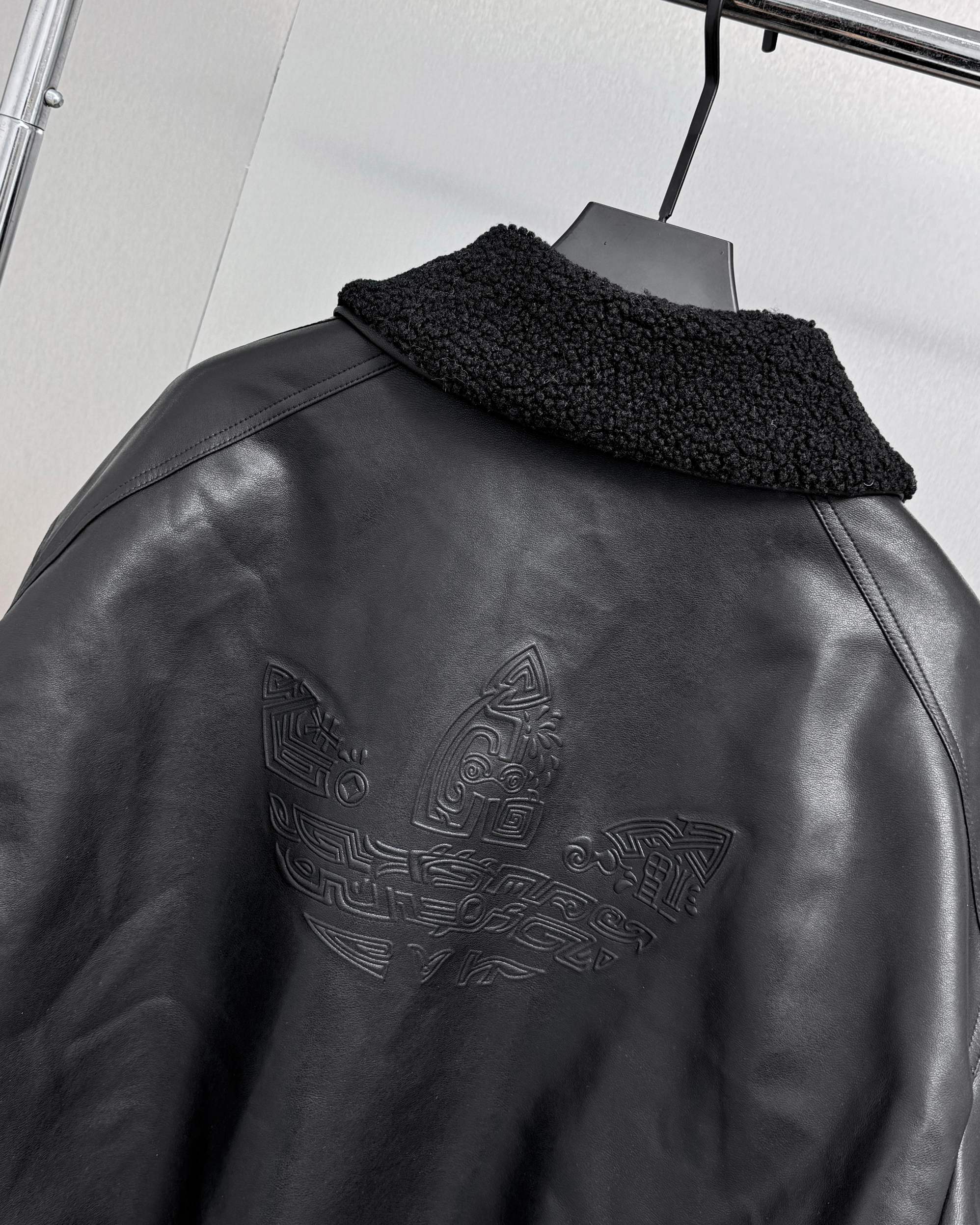 全套定制辅料 面料采用定制pu皮面料 原版钢印开模 皮质柔软 保暖又不会显臃肿 整件衣服原版剪裁设计非常个性 立领夹克的版型上身超酷 胸口经典刺绣logo搭配纯色整体 简约又不简单 下摆两侧都有口袋 定制拉链有三叶草logo 定制玉坠绝对的用心之作 百分百还原 插肩袖的版型尽显复古风 男女同款上身效果百搭