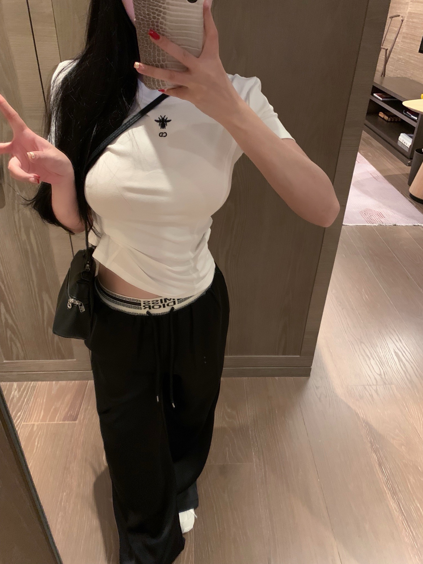 Dior迪奥CD小蜜蜂刺绣收腰圆领短袖T恤 款号 26670 489767