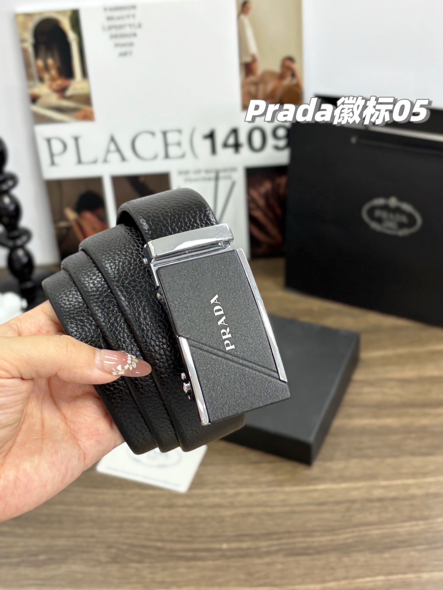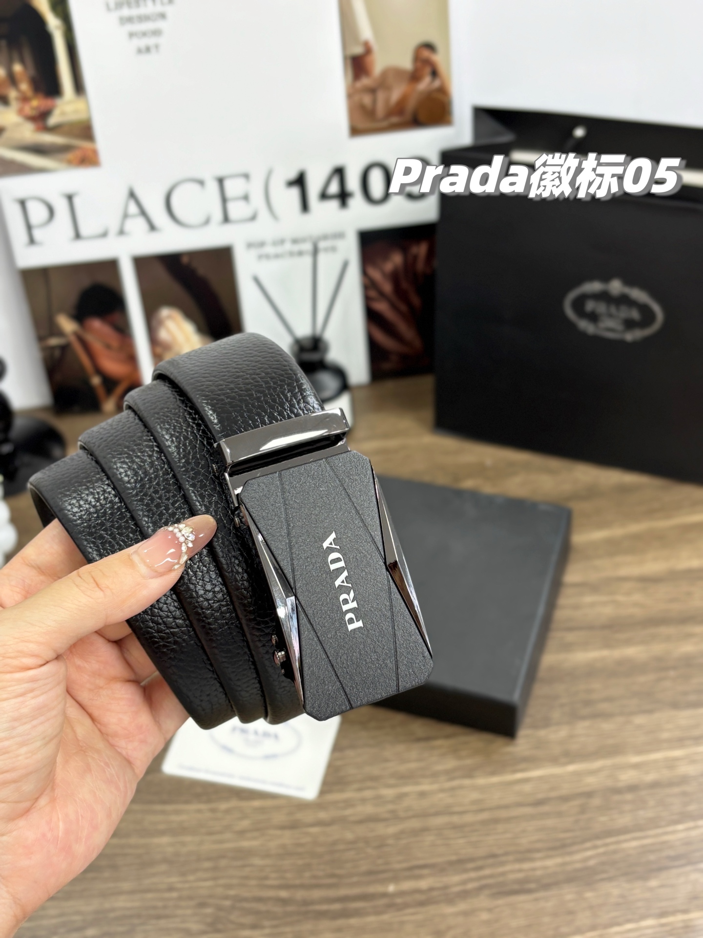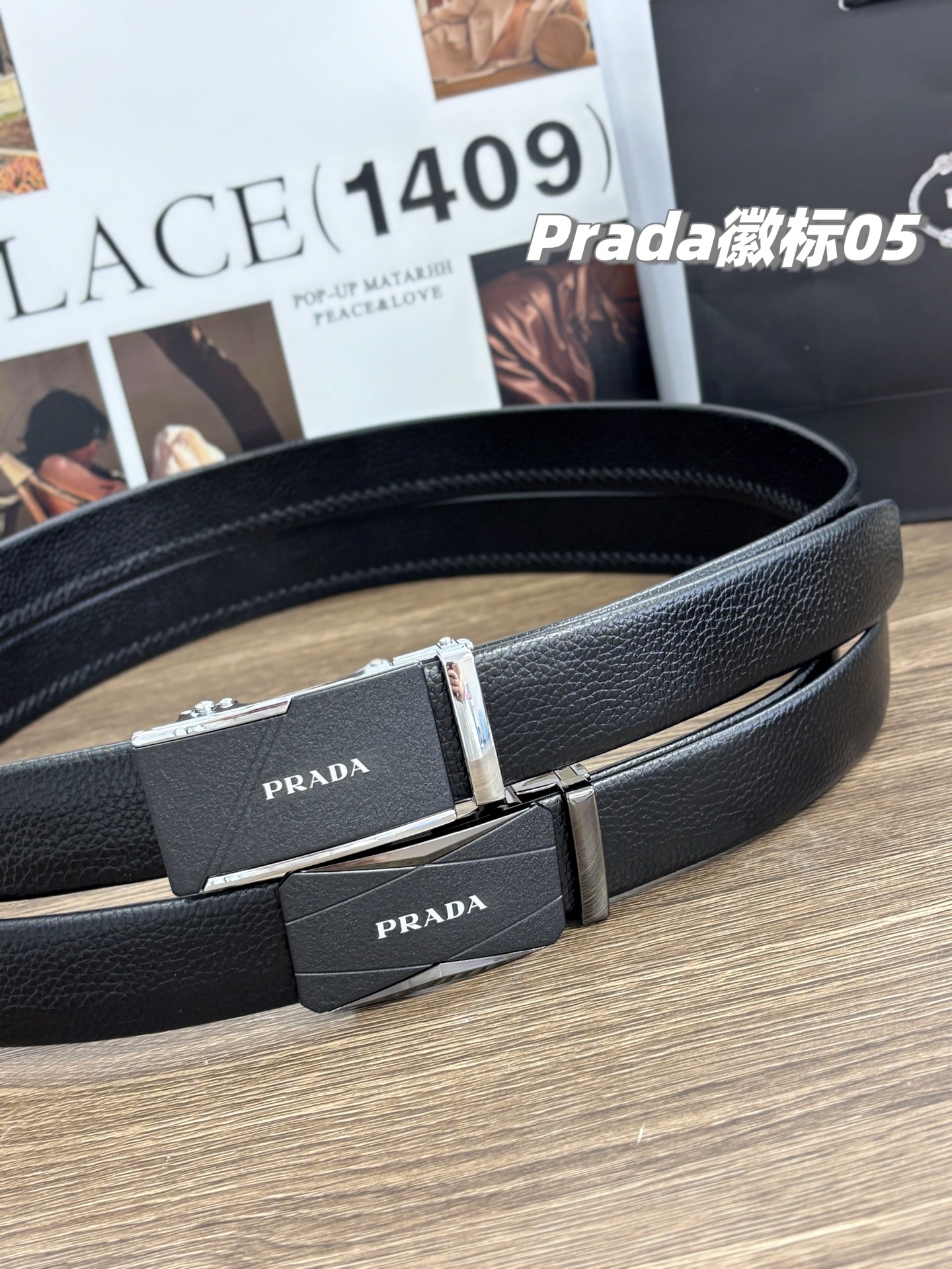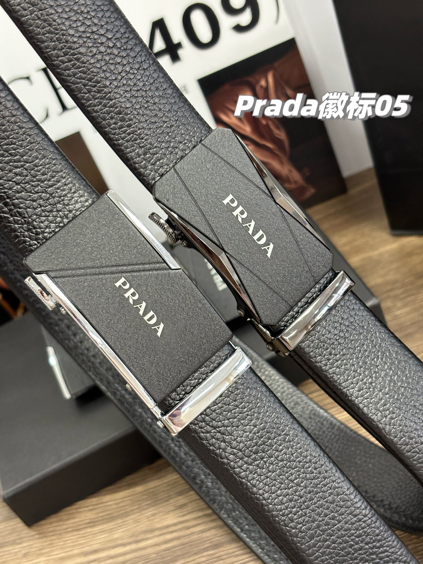 不下架 放心推 稀有珍品 纯正贸易公司货 普拉达PRADA男士双扣腰带自动扣纯牛皮腰带 荔枝纹皮带 男士皮带礼盒装 一盒搭配2个扣头可任意拆卸搭配 宽度3 5cm