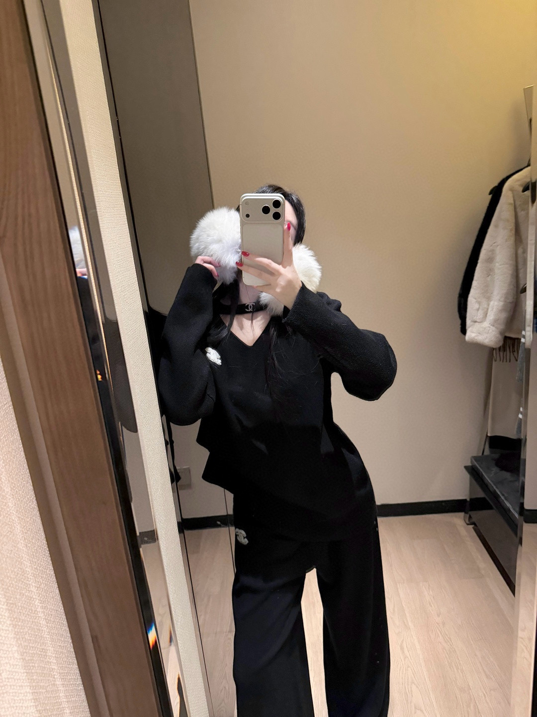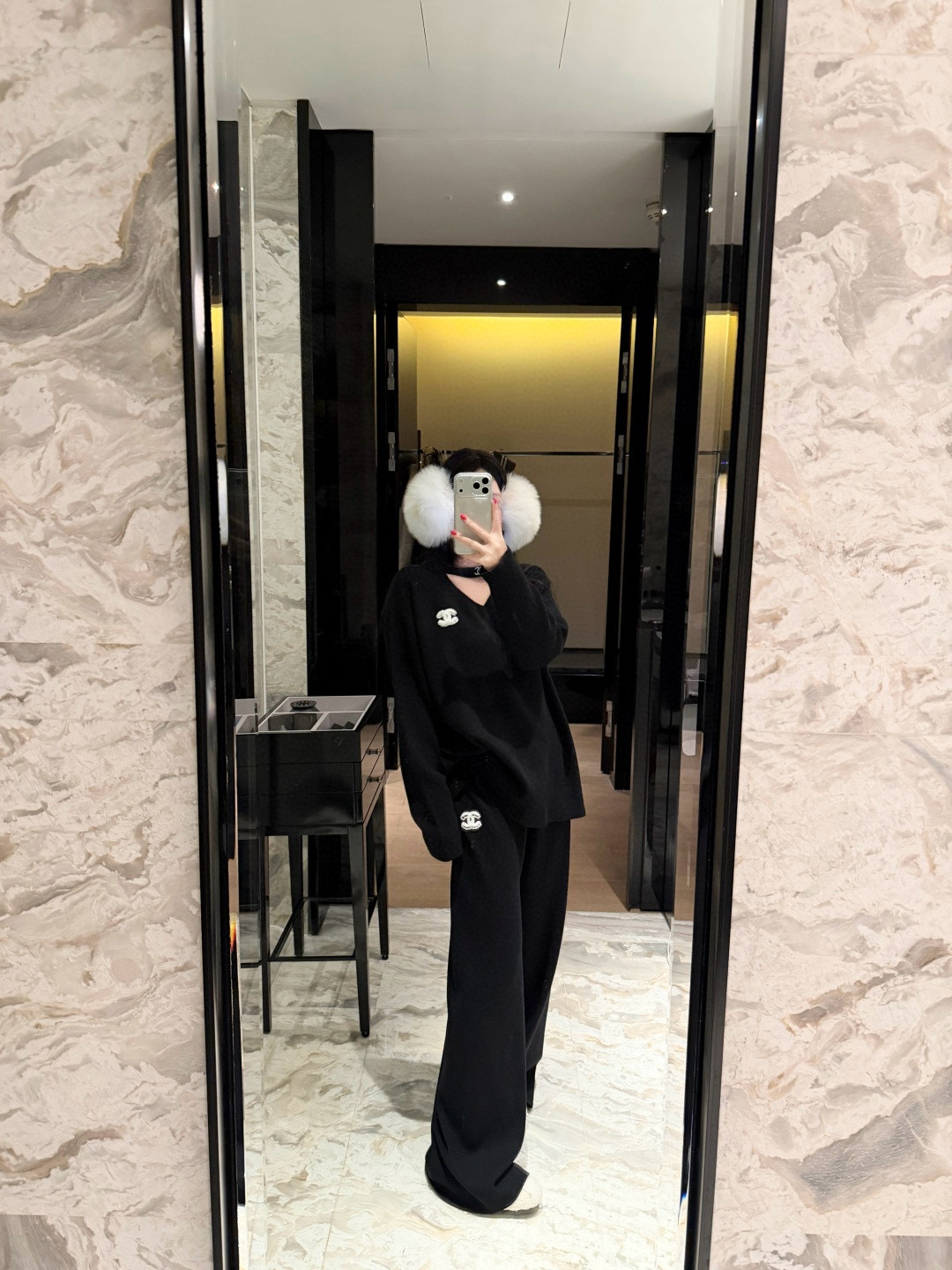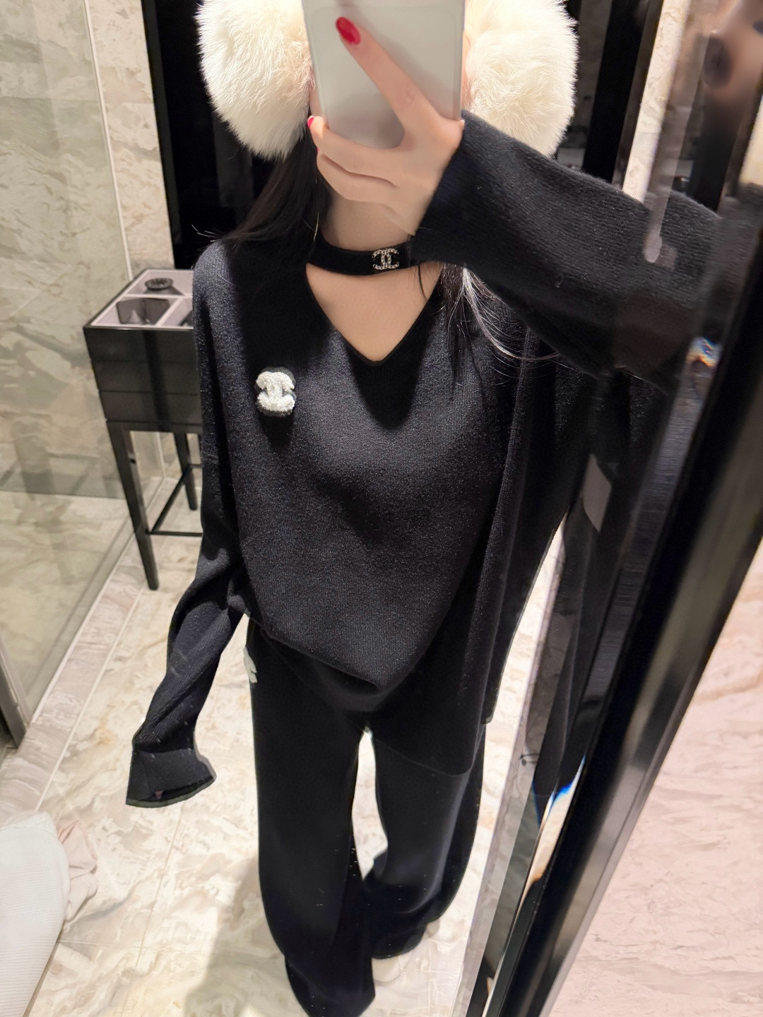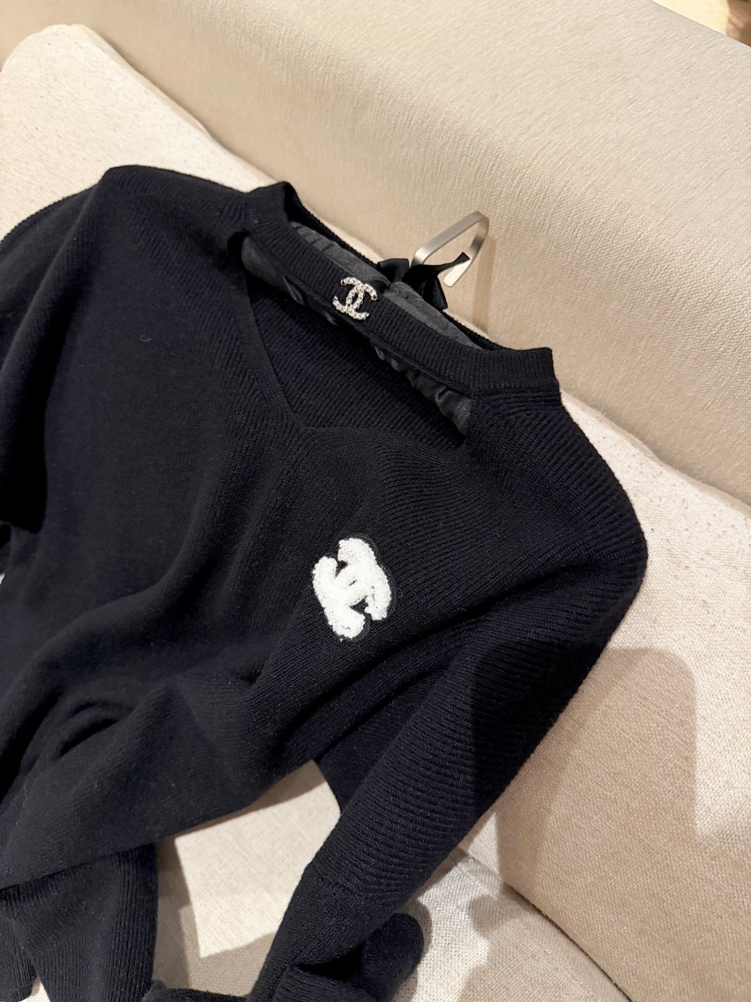 Chanel香奈儿小香双C立体毛巾绣花镂空毛衣抽绳长裤针织套装