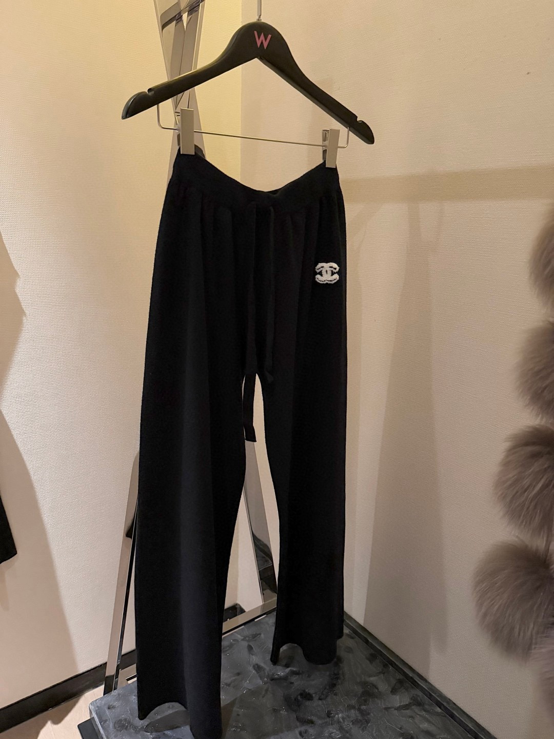 165135598 - Chanel香奈儿小香双C立体毛巾绣花镂空毛衣抽绳长裤针织套 383663