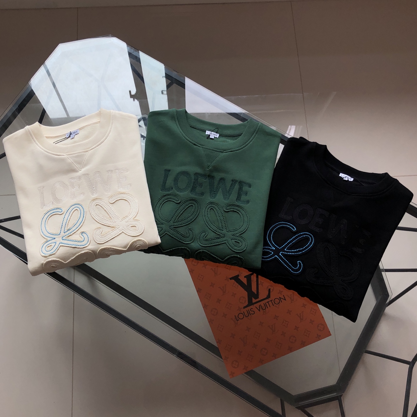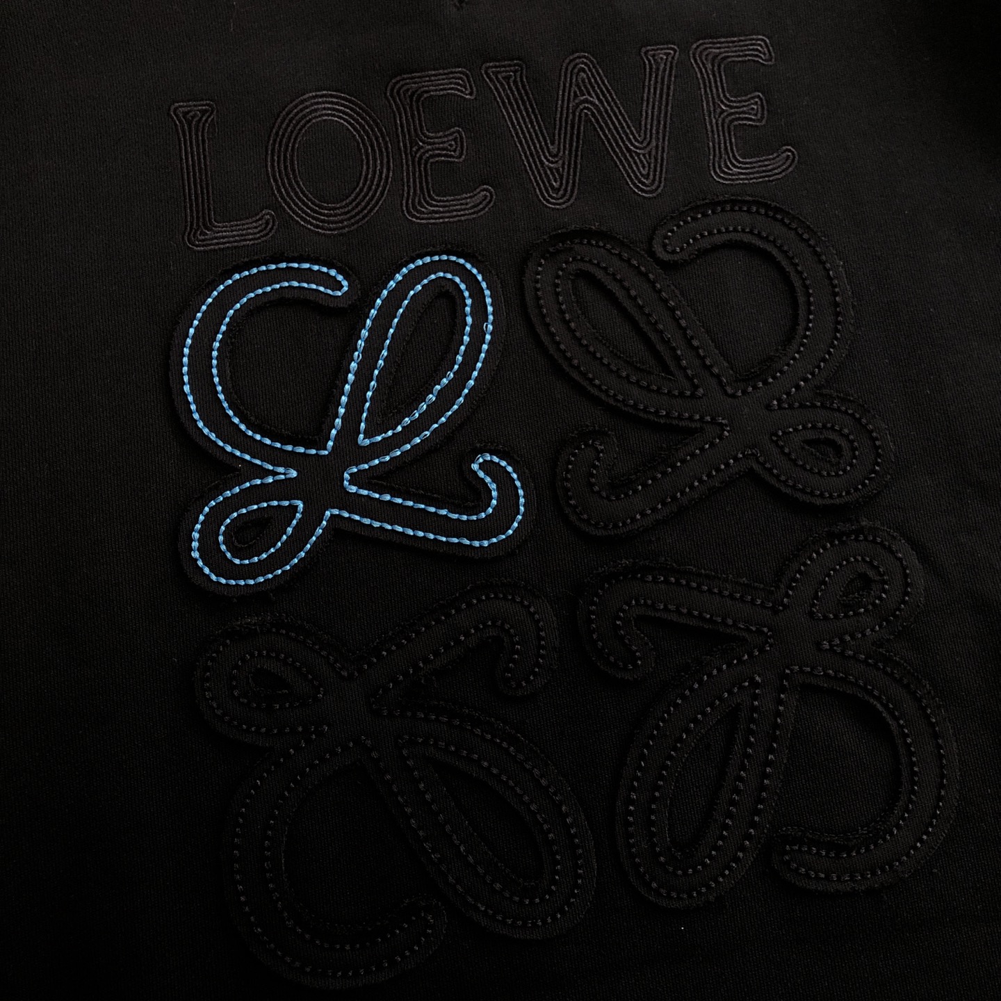 面料选用420g毛圈面料 LOEWE经典标识立体刺绣