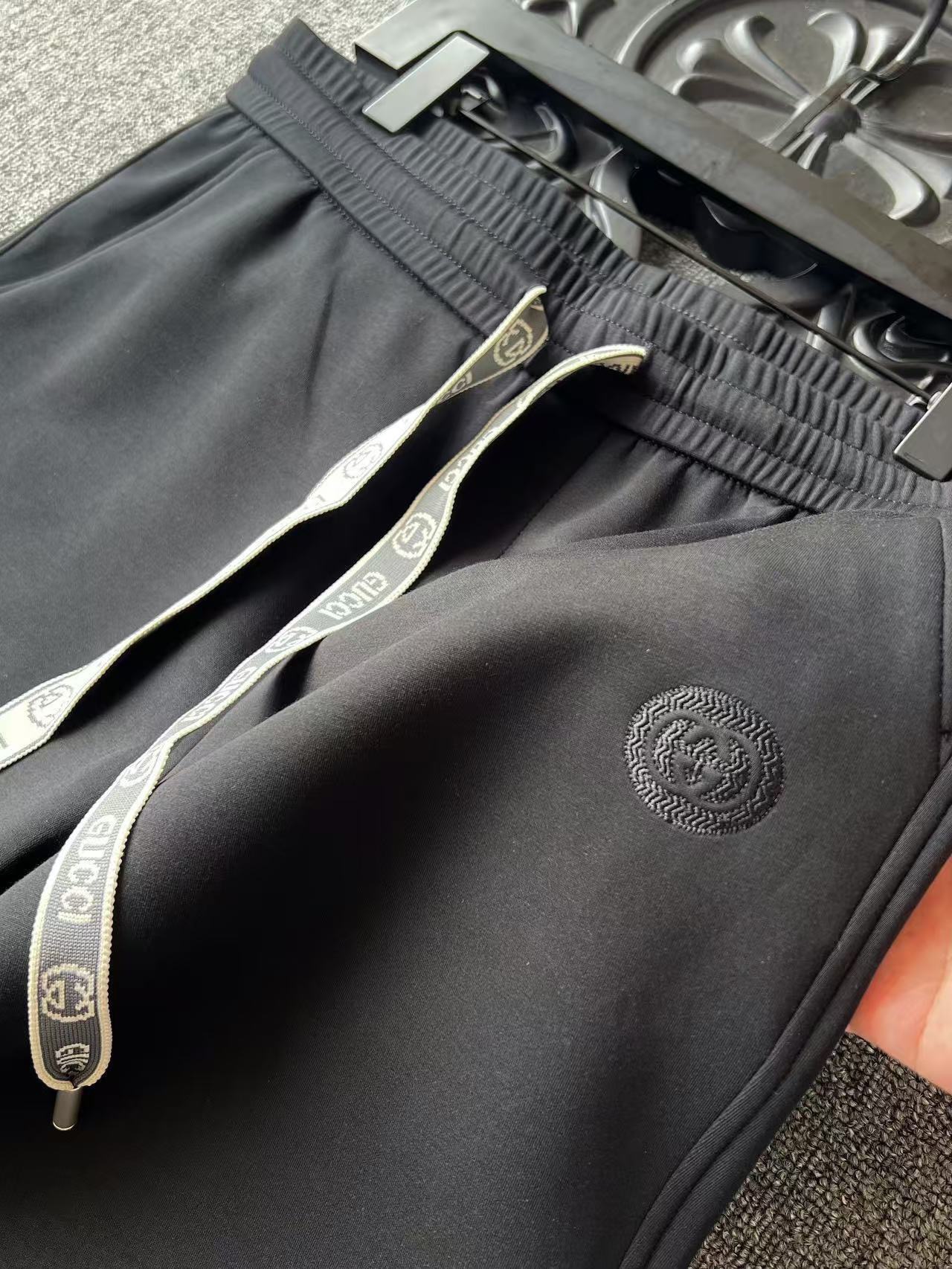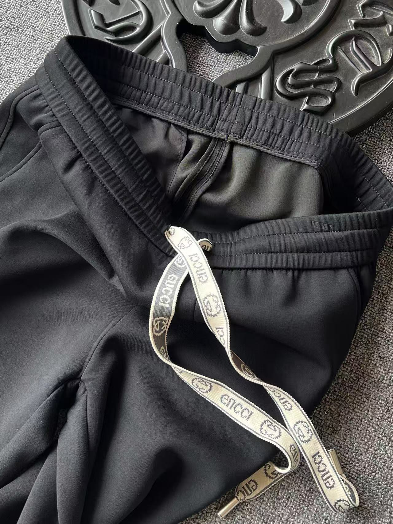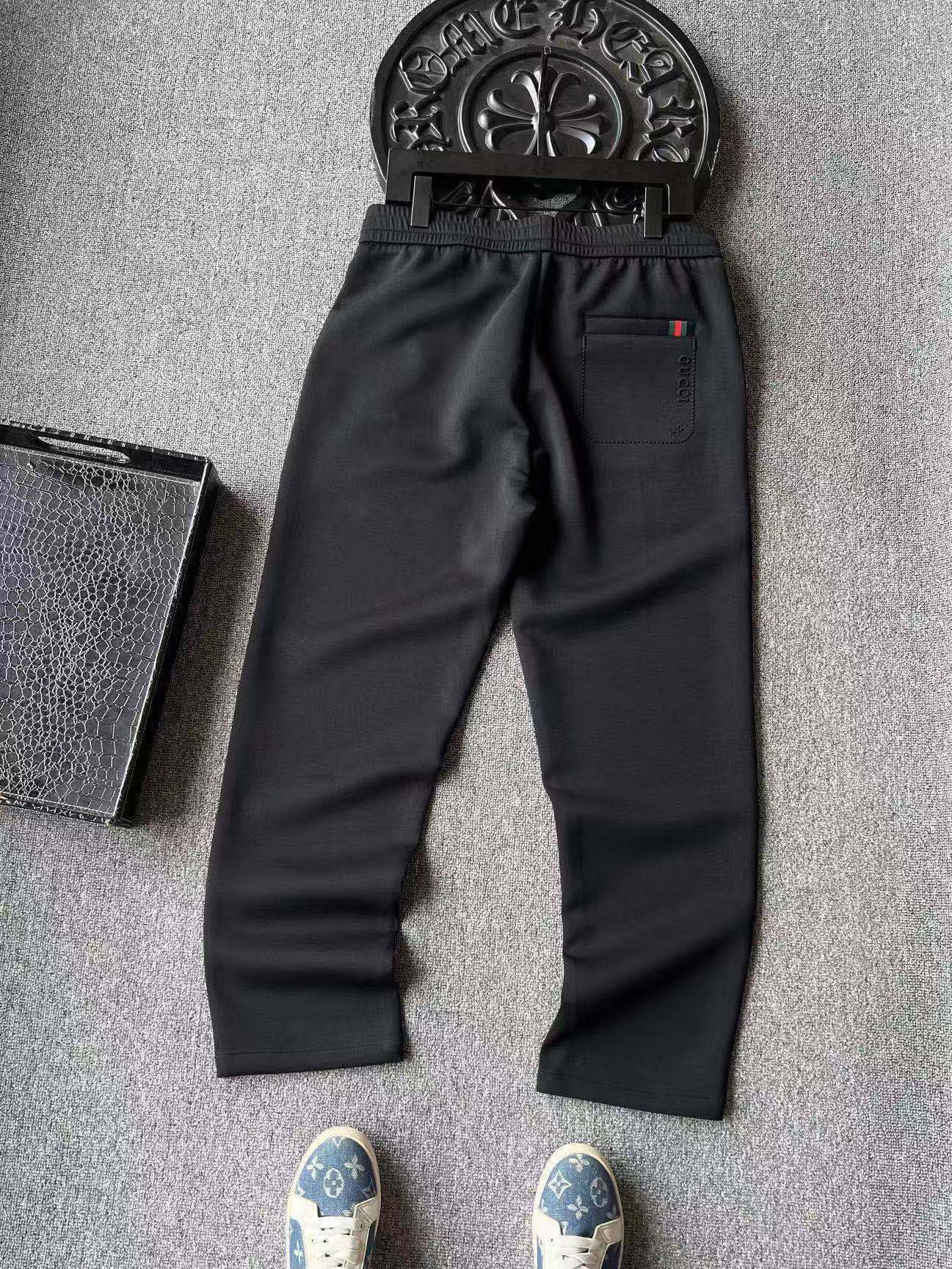 细节细节再细节 Gucci家商场新款液氨空气棉百搭直口长裤 裤前采用高频凹凸GG小标 底部做了刺绣工艺 摸起来特别精致 提花GUCCI抽绳设计 裤后口袋做了内嵌式设计 明面做了凹凸轮廓工艺并带有Gucci标识 十分精湛 内里包边双包条天花板级精湛做工