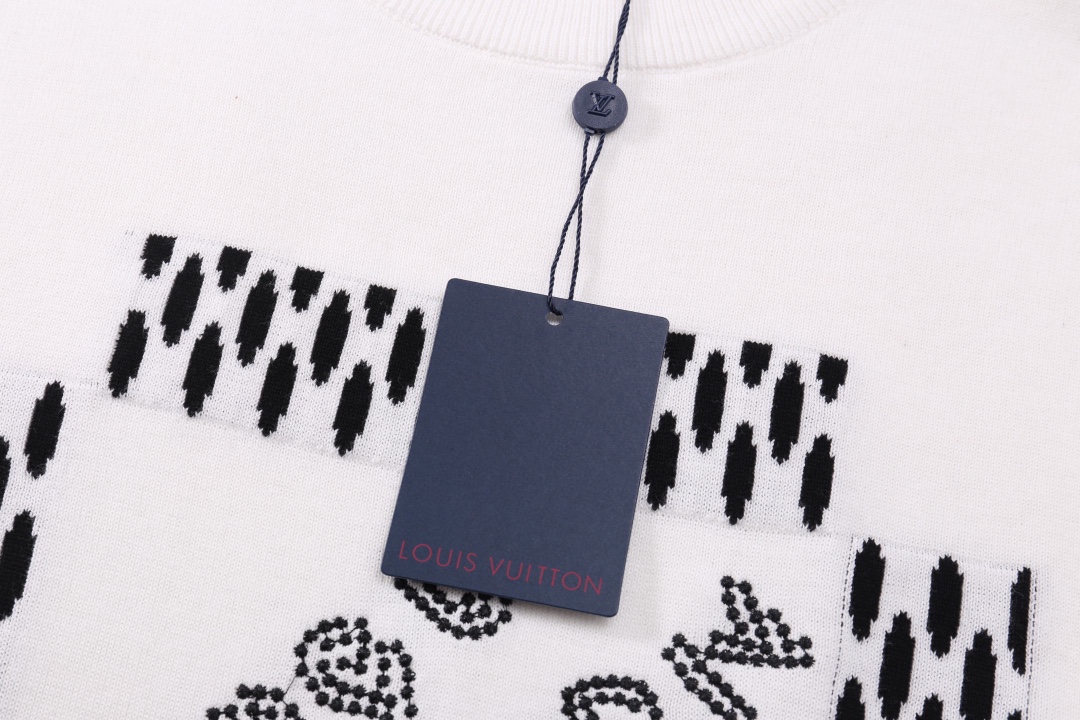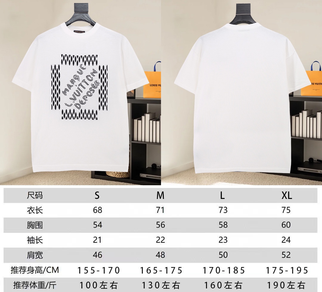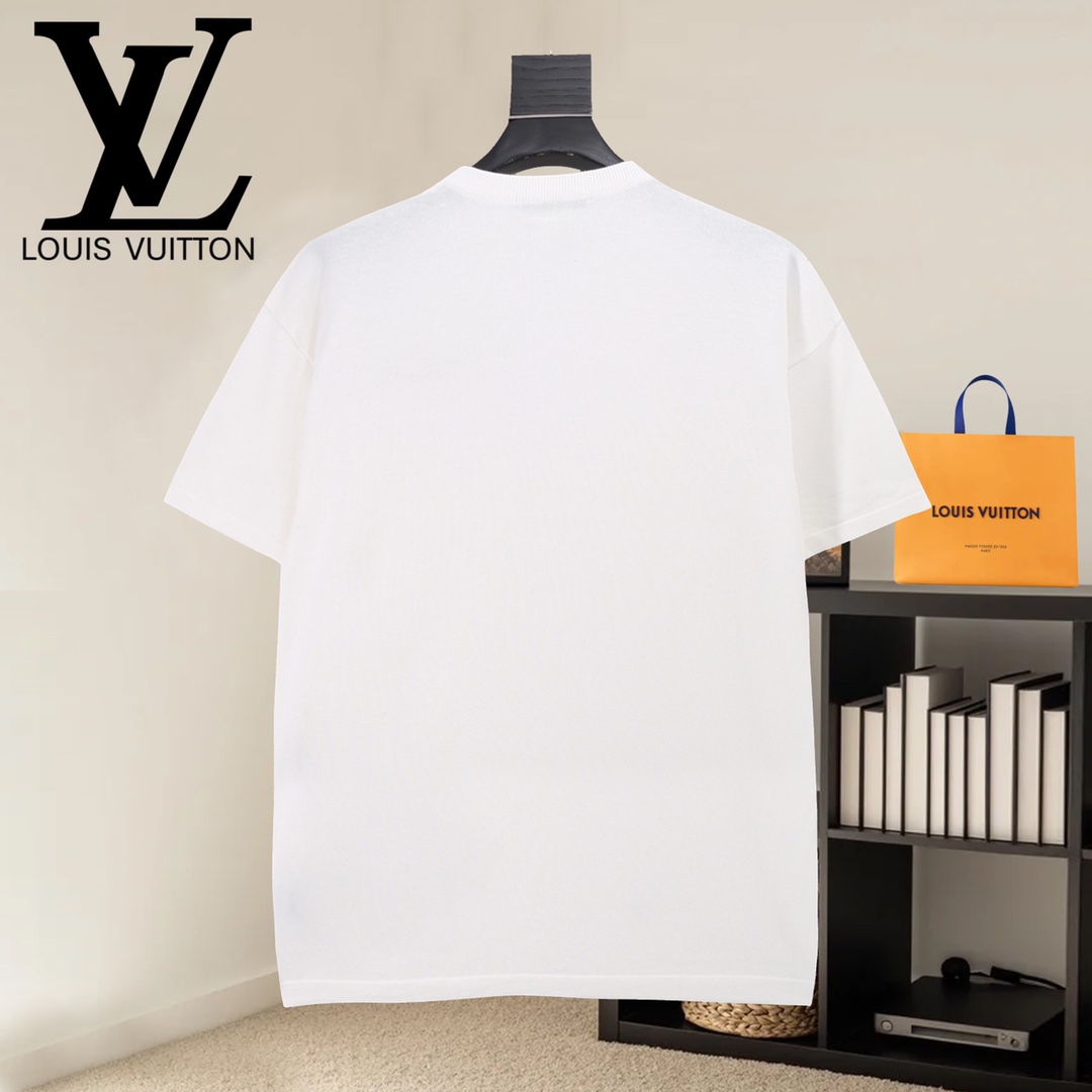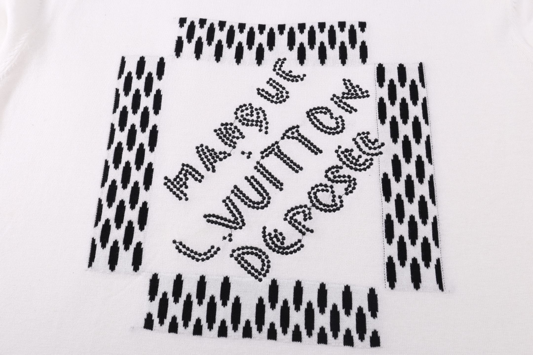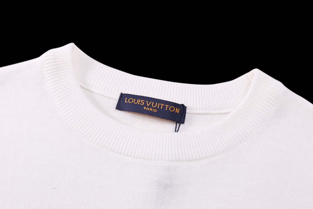 此款售后到2月1号 高版本 隔天出货 LOUIS VUITTON路易威登 前幅设计绣花和提花针织工艺圆领毛衣短袖T恤 呈现设计 整体时尚而有潮流感 男女同款 布料 100 纯棉 颜色 黑色 白色 码数 SMLXL