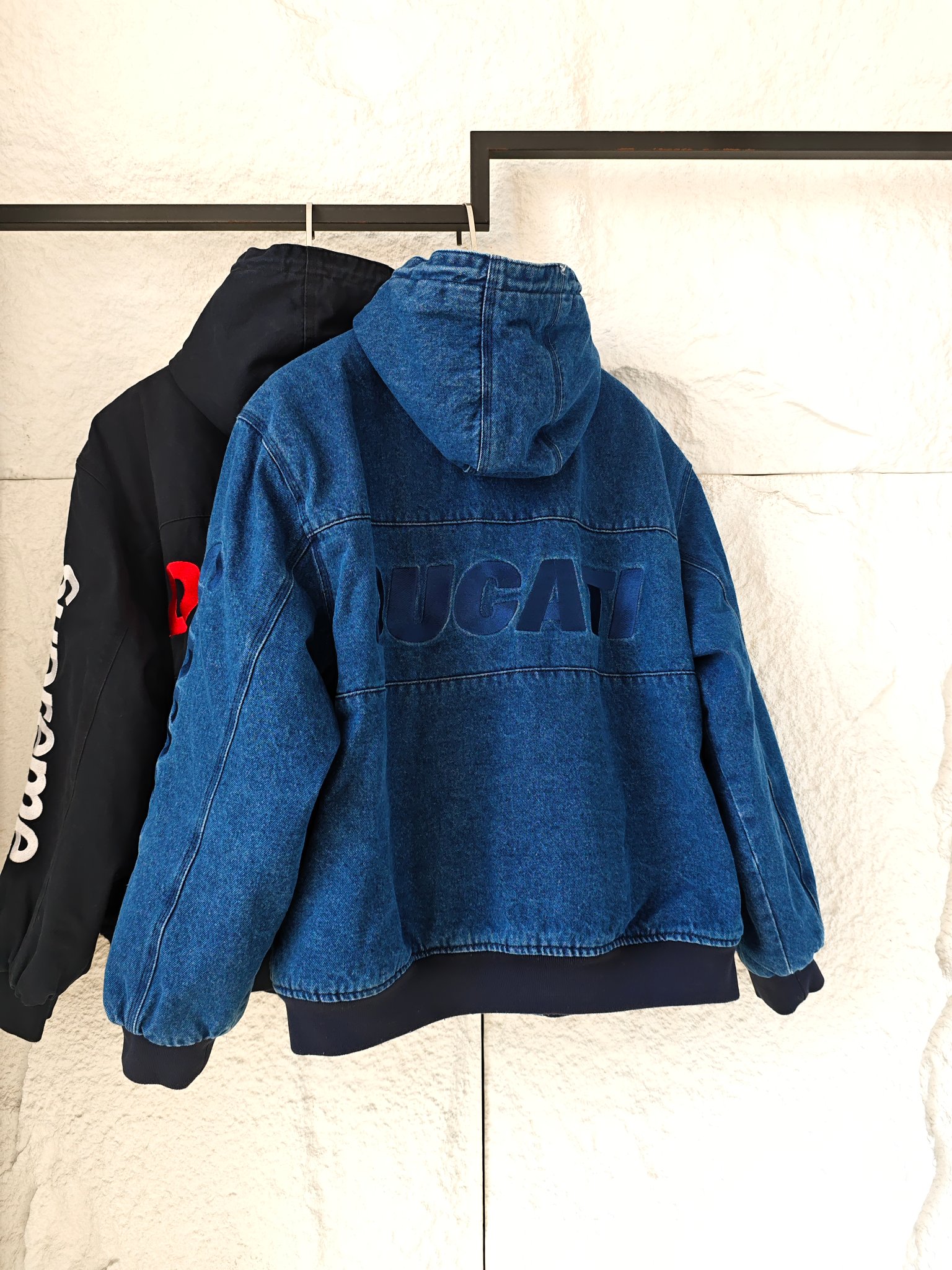 Supreme x DUCATI 联名款 SS WEEK16 HOODED RACING JACKET 双口袋拉链连帽牛仔水洗赛车机车服棉夹克外套 男女同款