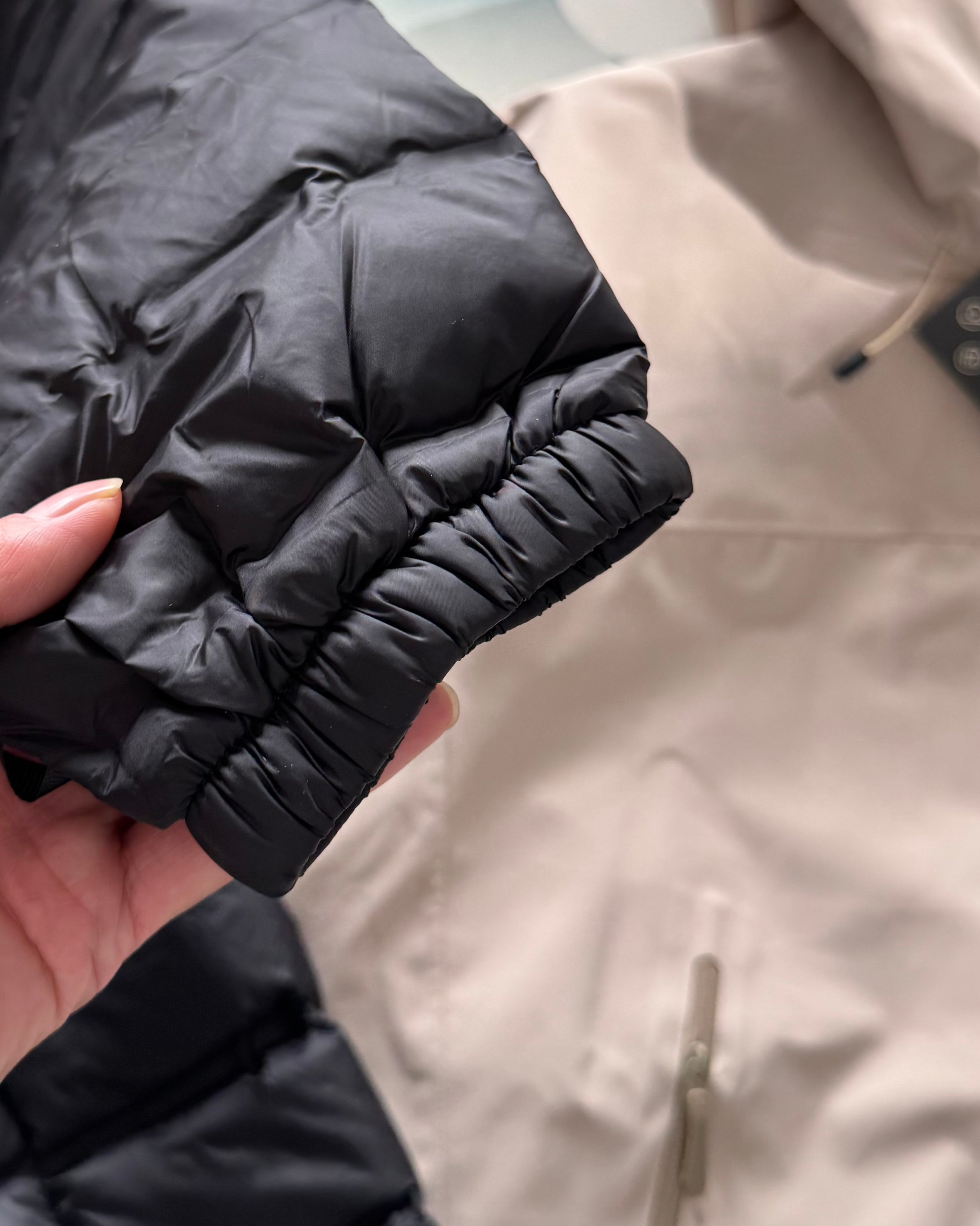 工艺 原版分解 从裁剪 拼接 到缝制工艺完全原版一比一 全身无缝压胶工艺 应对各种极端天气 羽绒 填充140g 180g左右的80 白鸭绒 蓬松度在700蓬左右 不管是上身效果 还是保暖性能都绝对爆赞