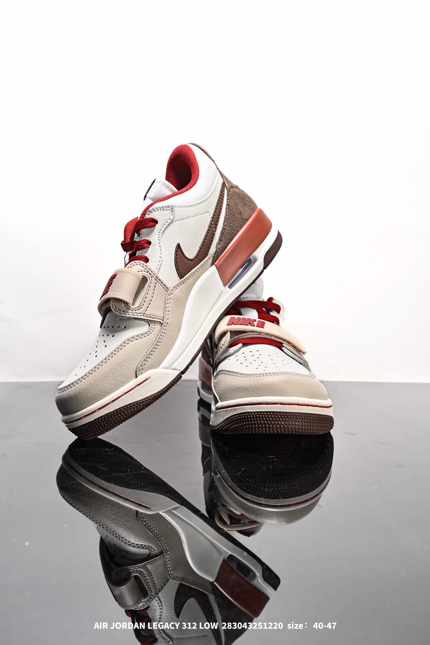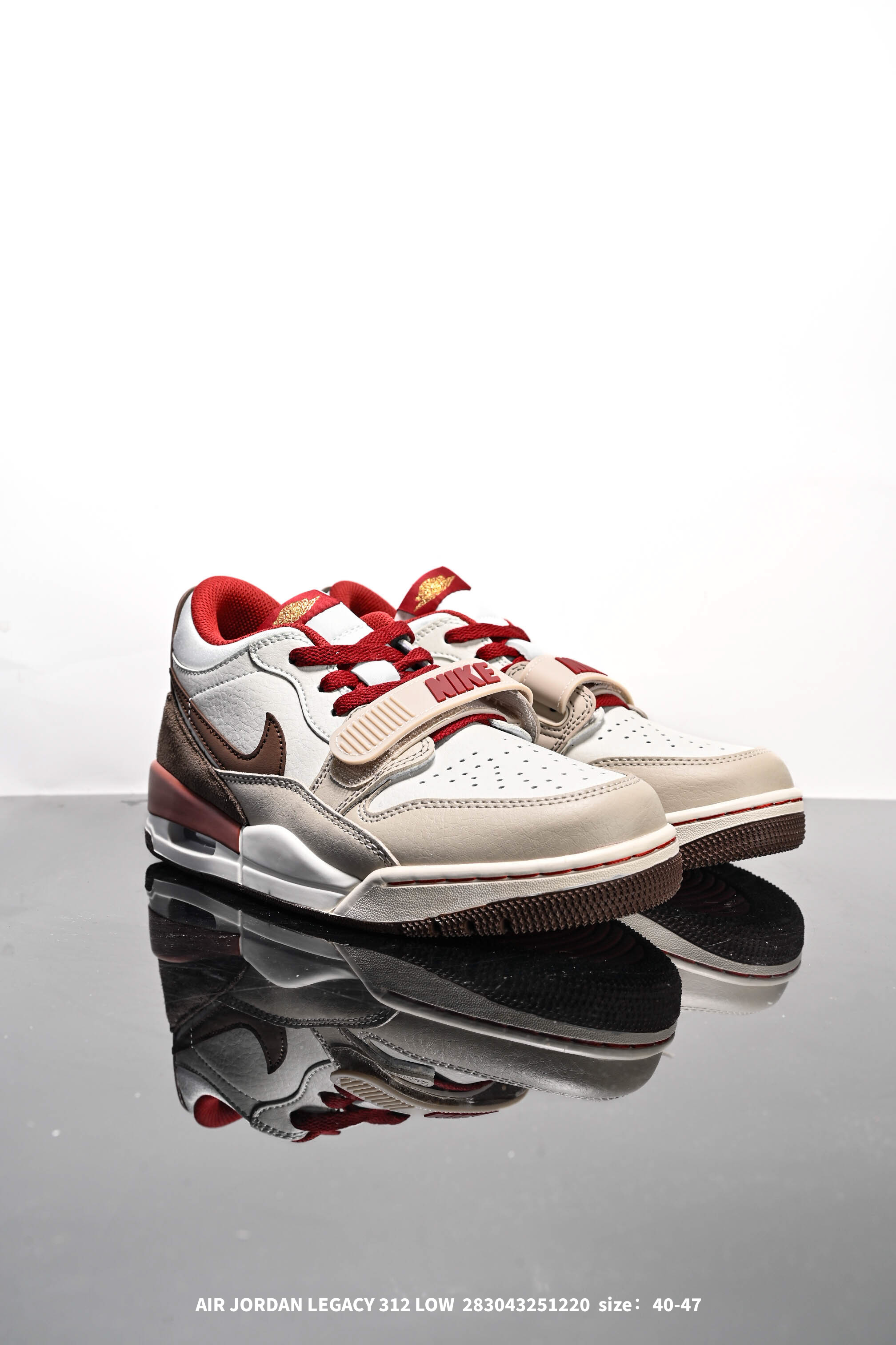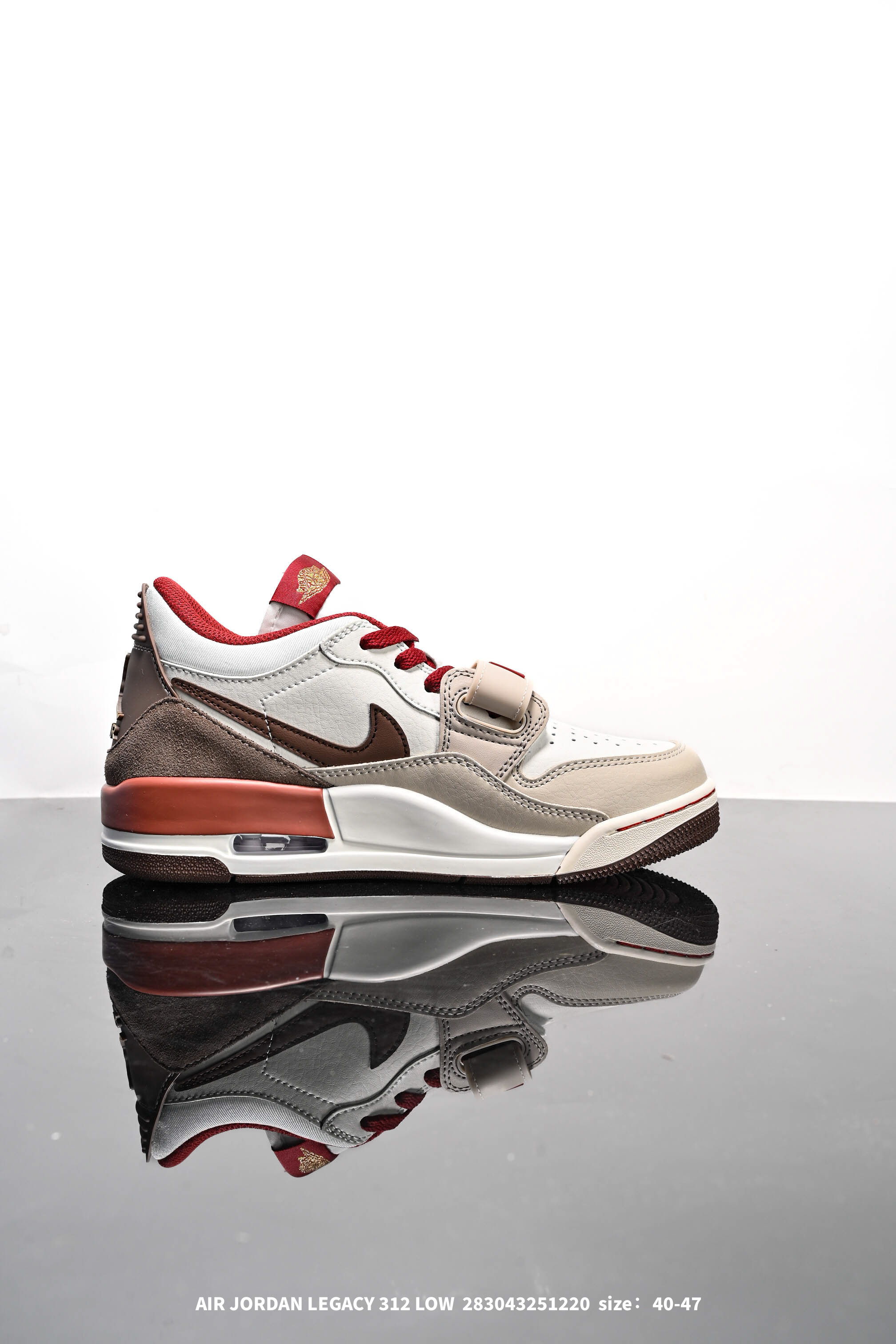 Air Jordan Legacy AJ312 Low低帮 马年限定 米棕红 市场独一档产物 全套原纸板楦头开发 原厂大底磨具加持立体防滑纹理 原档数据后跟TPU子母扣魔术贴 原装可视Air Sole气垫 原汁原味最完美的312代版型 唯一正确鞋头趴度弧度高度鞋身腰线 进口港宝加持 后跟自然饱满 全鞋荧光划线卡点 追求极致完美 每一双都是工艺品 多重QC质检 超越公司货的品控标准 实实在在的免检产品 鞋身采用了皮革材质打造 横跨鞋面的魔术贴十分吸睛 侧面的Swoosh Logo的一部分被鞋面遮挡了一部分 颇具玩味 魔术贴上标有NK标识 而鞋舌上是Jordan的经典红色飞翼Logo 后跟和鞋底均采用了AJ3的设计 后跟上同样也使用了经典的爆裂纹图案