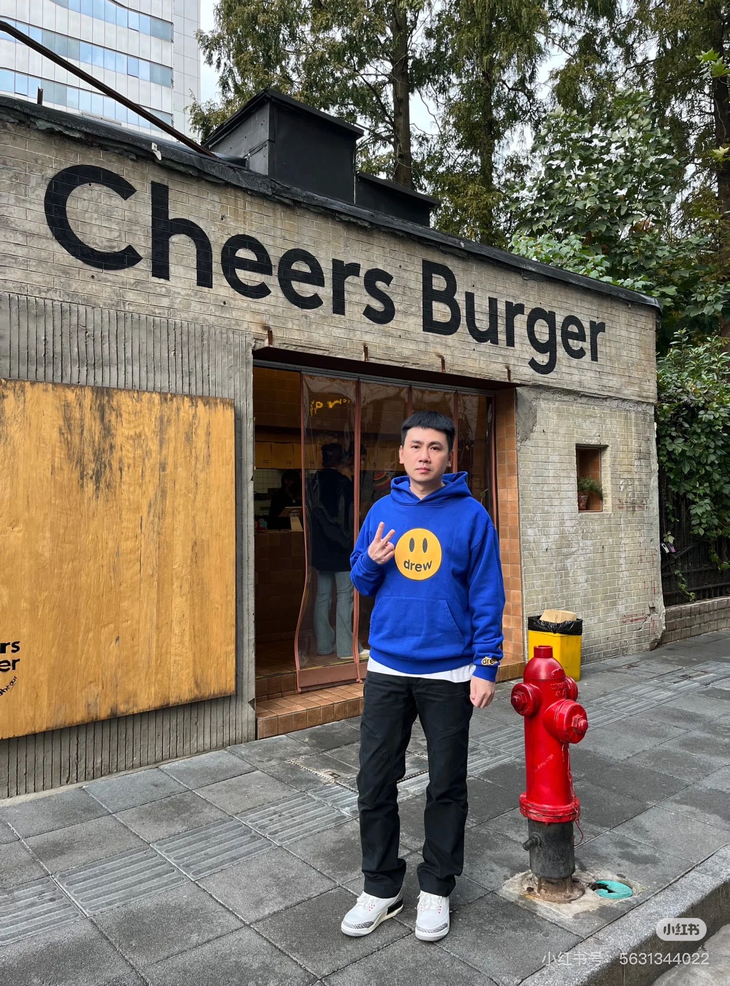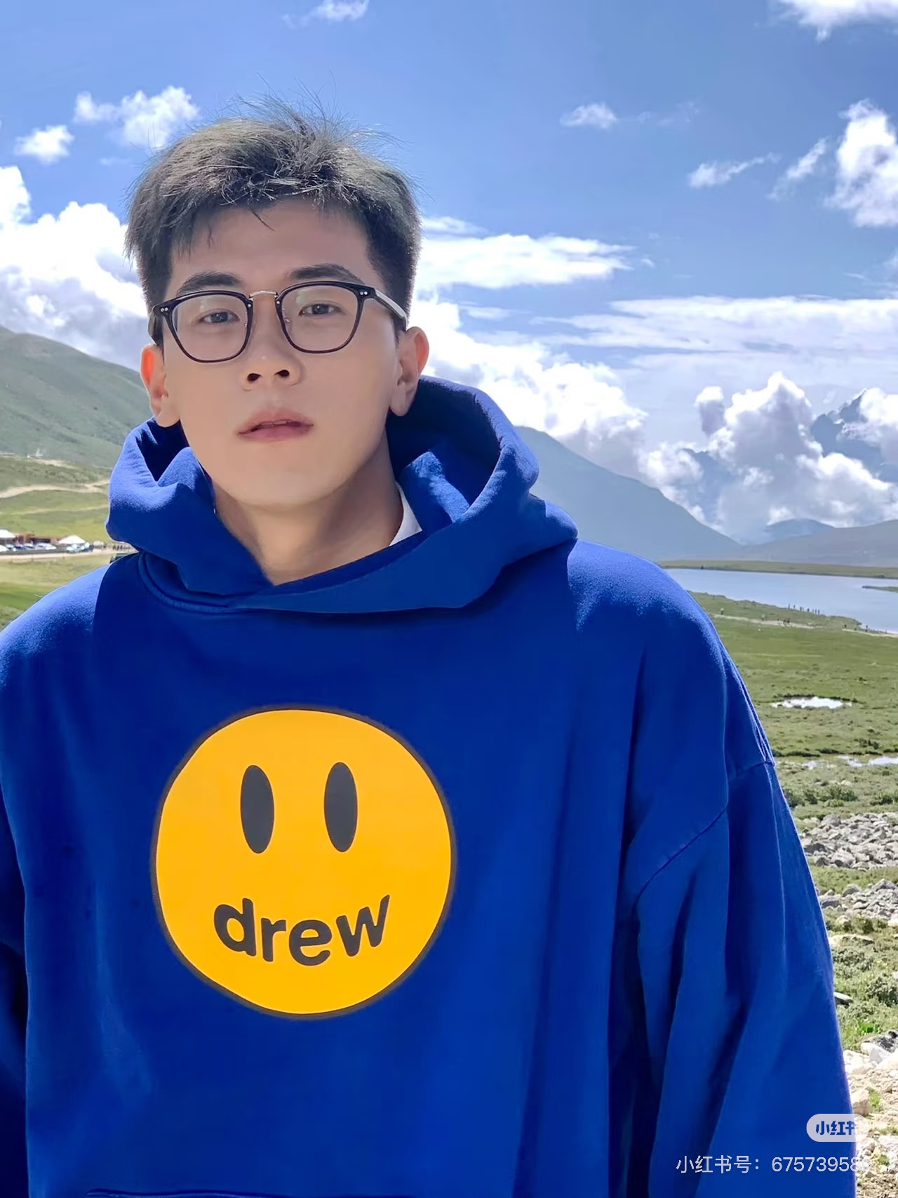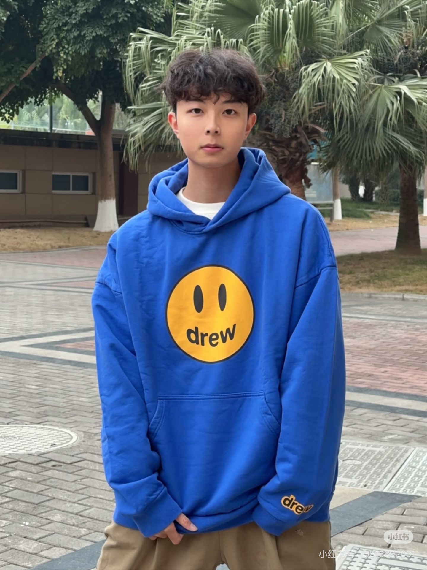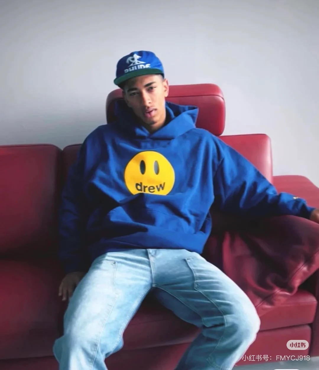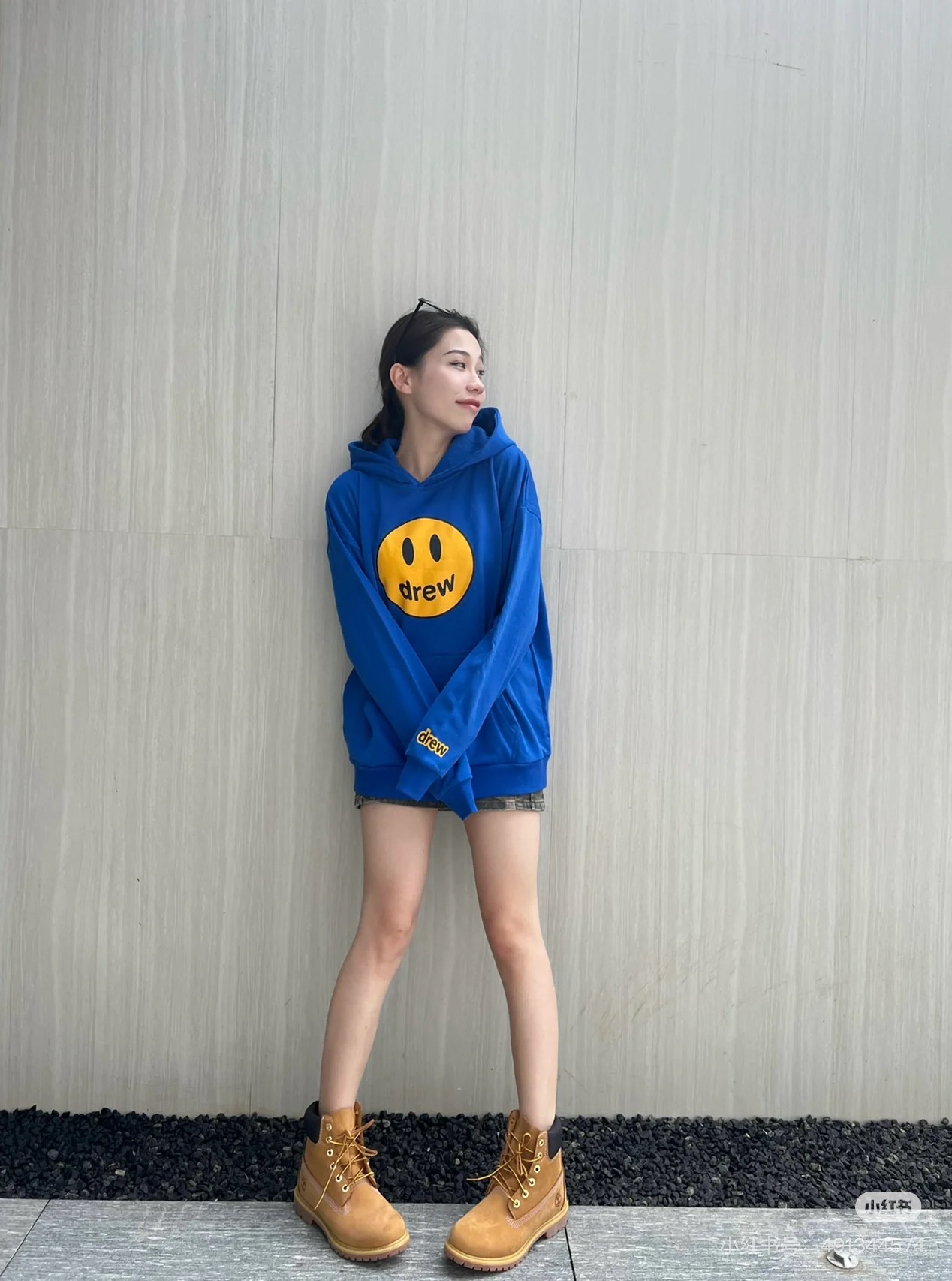 DREW HOURS 基础色系笑脸印花 轻奢时尚连帽卫衣 男女同款