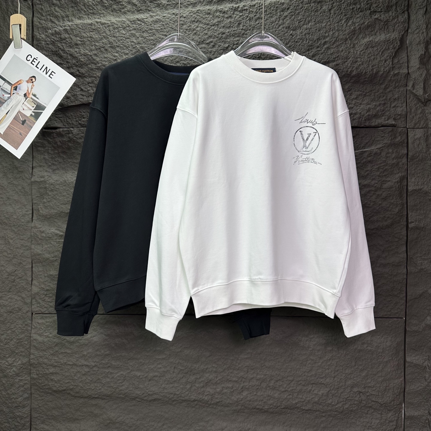 驴家2025新款烫钻字母logo情侣款圆领卫衣 高版本高版本 原版面料 数码直喷印花工艺 网红明星同款 高版本 高 品质 面料采用400g双股大毛圈面料 手感非常舒服 时尚又个性 超级百搭好看的一款卫衣 男女都非常合适 人手必备款 包装 吊牌 领标 水洗麦 齐全 颜色 黑色 白色 尺码 S XL