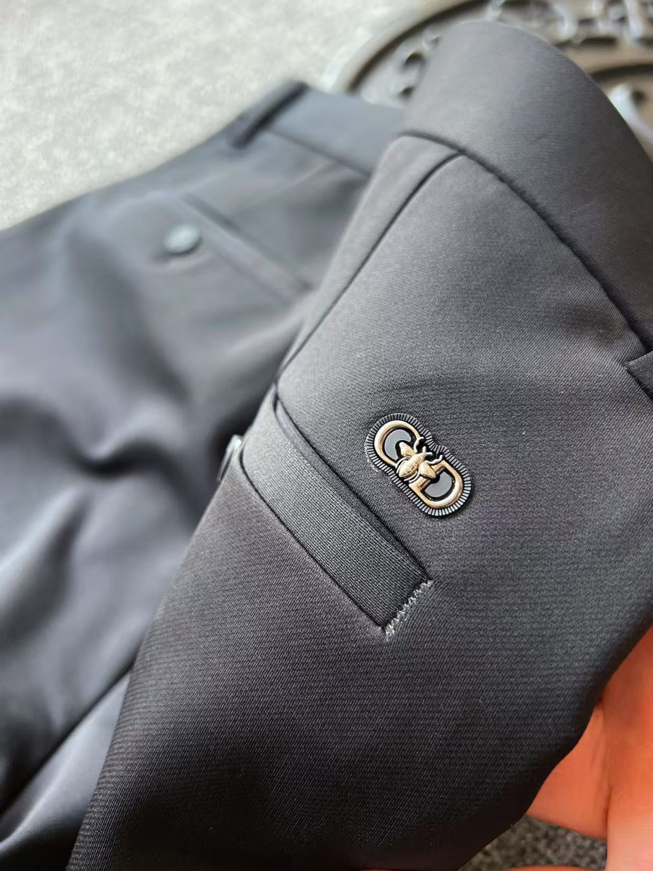 细节细节再细节 Dior家专柜新品高奢休闲长裤 全身精致简约设计 面料看起来纹理很细腻 烤漆纽扣细节用料 后腰口金属CD迪奥标轮廓镶嵌硅胶包边 十分精致 内里全包边双包条精湛做工 彰显专柜高奢质感