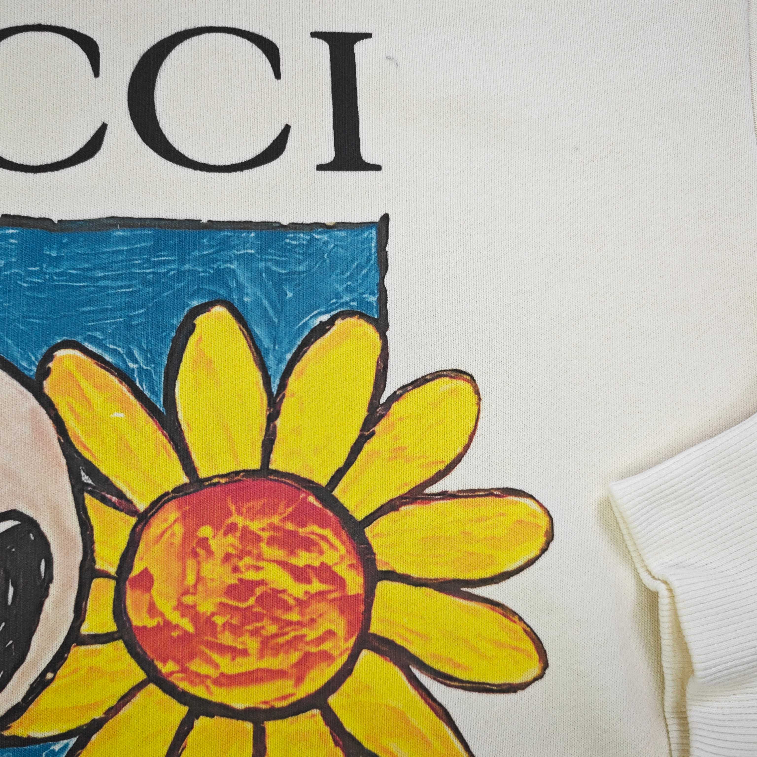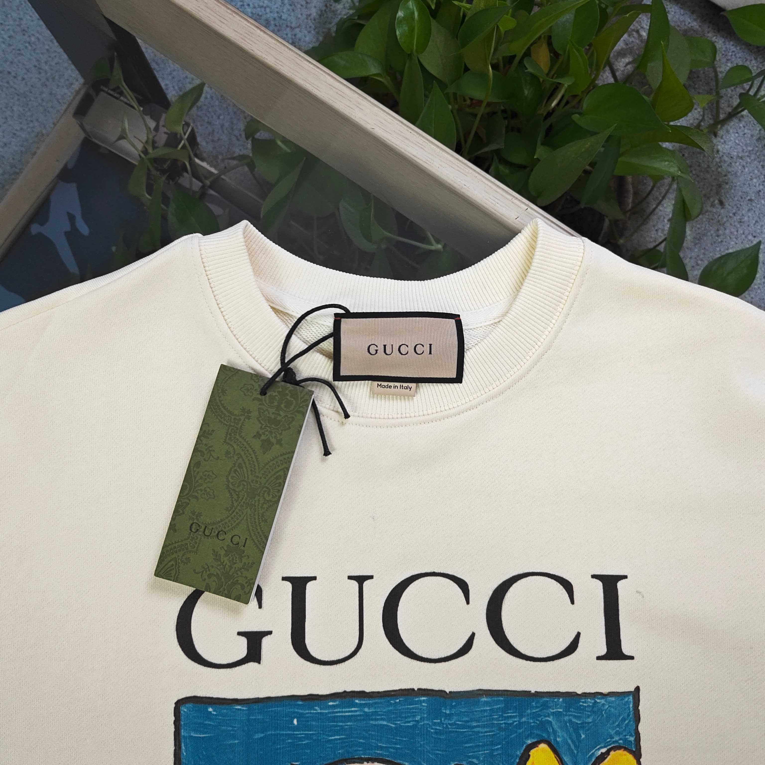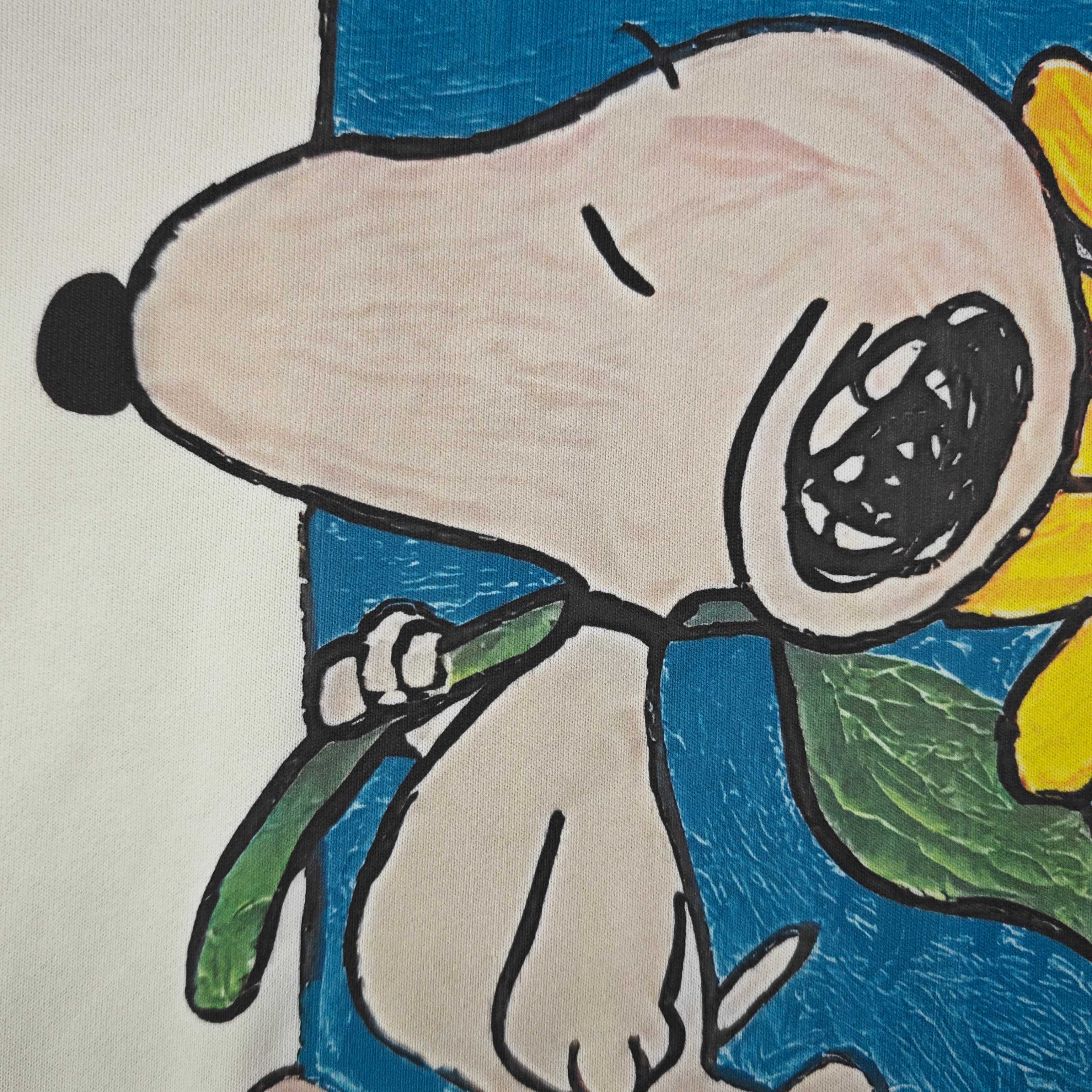 2025秋冬新款Gucci古驰史努比抱向日葵图案logo印花休闲情侣圆领卫衣 380g大毛圈面料 厚实亲肤且挺括 秋冬穿着保暖性绝佳 给你满满穿搭安全感 奶油色衣身之上 GUCCI标识与萌宠图案巧妙融合 甜趣又具品牌辨识度 圆领设计简约大气 宽松版型适配各类身形