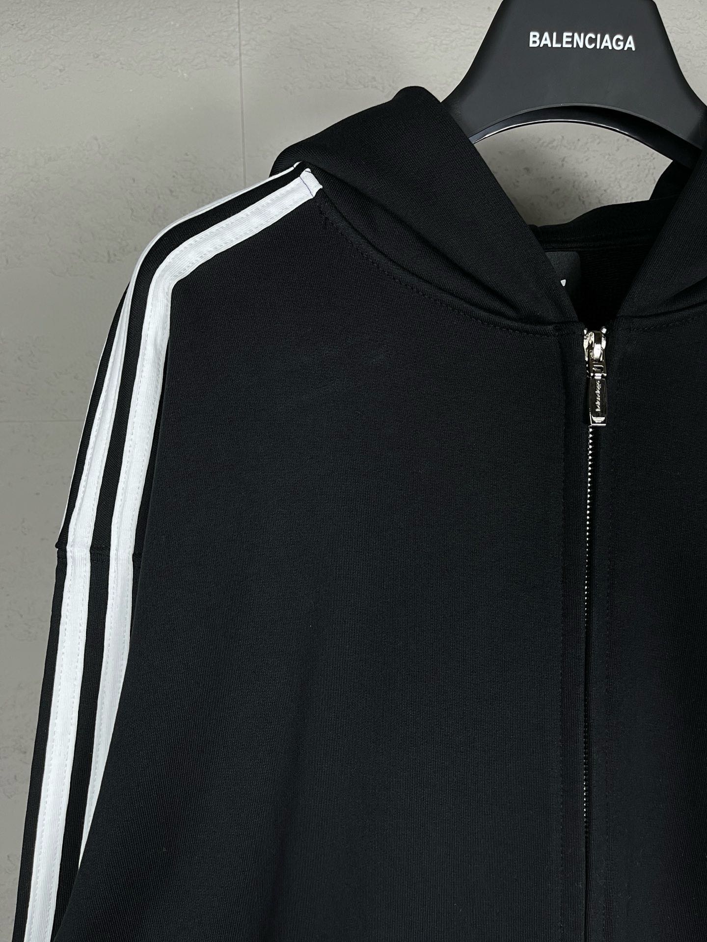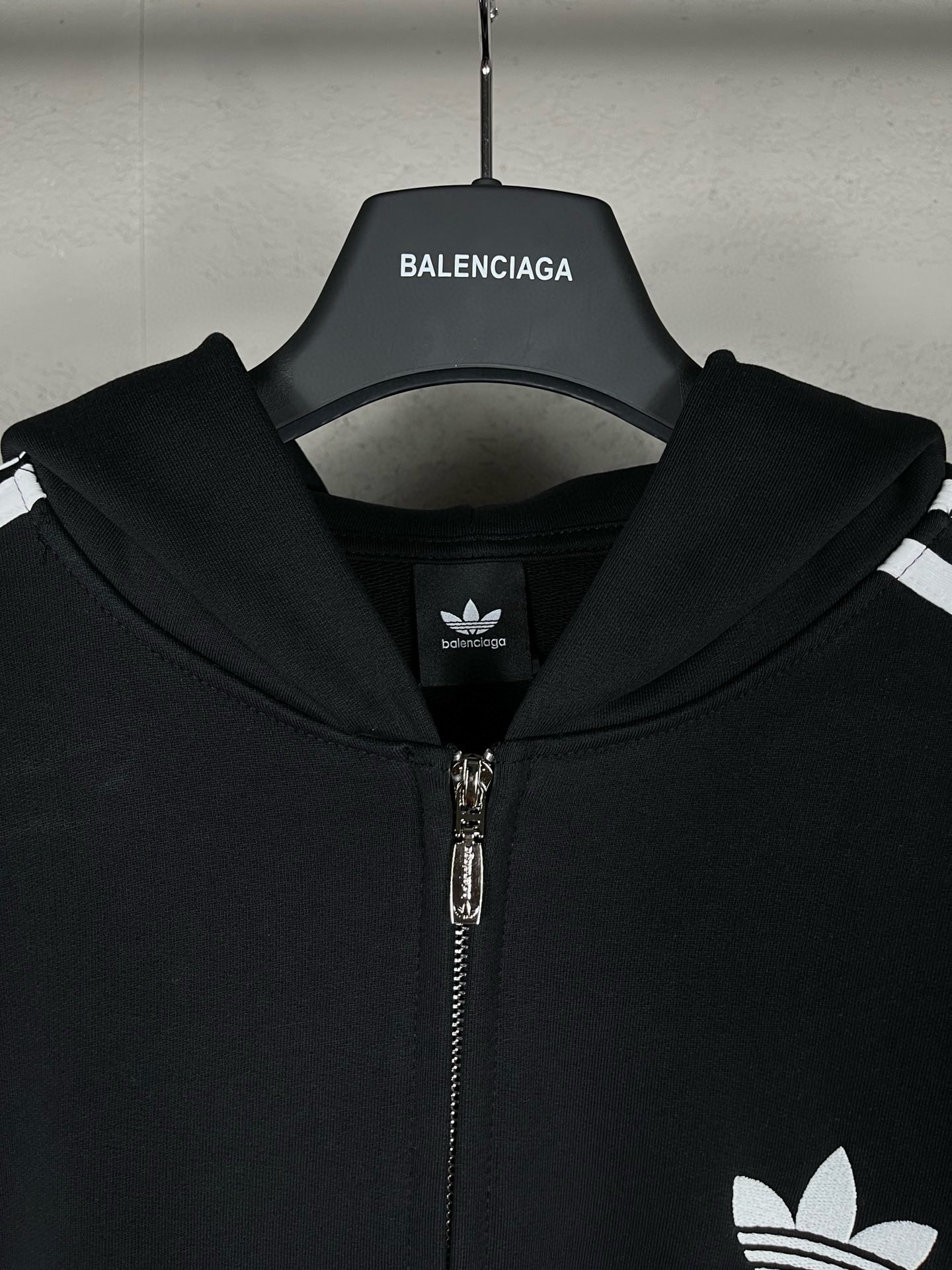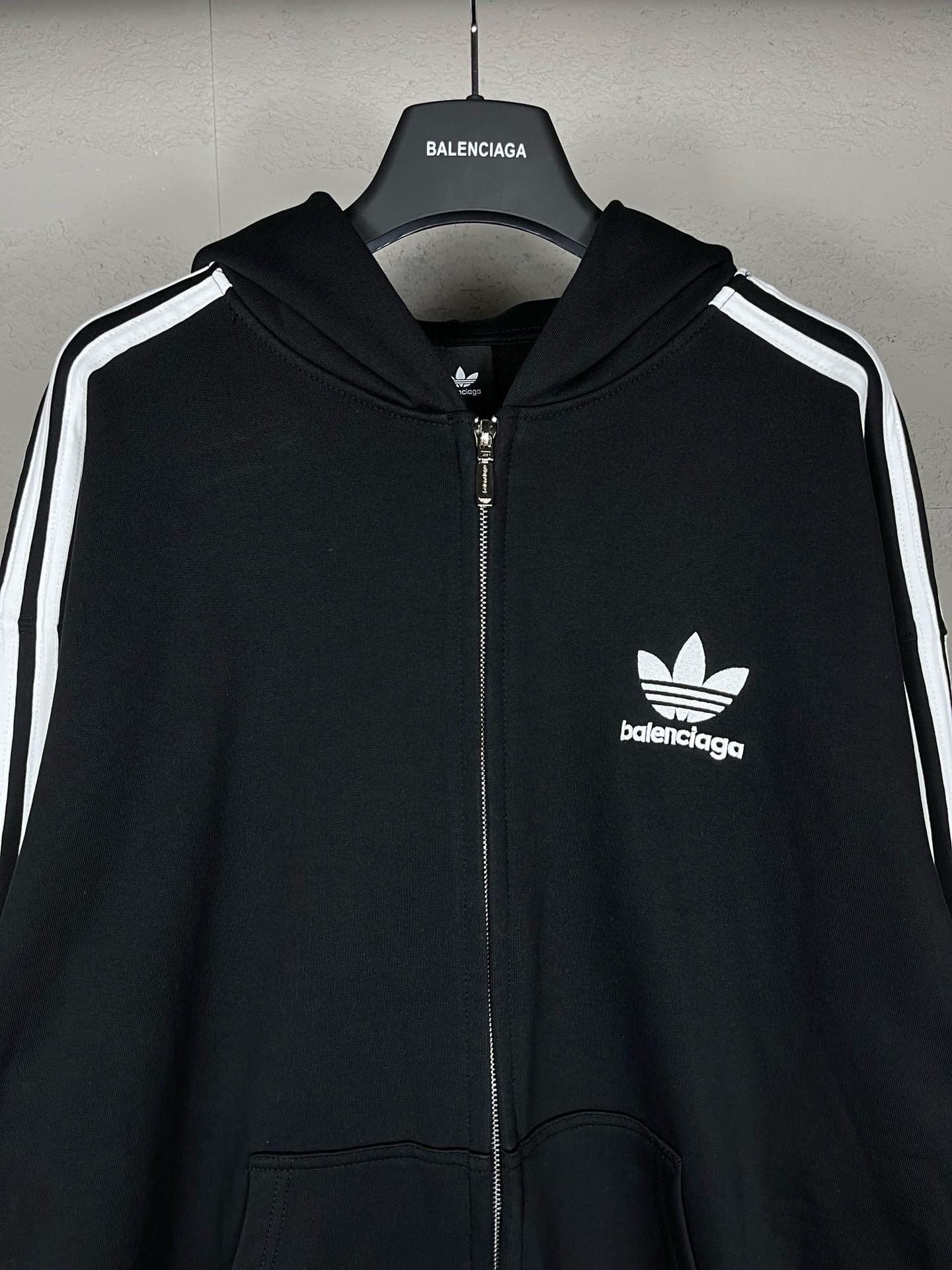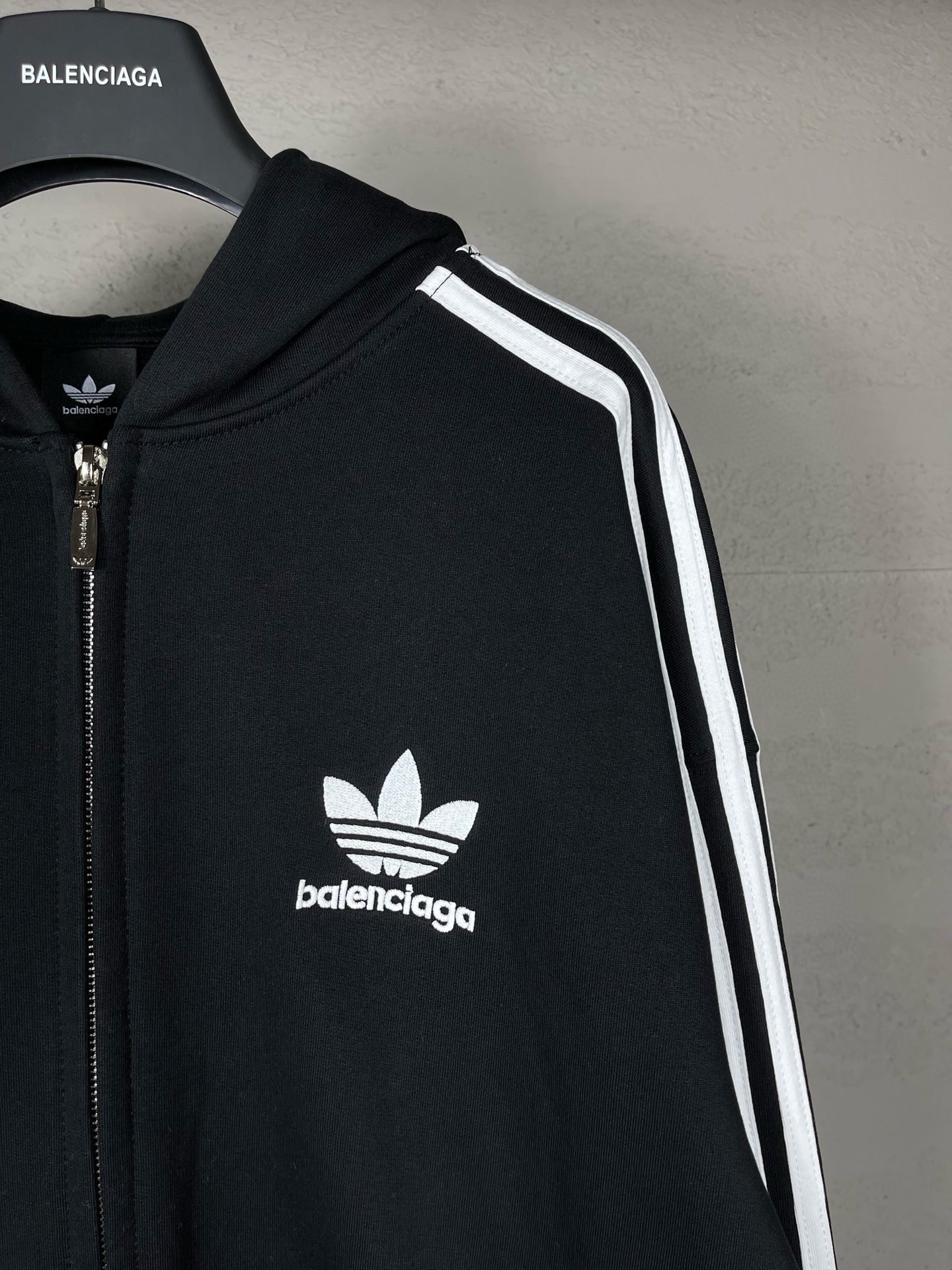实拍图 顶级版本 官网品质 BALENCI GA 巴黎联名Adidas阿迪达斯三叶草三条纹LOGO绣花拉链开衫连帽卫衣