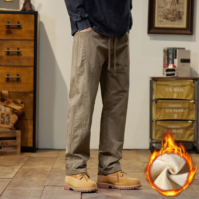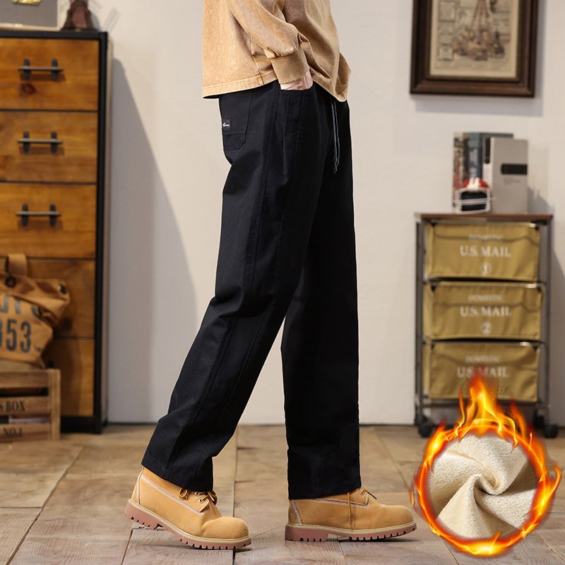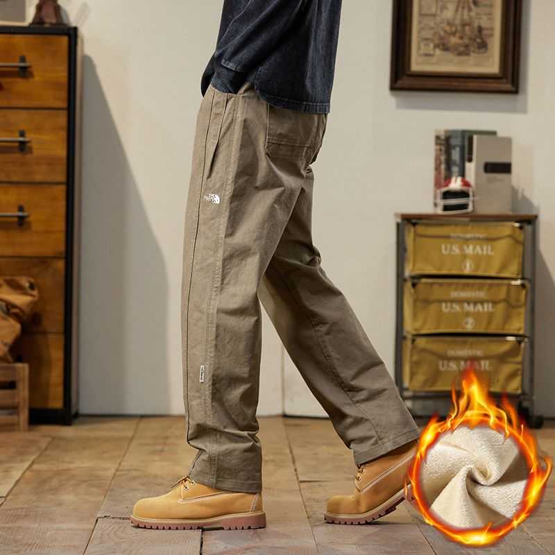高品质加绒加厚 The North face 北面冬季加绒加厚美式复古直筒纯棉敞口休闲长裤
