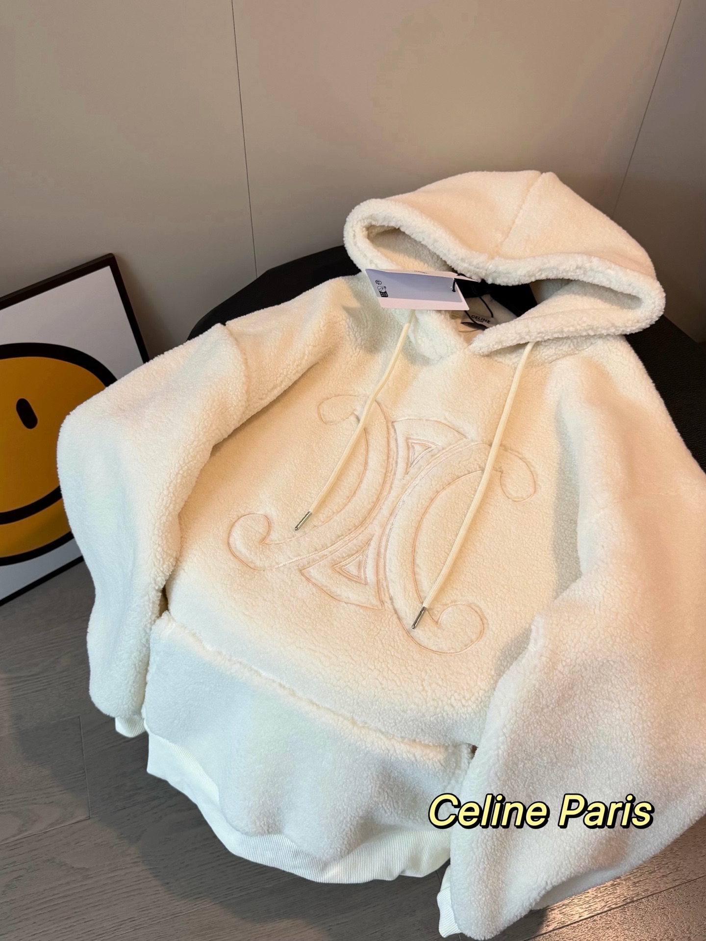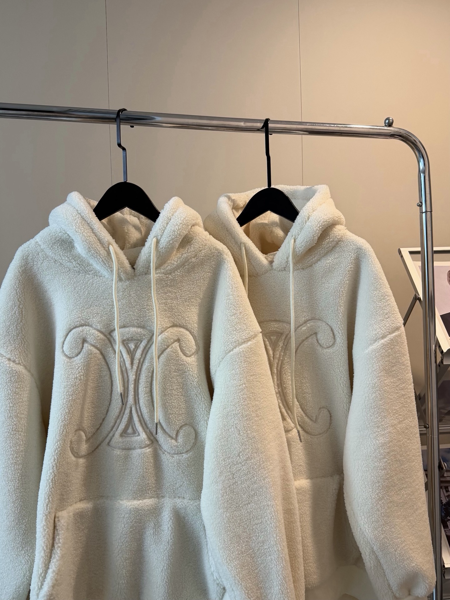 Celine赛琳25FW冬季凯旋门刺绣羊羔毛加绒大帽衫外套